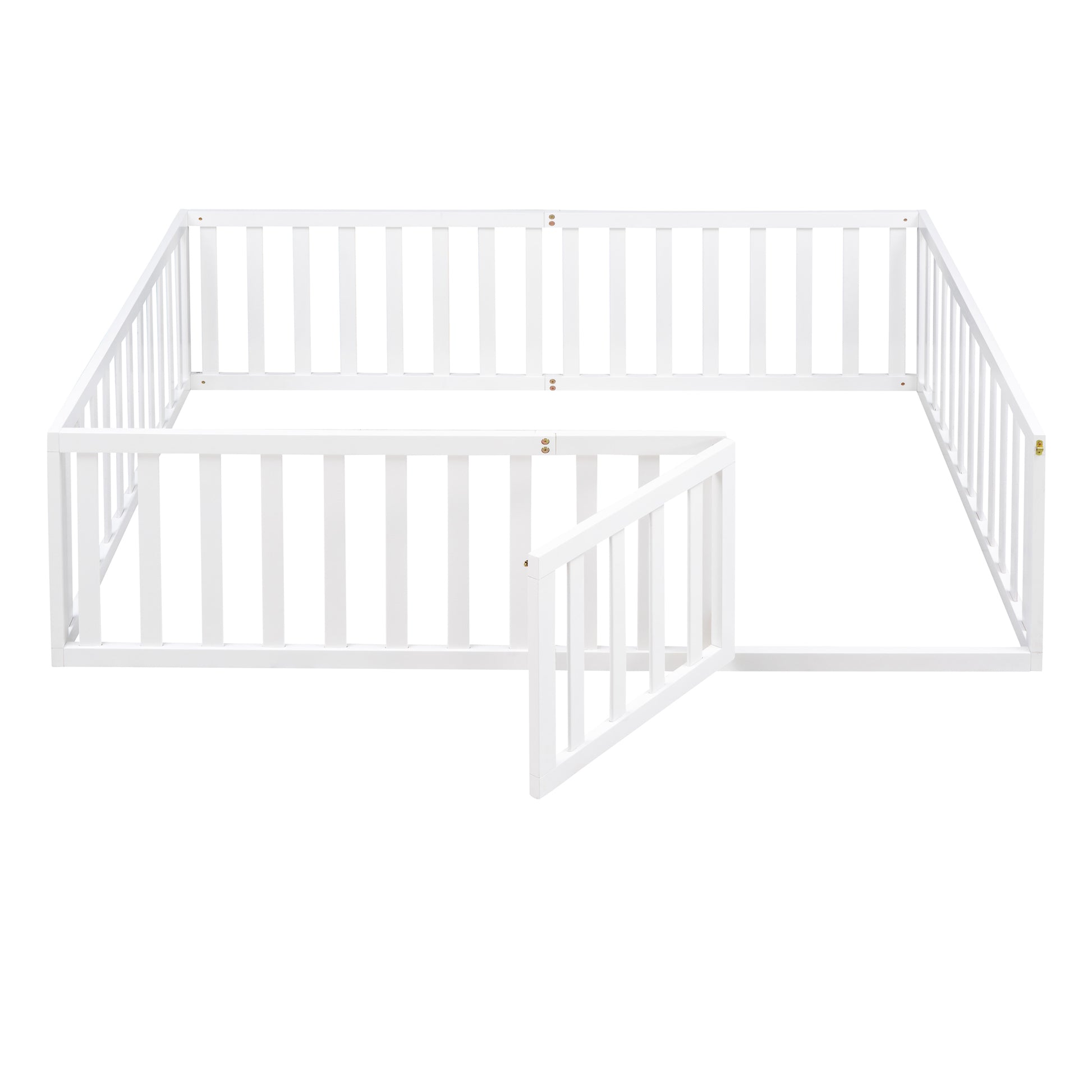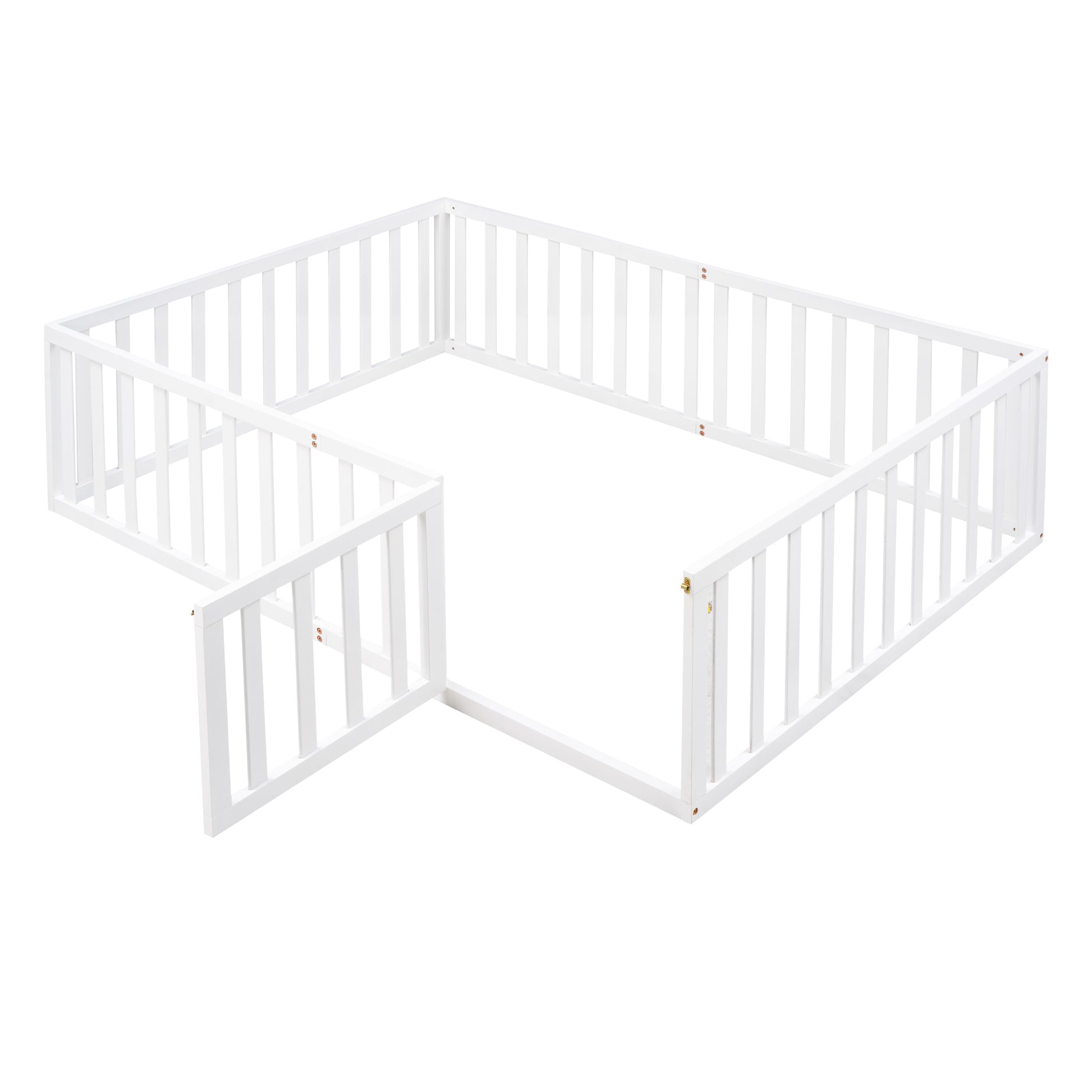 【Fun Design】This wooden floor bed frame has a circle of fences. There is a small door that can be opened and closed, which increases the interest of the bed and creates a more safety sleeping space.