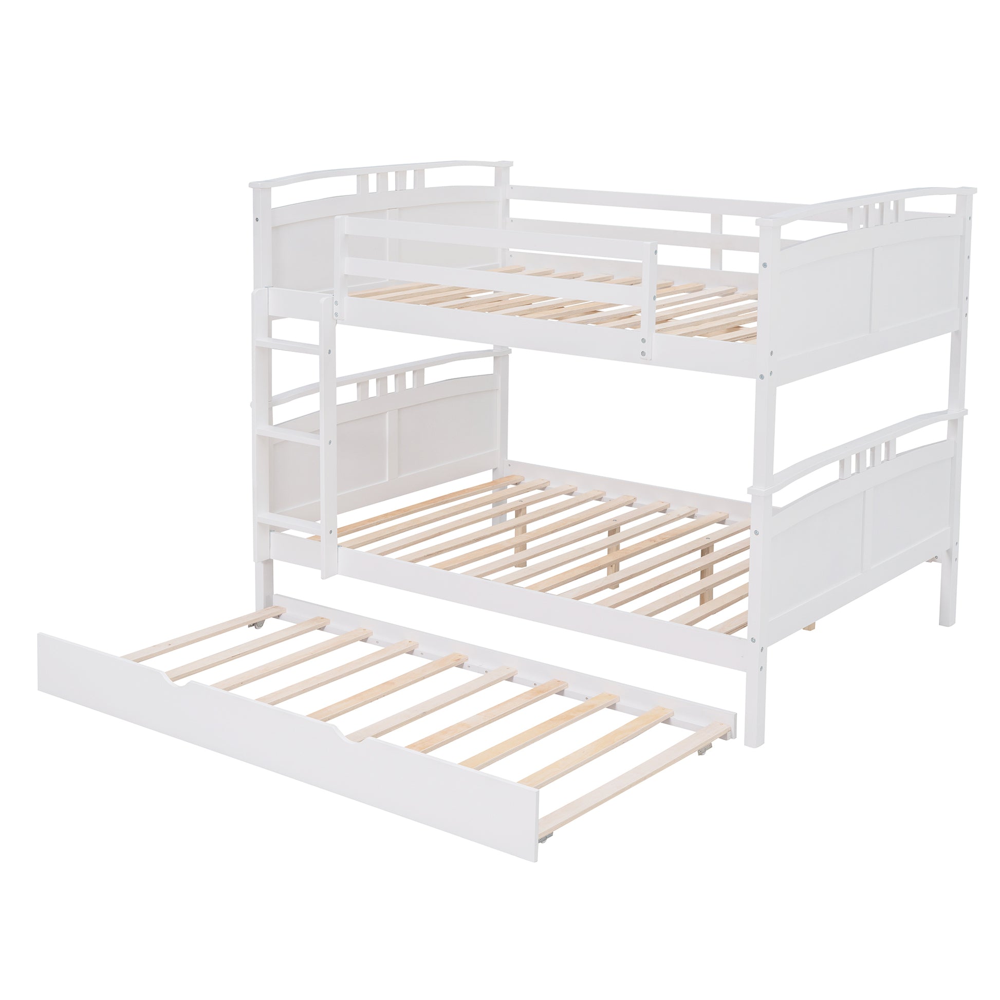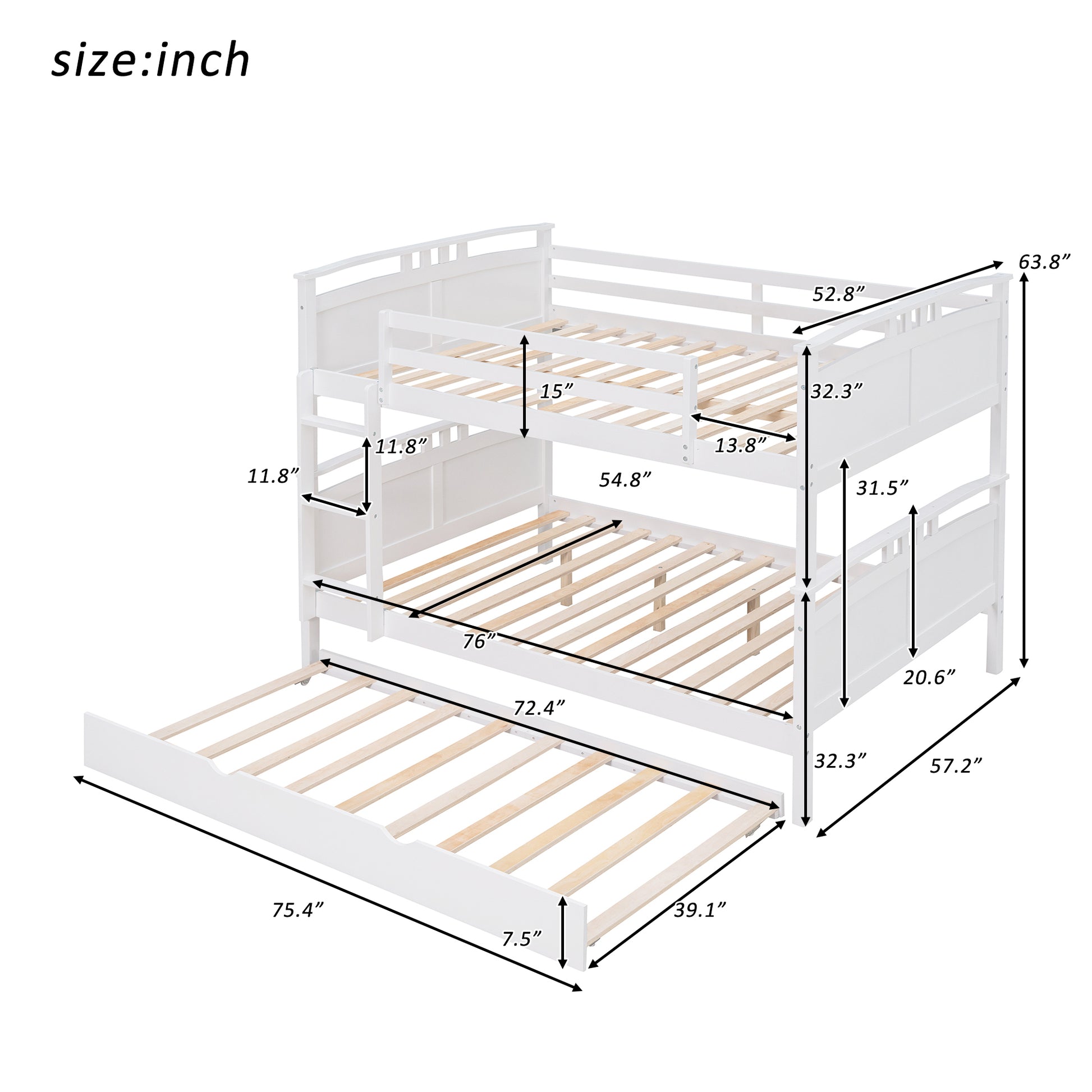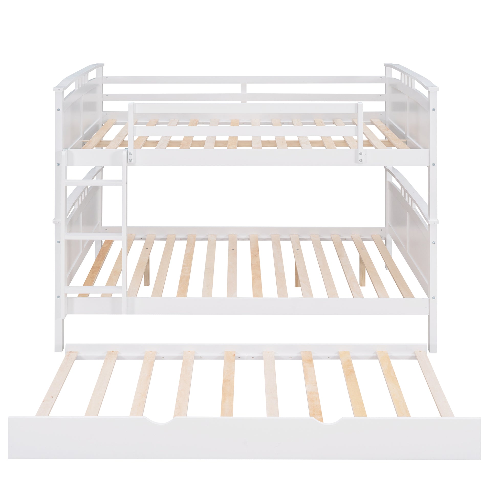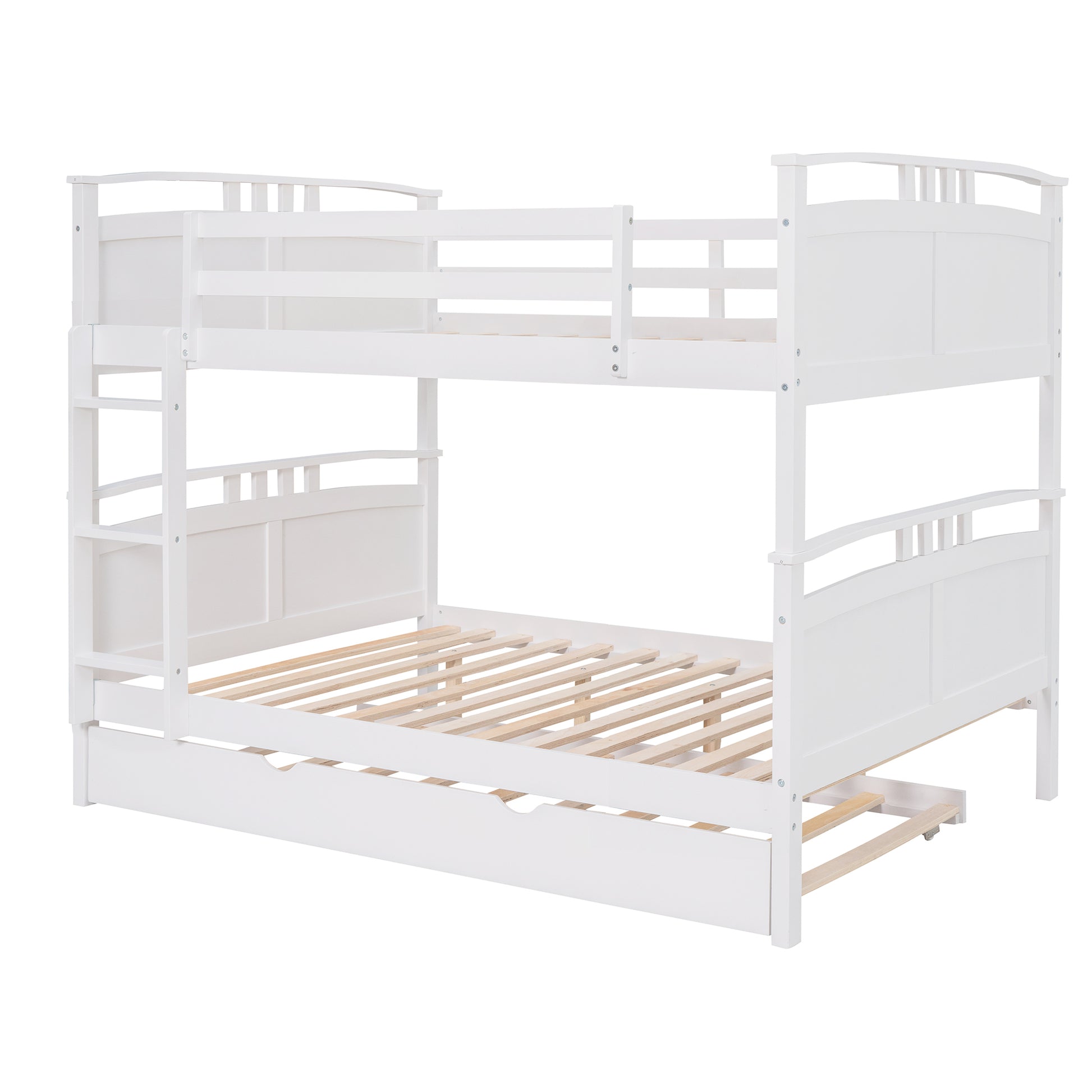 Full-Over-Full Bunk Bed with Twin size Trundle , Separable Bunk Bed for Bedroom - White