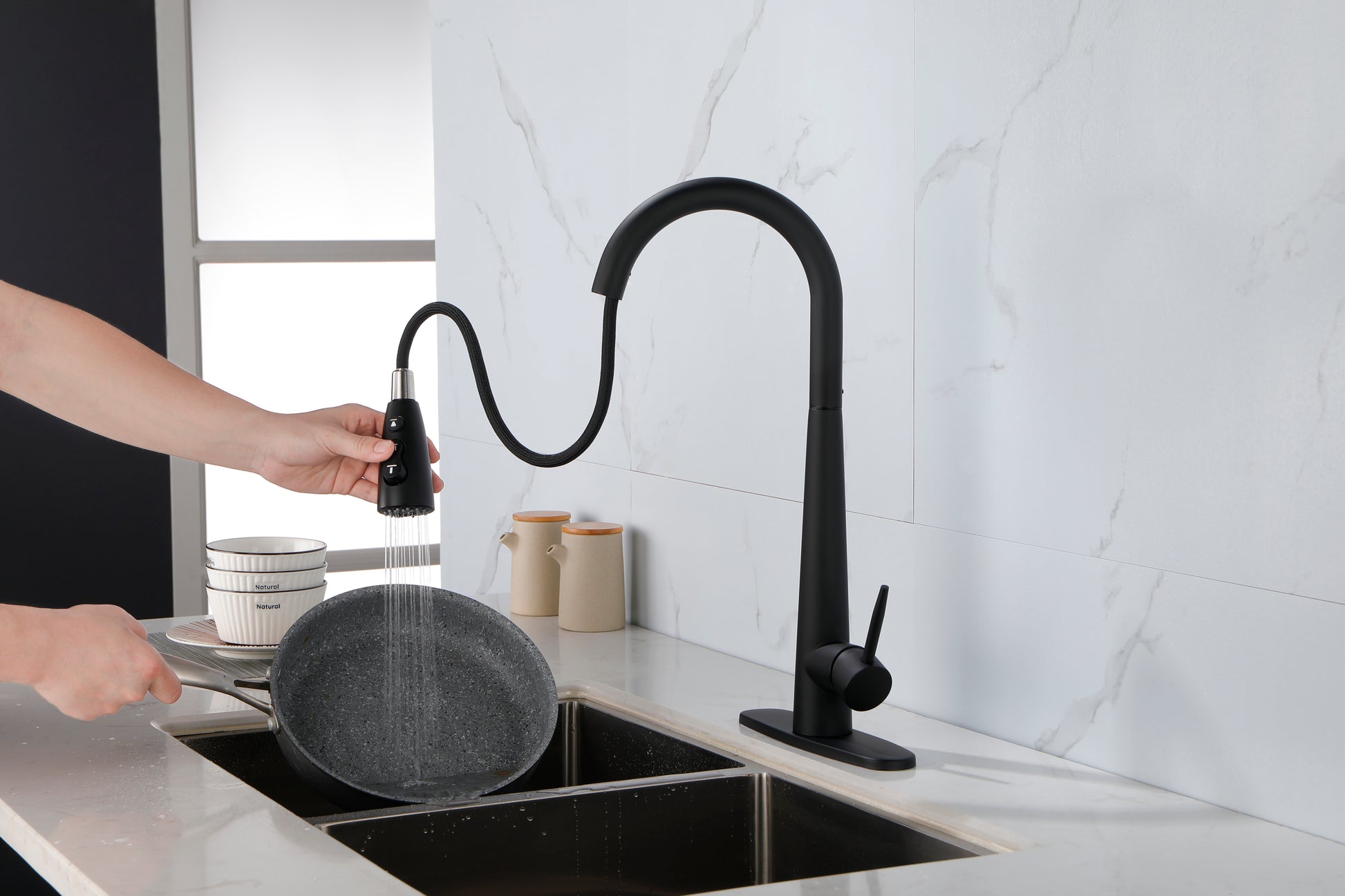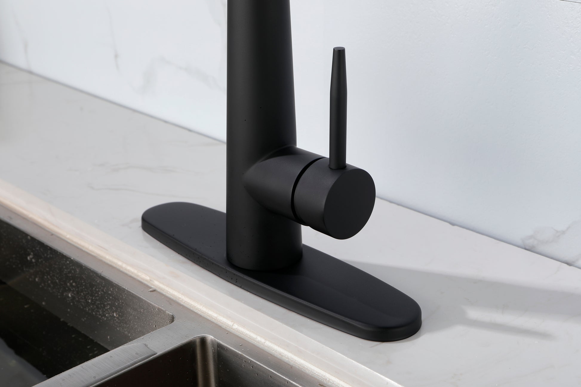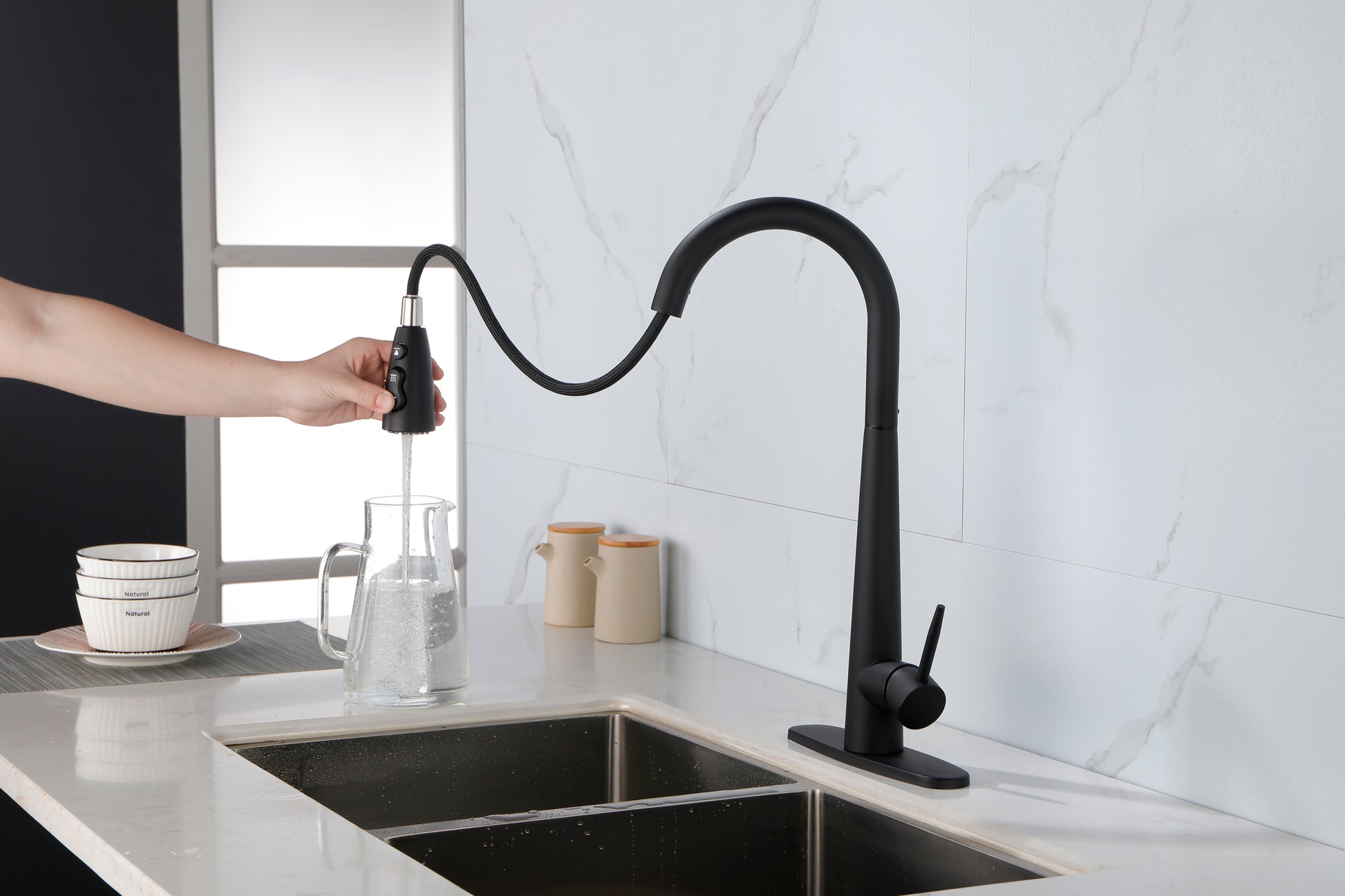 Black Kitchen Faucets with Pull Down Sprayer, Kitchen Sink Faucet with Pull Out Sprayer, Fingerprint Resistant, Single Hole Deck Mount, Single Handle Copper Kitchen Faucet, Matte Black