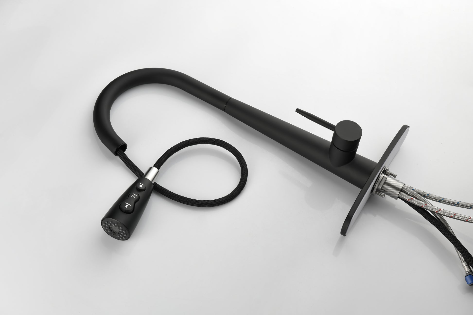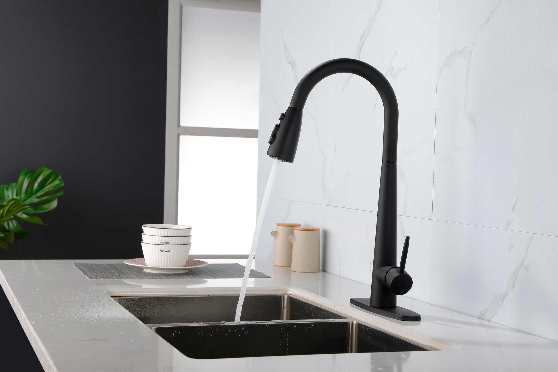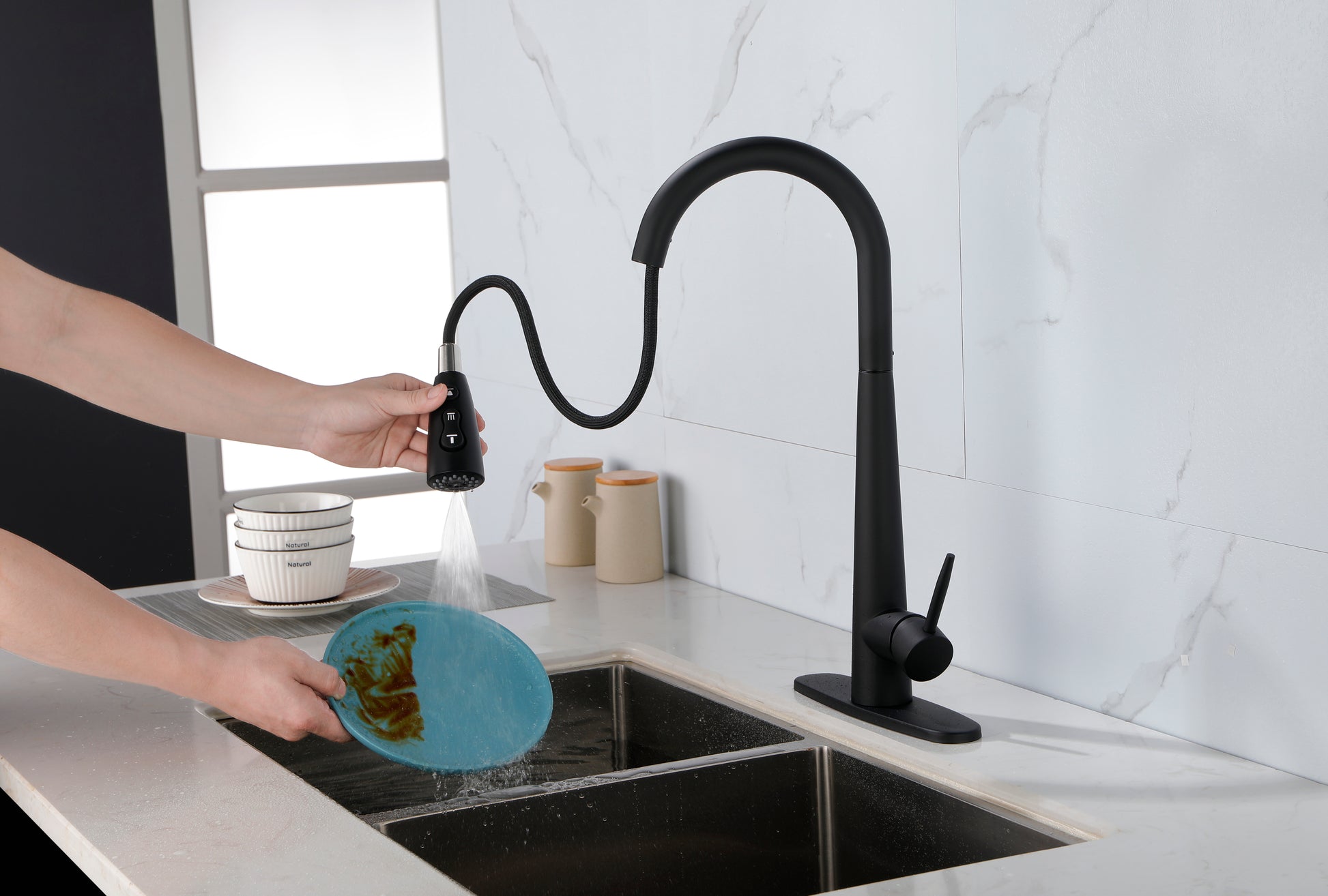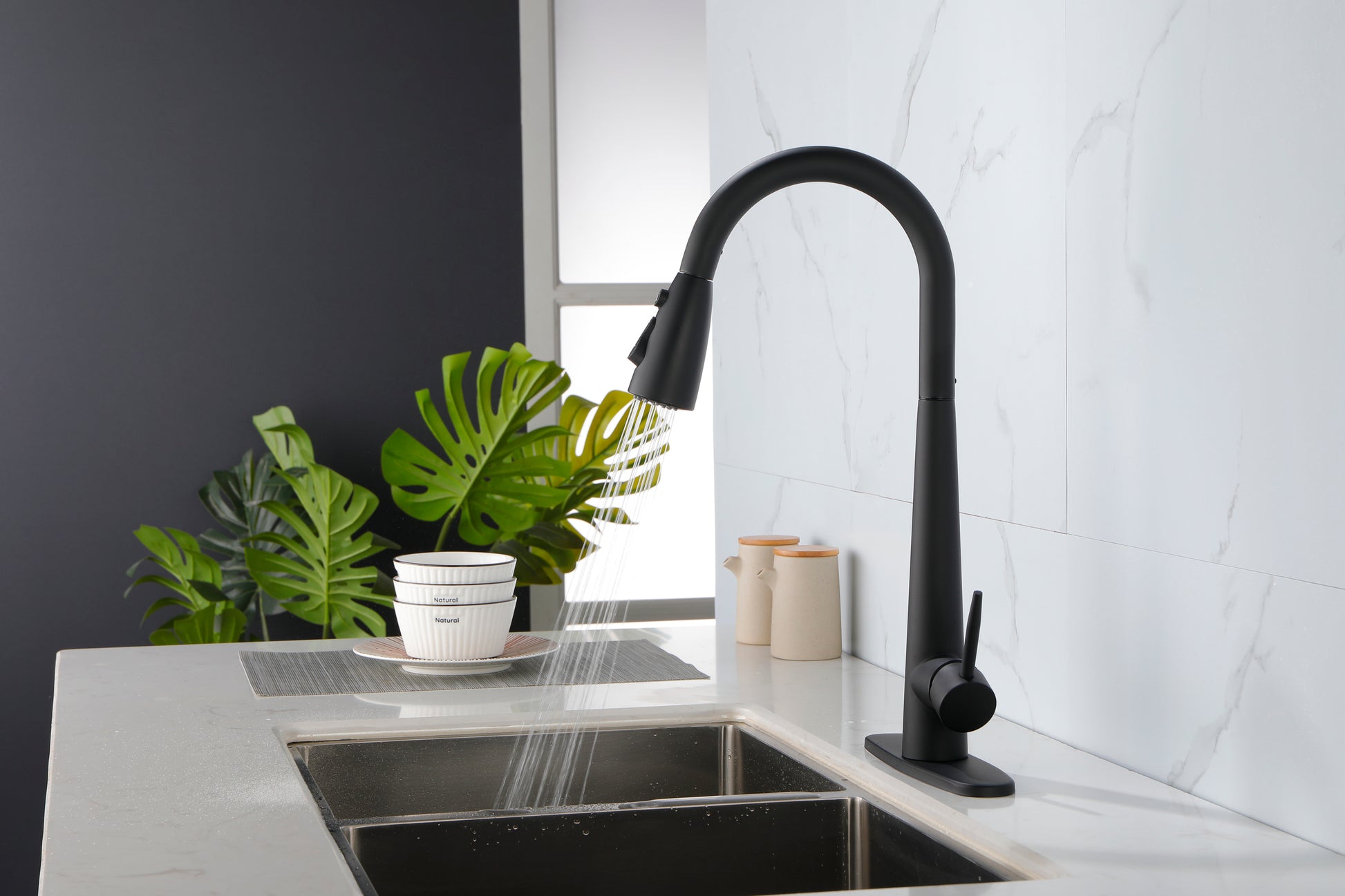 Black Kitchen Faucets with Pull Down Sprayer, Kitchen Sink Faucet with Pull Out Sprayer, Fingerprint Resistant, Single Hole Deck Mount, Single Handle Copper Kitchen Faucet, Matte Black