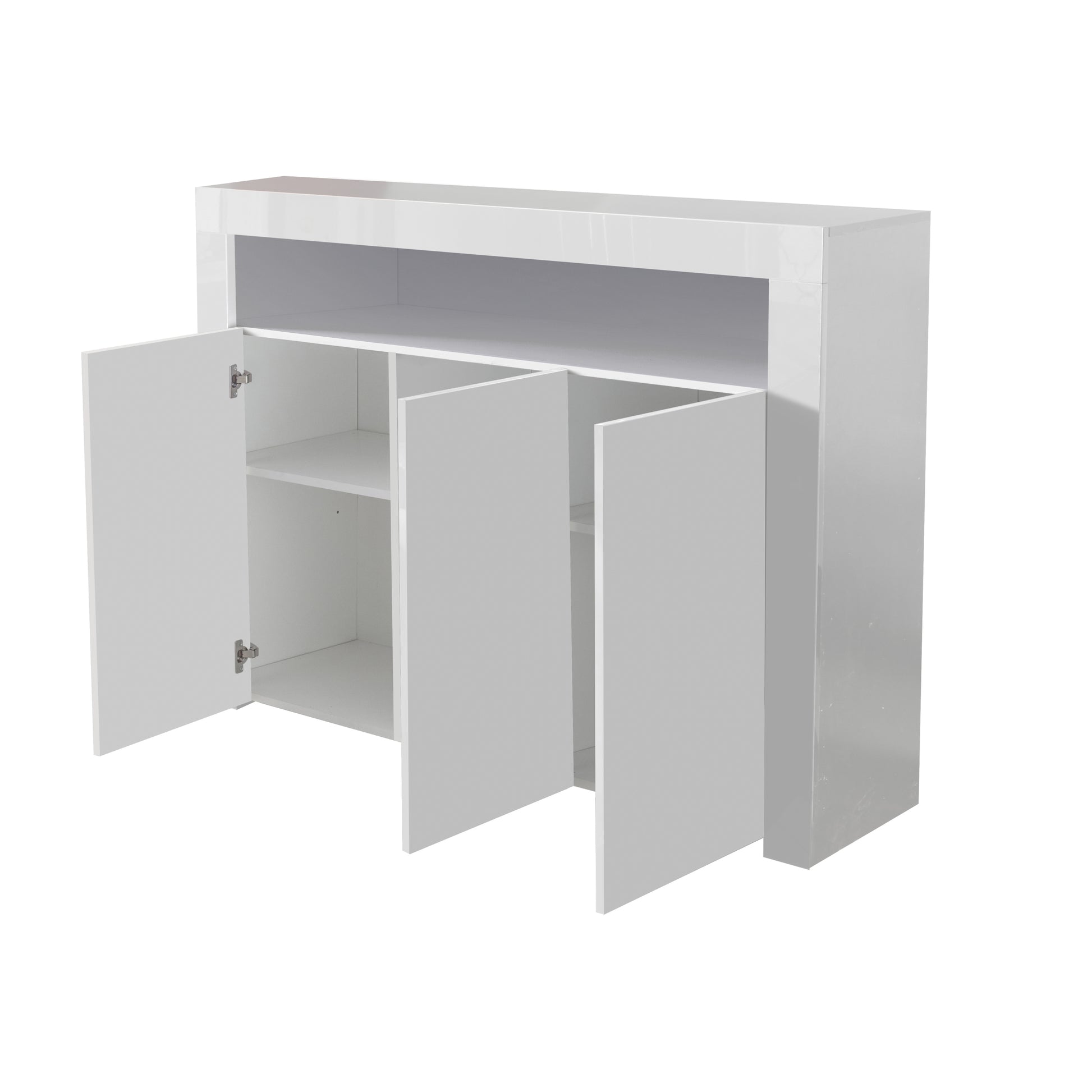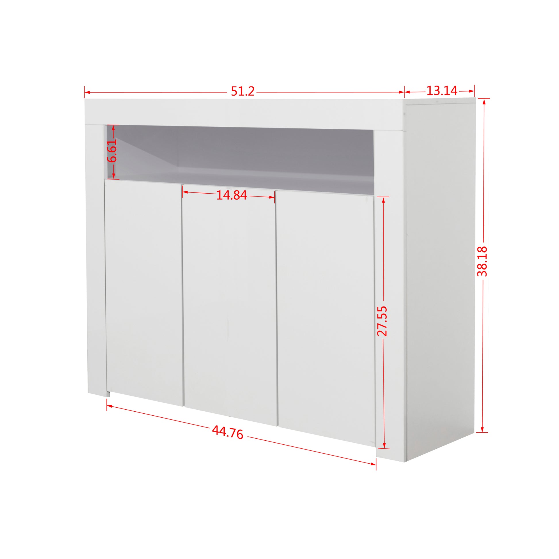 Wooden Sideboard with LED Light: 130cm/51.2(L)×35cm/13.8(W)×97cm/38.2(H), this utility 3 doors sideboard storage cabinet with open cubby space and concealed shelves designed to store household unit, space utilization and prevent dust Multipurpose LED Kitchen Cupboard Storage Buffet: the LED sideboard with multi-colour LED lights, 16 kinds of monochrome and 4 kinds of color change, can change the color of the display through the remote control. Modern Stylish Wood High Gloss Sideboard: this wooden sideboard is made of 16mm E1 particleboard, the LED unit cupboard cabinet is high gloss effect finish to the front of the unit (including doors and front panels); the rest of the body in a matt finish, contemporary and stylish Multifunctional Sideboard Storage Cabinet for Home: this utility LED unit storage cabinet is best choice for living room, bedroom, hallway, small dinette, also could be used as tv stand table, office tea room cabinet Assemble Needed: this utility sideboard required to put together, the installation instruction will come with the parcel, the sideboard will dispatch with 2 parcel, stylish for any apartment, office decoration