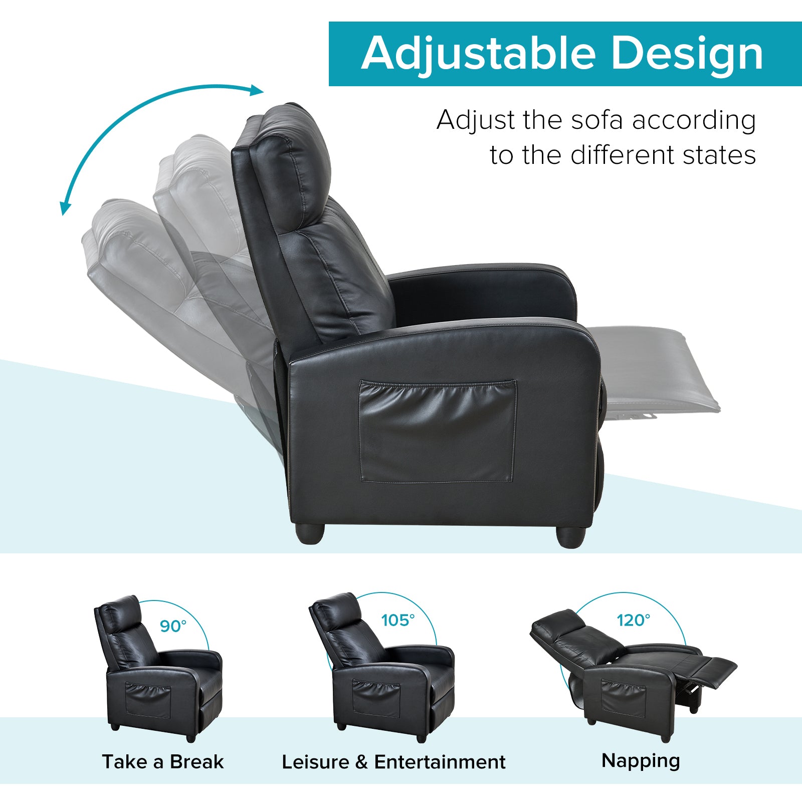 - Strong and Stable:Our adjustable recliner chair is constructed of a strong composite wood frame, naturally soft rayon fibers, high-density foam, quality spring, easy-to-clean PU & PVC leather. The robust recliner chair is capable of holding up 275 lb.