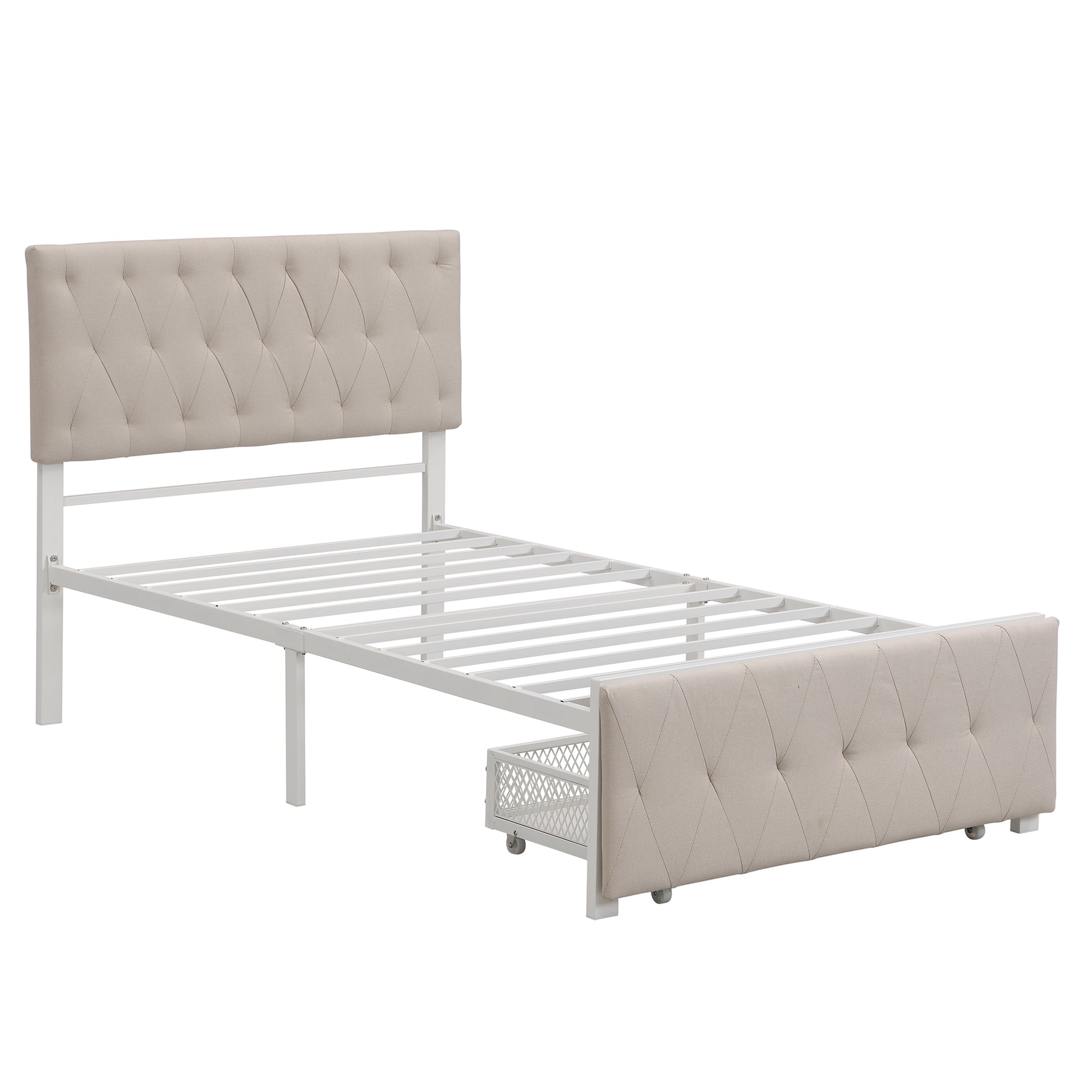 Twin Size Storage Bed Metal Platform Bed with a Big Drawer - Beige
