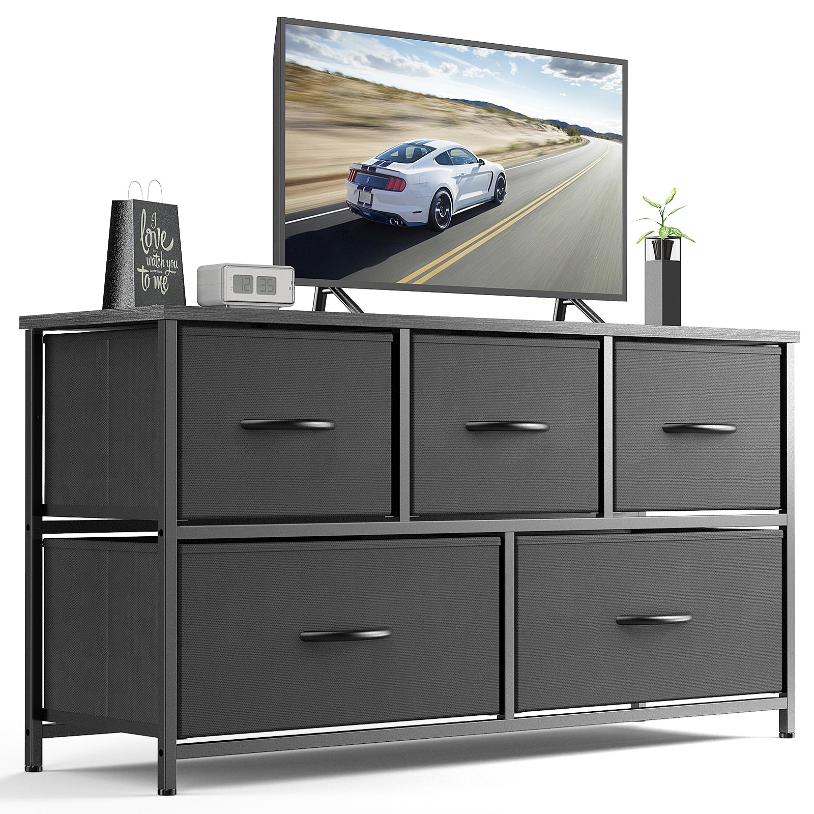 - For easy storage, 2 sizes of storage space drawers are offered. These 5 foldable deep drawers are spacious enough to provide endless organizational possibilities. The wooden top of the dresser organizer is great for lamps, clocks, glasses, and other daily essentials, keeping them within your reach.