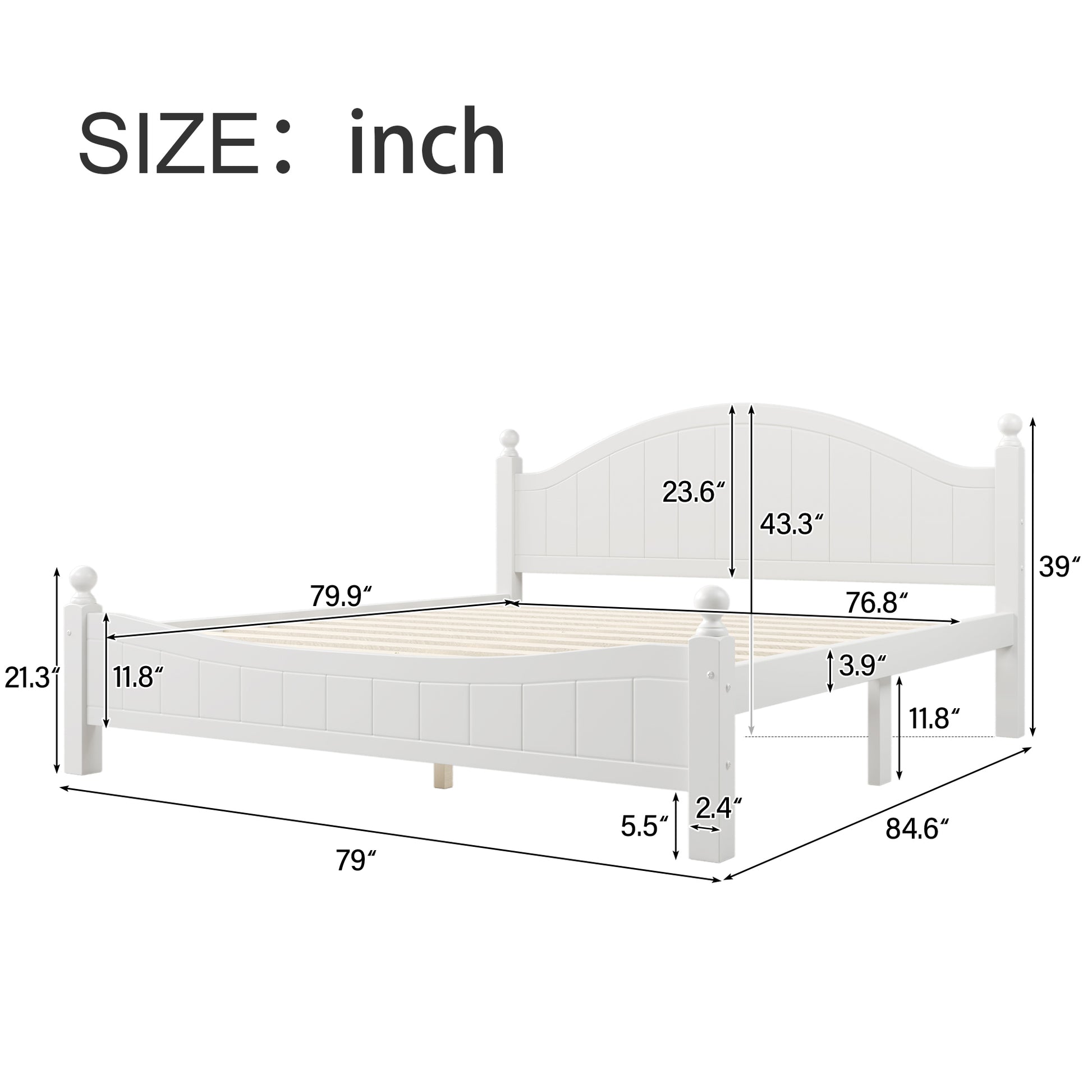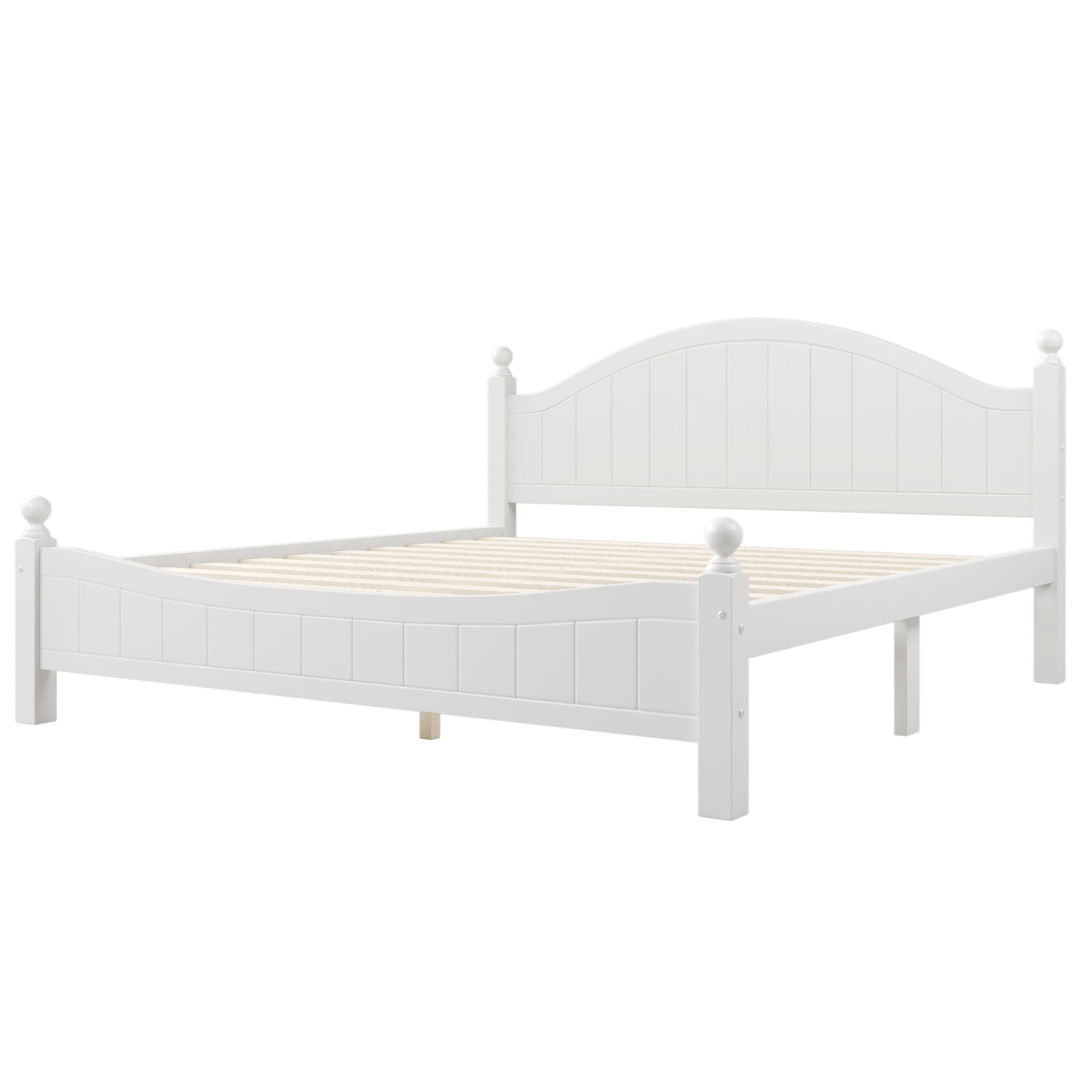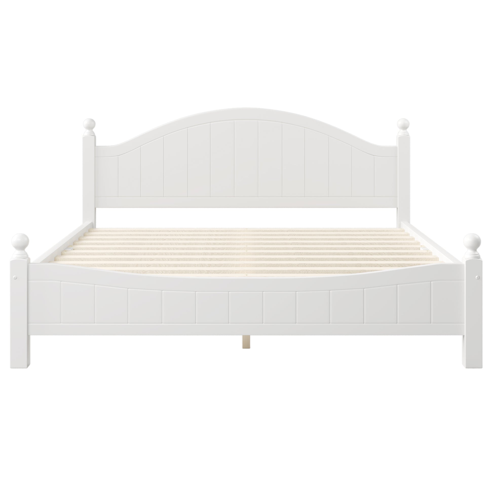 Traditional Concise Style White Solid Wood Platform Bed, No Need Box Spring, King