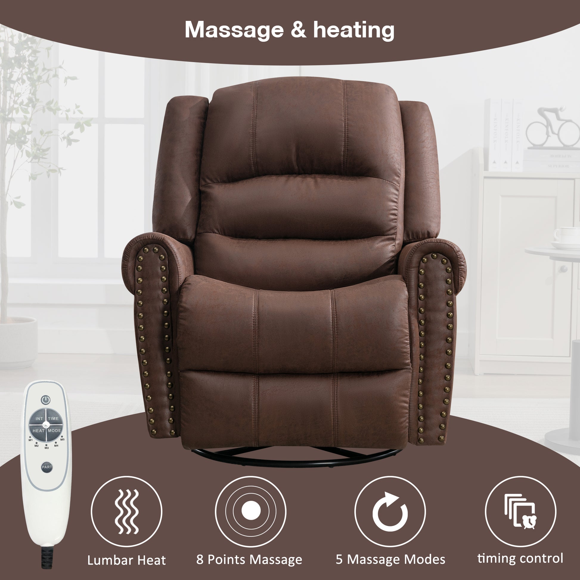 Massage Rocker Recliner Chair Rocking Chairs for Adults Oversized with USB Charge Port Soft Features a Manual Massage and Heat.BROWN