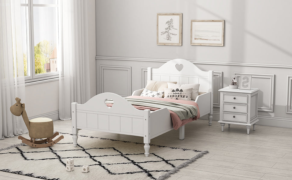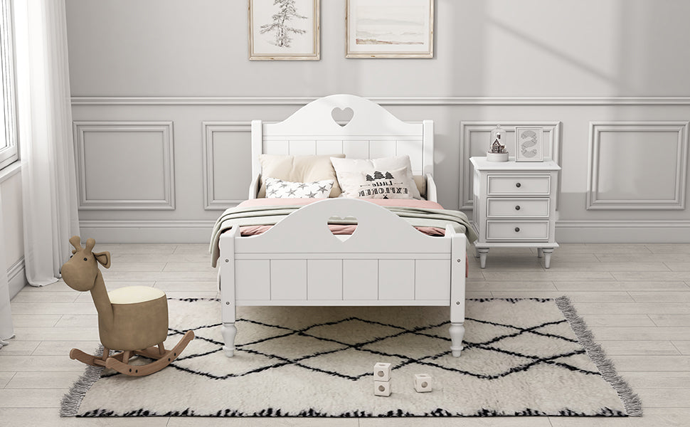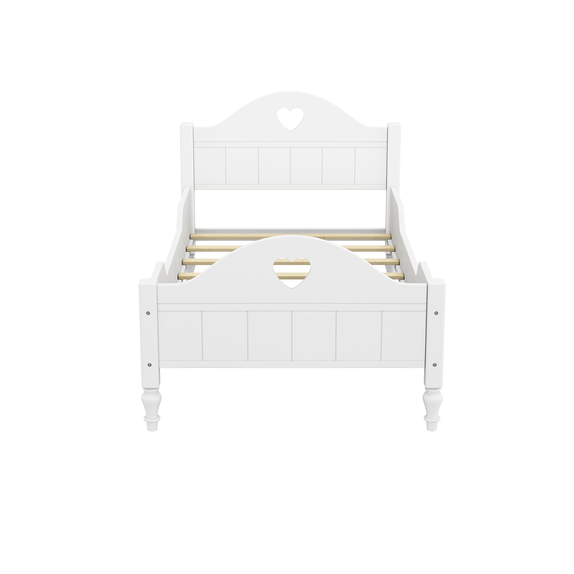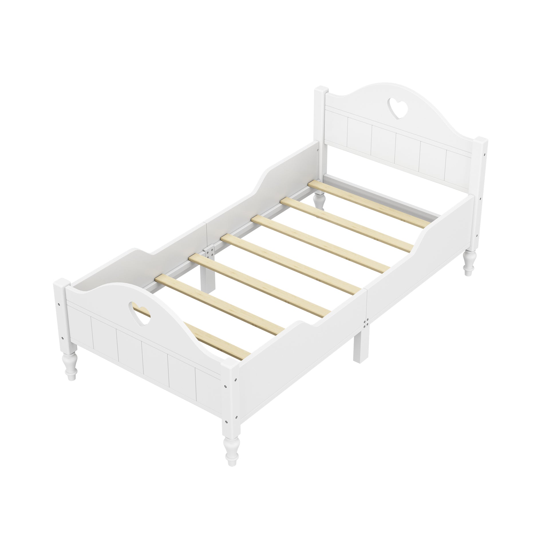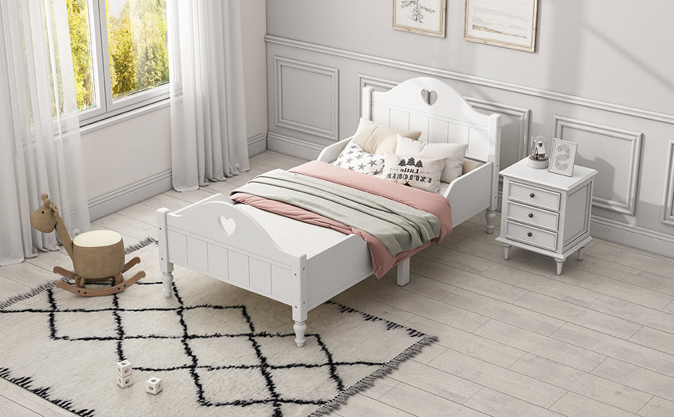 Macaron Twin Size Toddler Bed with Side Safety Rails and Headboard and Footboard,White