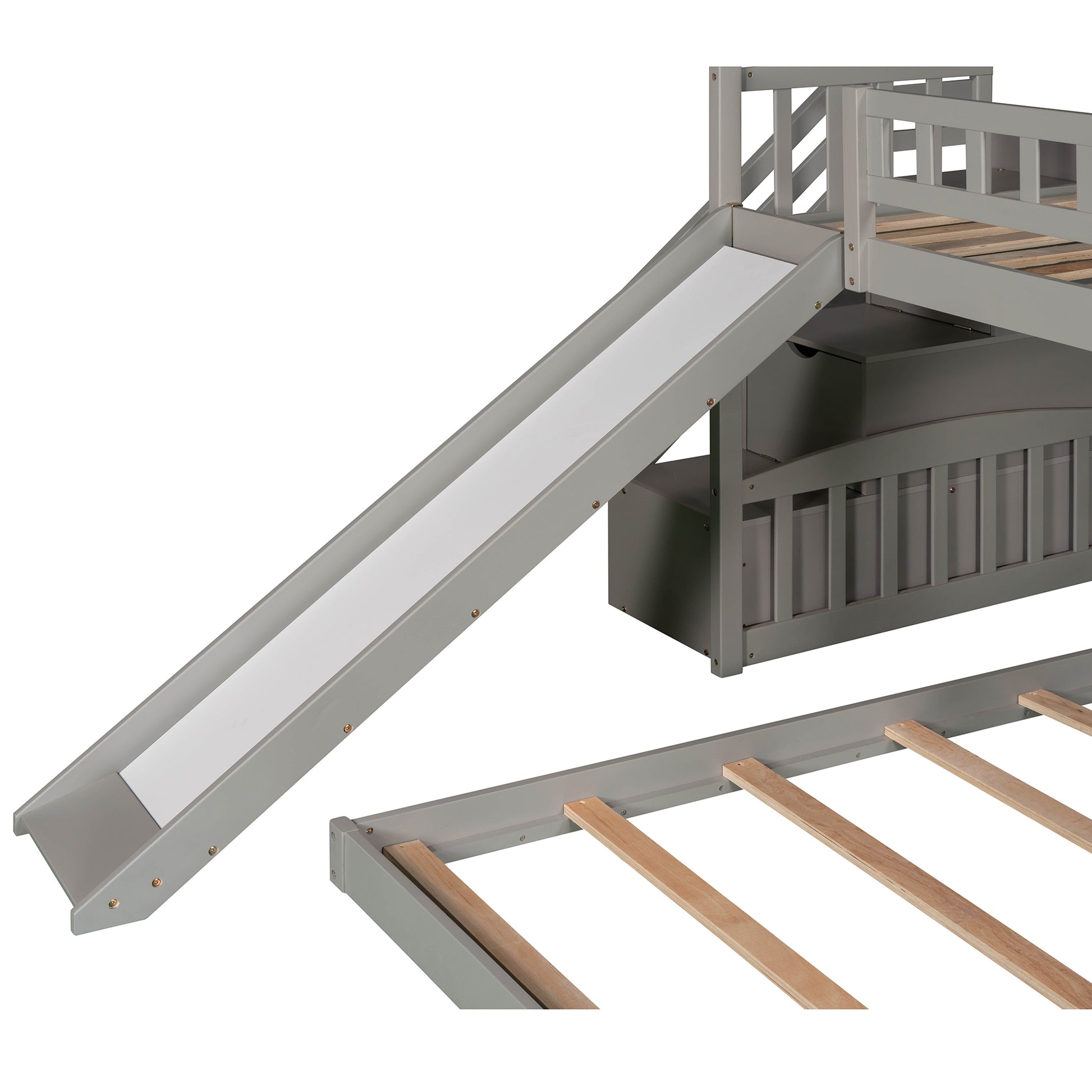 [Friendly Design]Crafted with a whimsical playhouse design,comes with slide and storage steps, this bunk bed offers you a comfortable and exhilarating experience during both sleep and playtime that will let your imaginations run wild. Perfect for hours of entertainment and relaxation, the playhouse design makes this bunk the perfect centerpiece for your bedroom.