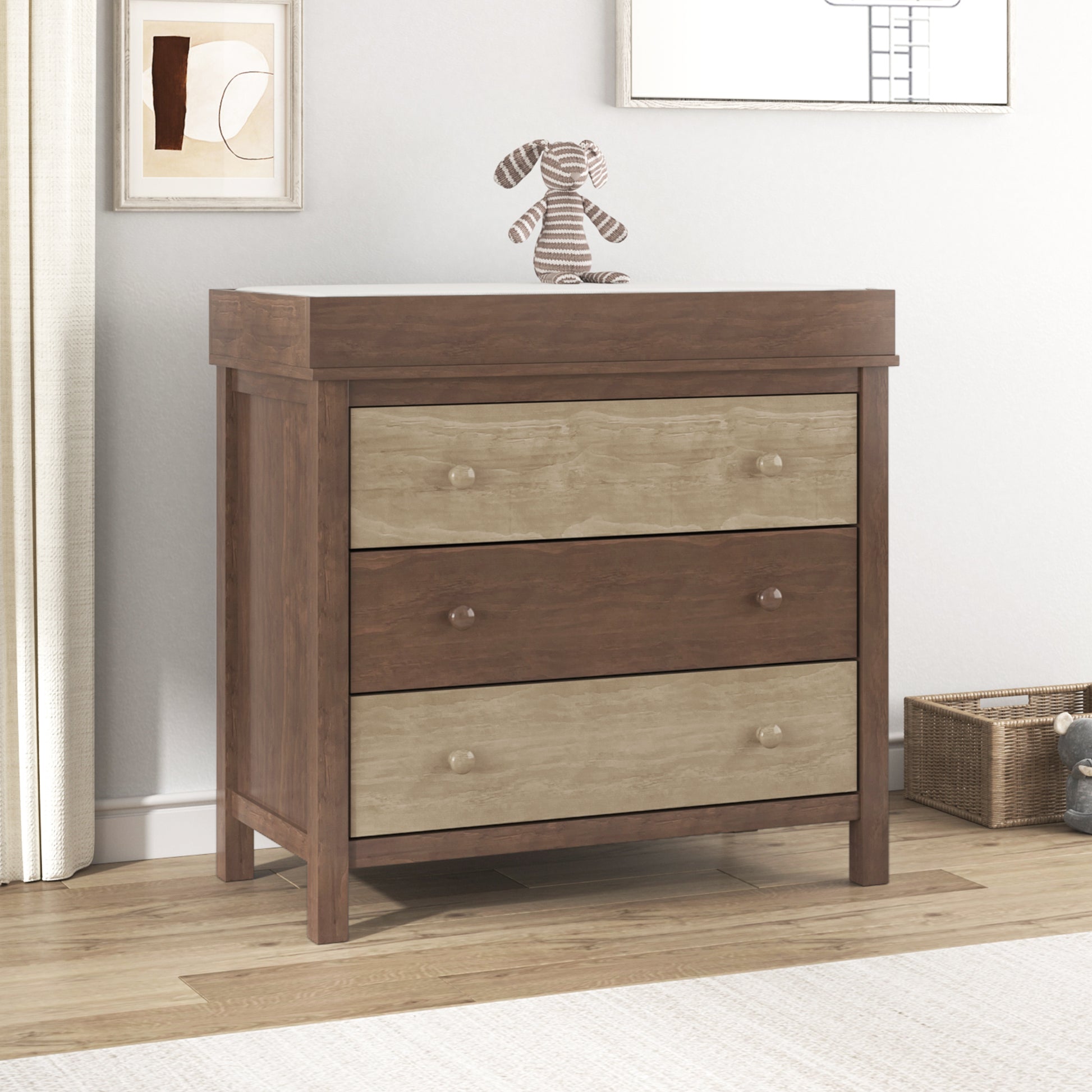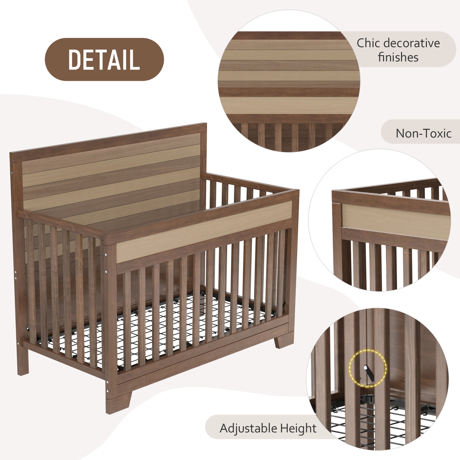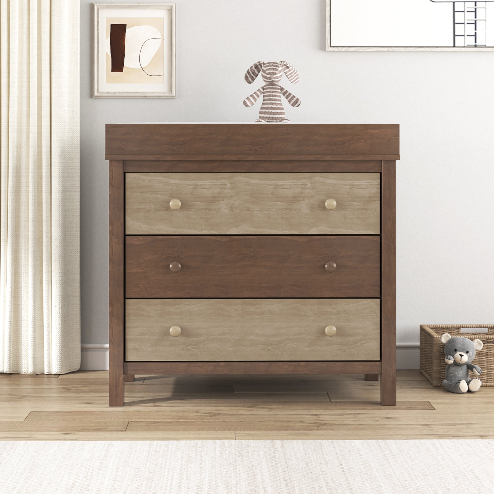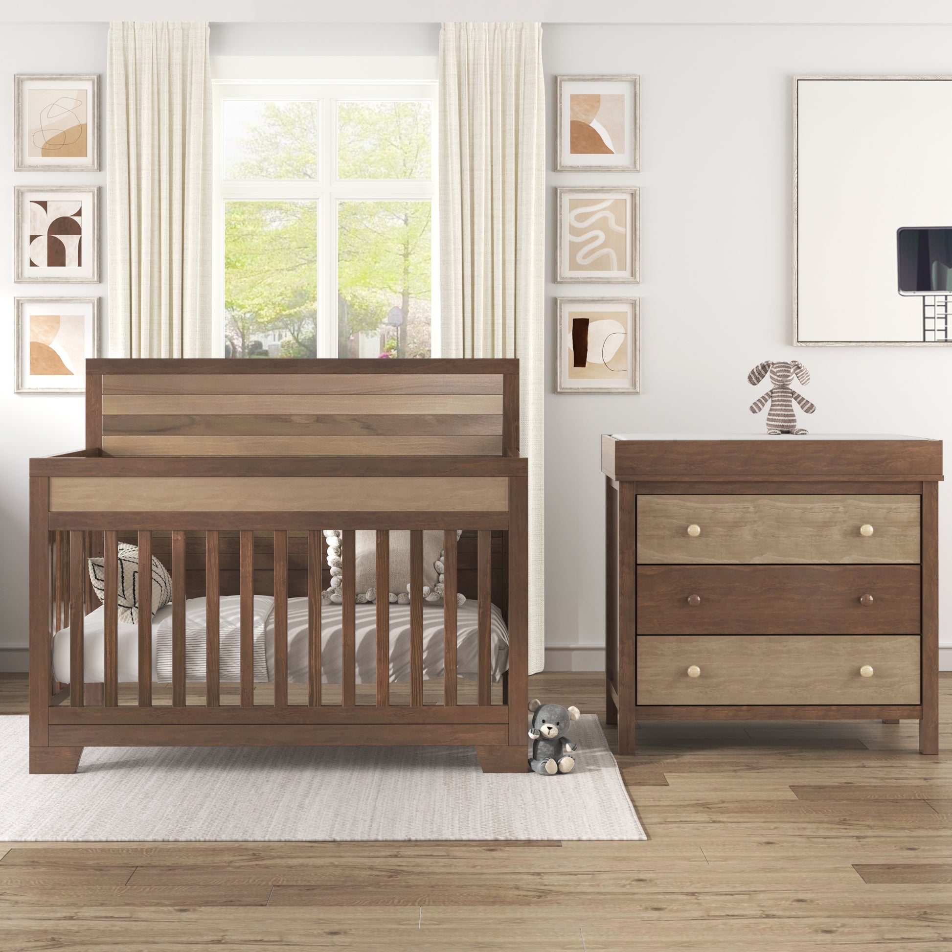 3 Pieces Nursery Sets Baby Crib and Changer Dreeser with Removable Changing Tray Bedroom Sets Brown