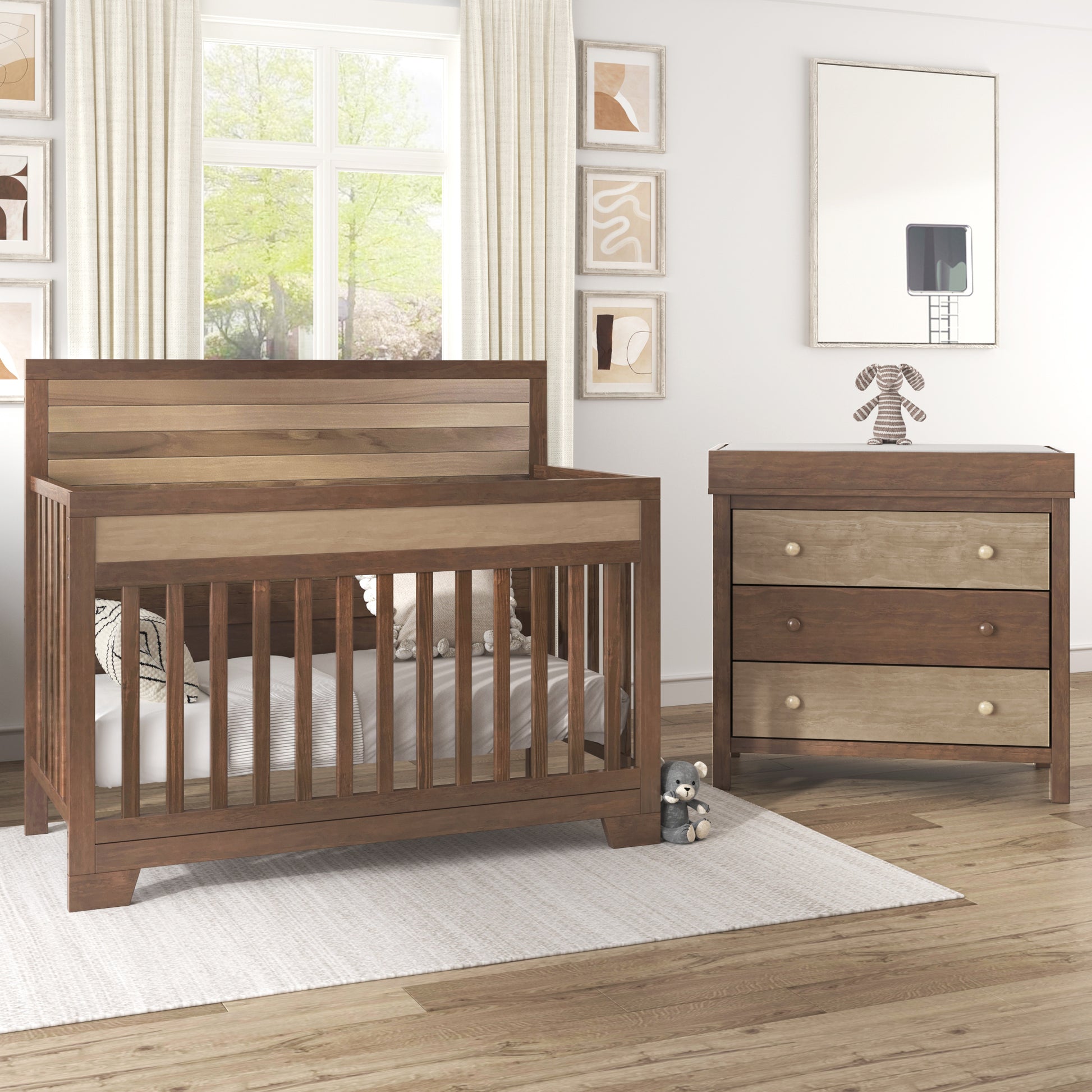 - PRODUCT SPECS: Dimensions: Crib:45.1H x 53.8L x 27W inches, max weight limit 154 lbs. Dresser: Crib:35.8H x 36L x 18.1W inches, max weight limit 154 lbs. Add more eclectic textures to your modern décor by pairing it with the matching Chest with Changing Tray.