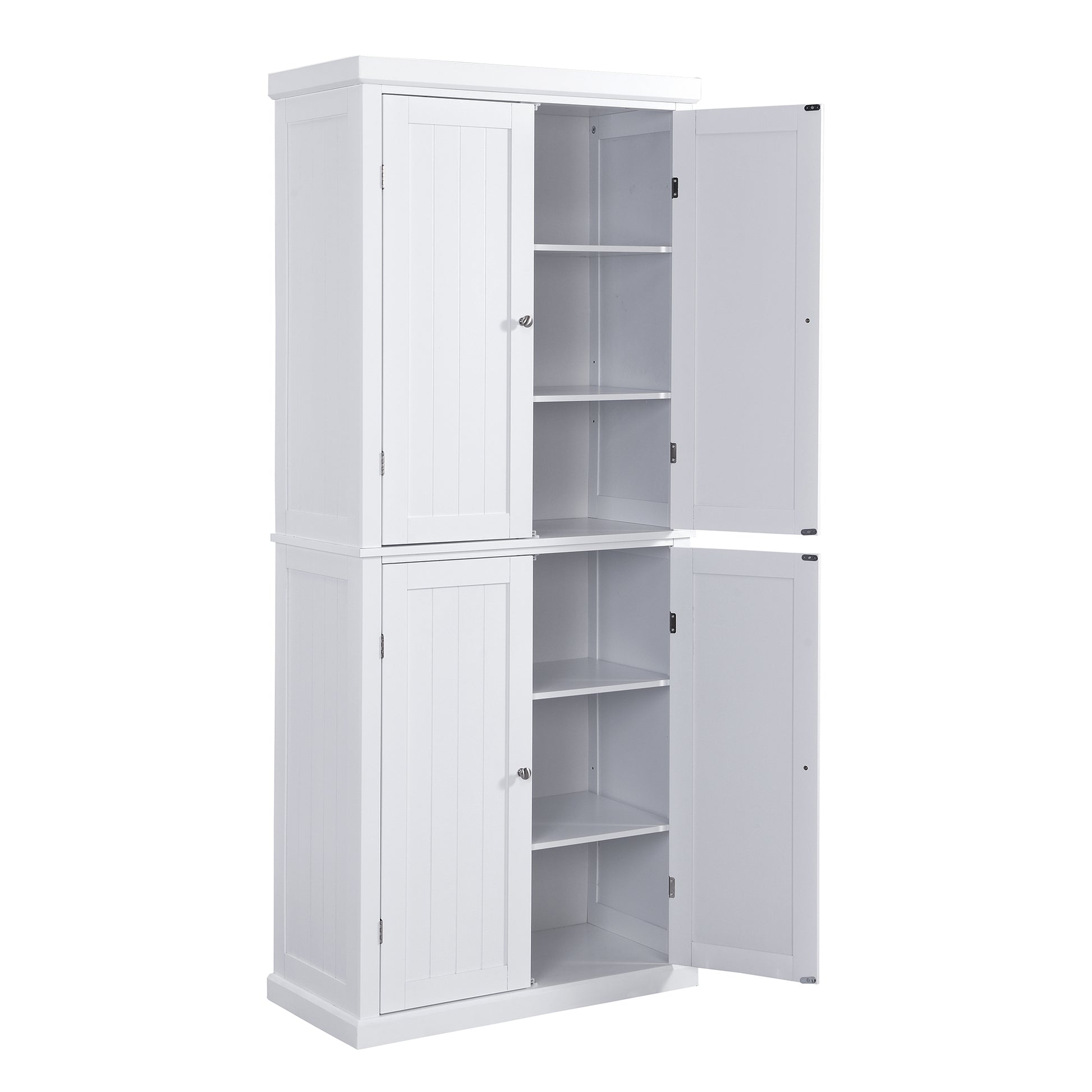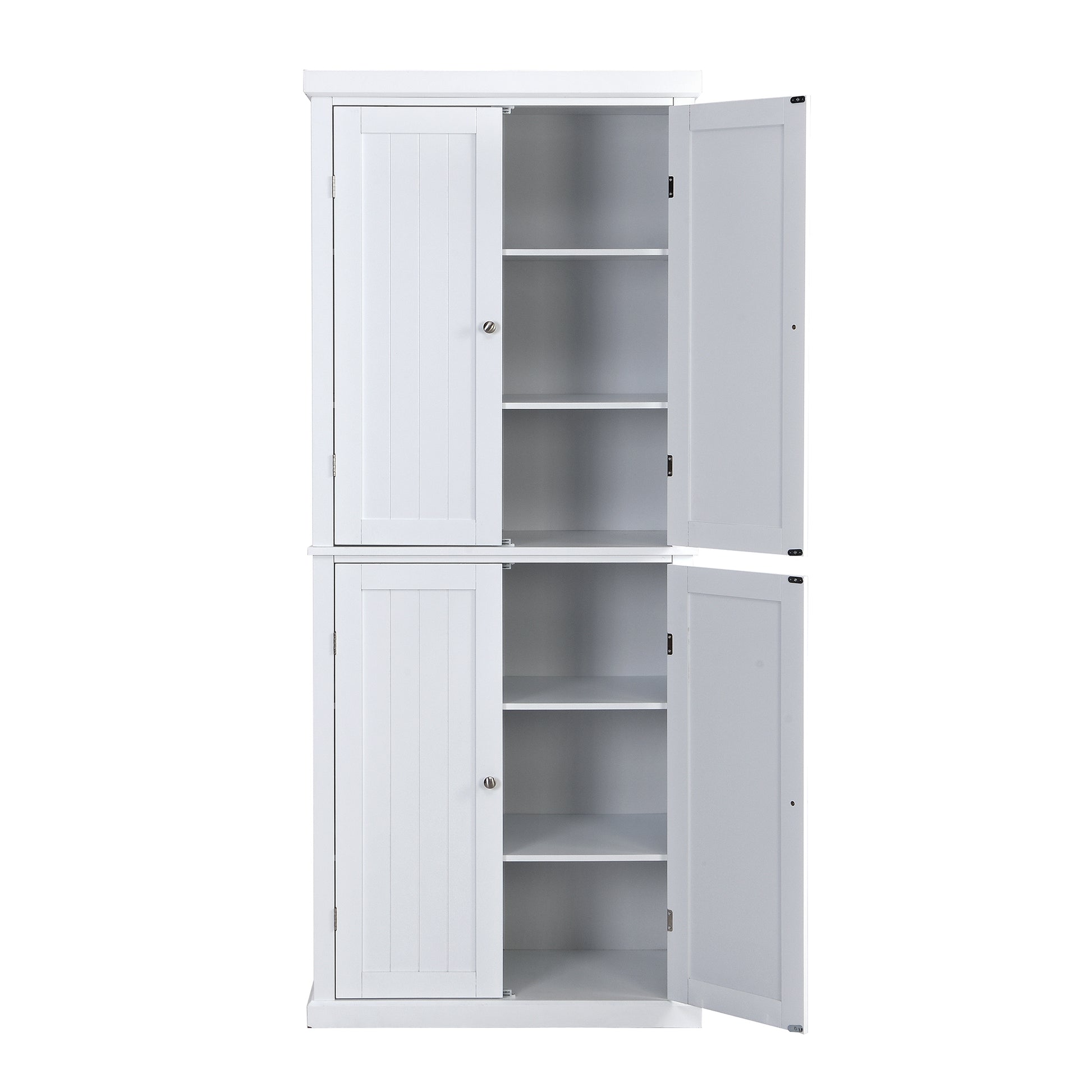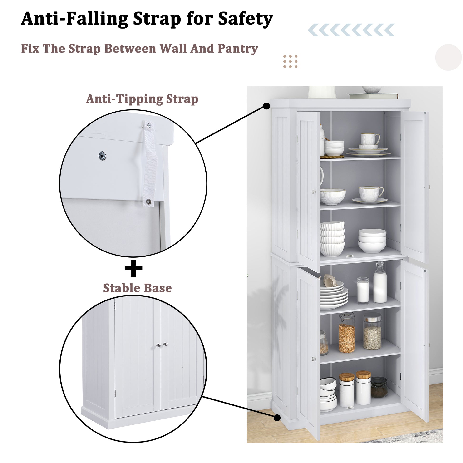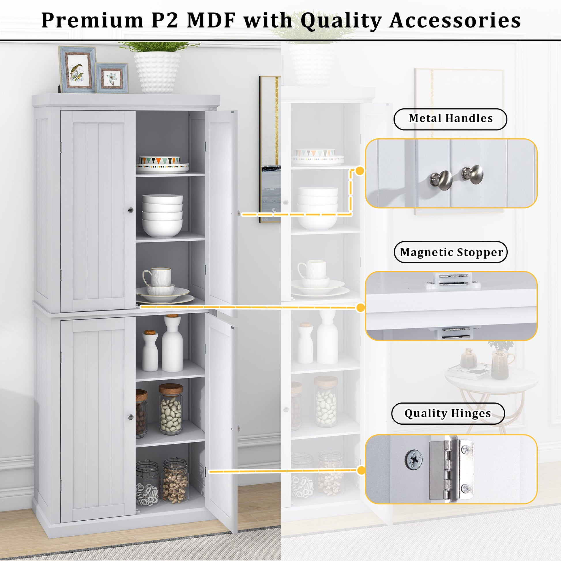 TOPMAX Freestanding Tall Kitchen Pantry, 72.4" Minimalist Kitchen Storage Cabinet Organizer with 4 Doors and Adjustable Shelves, White