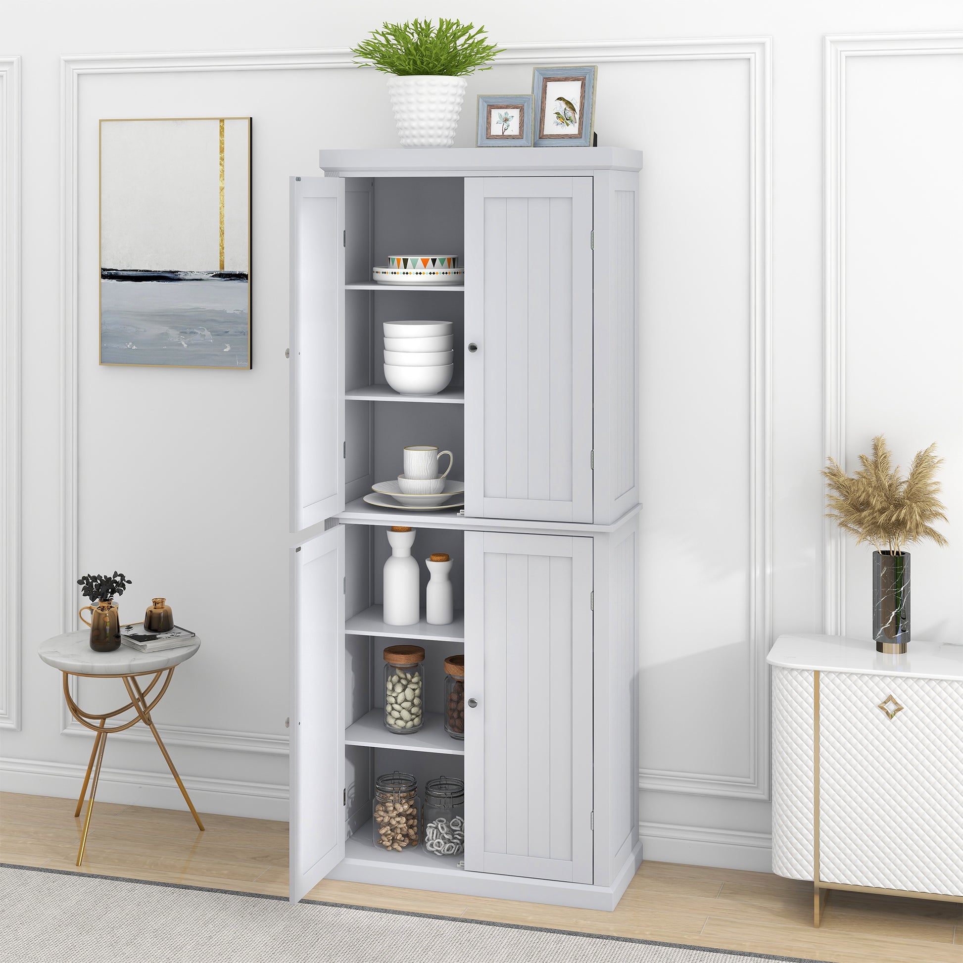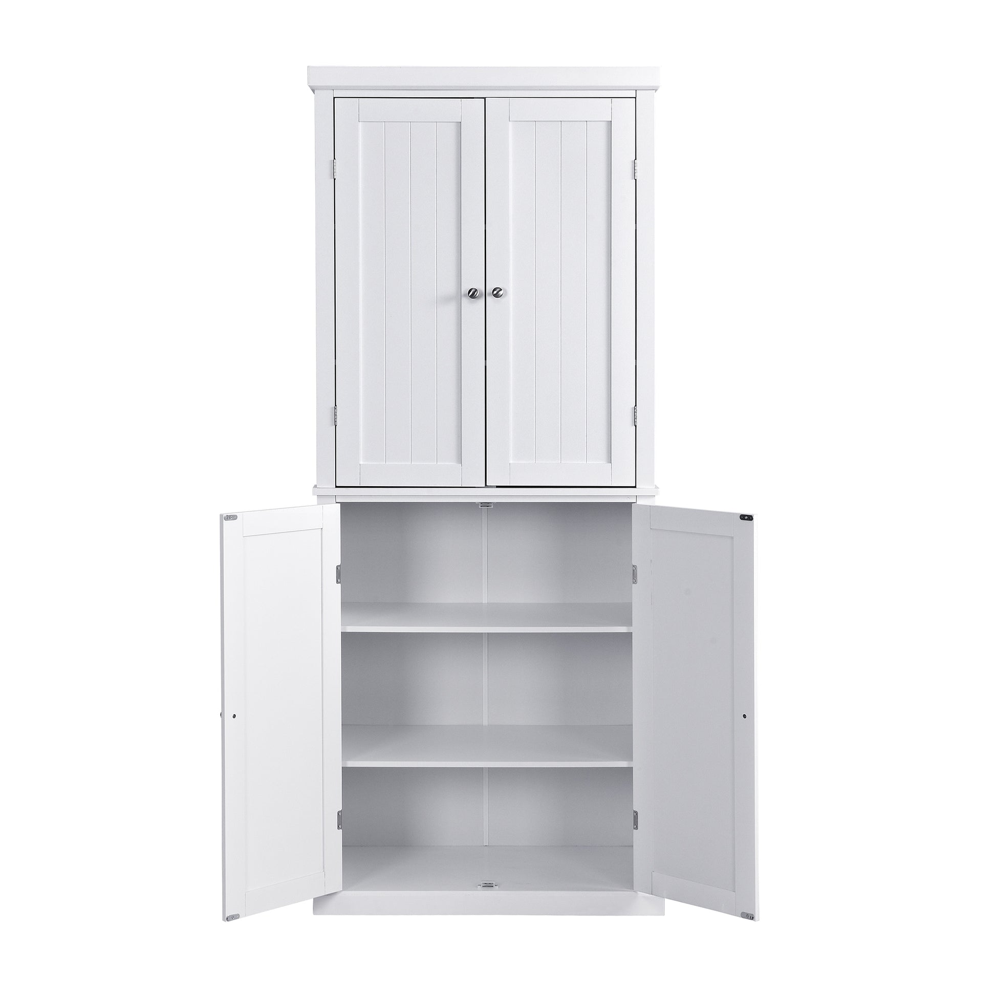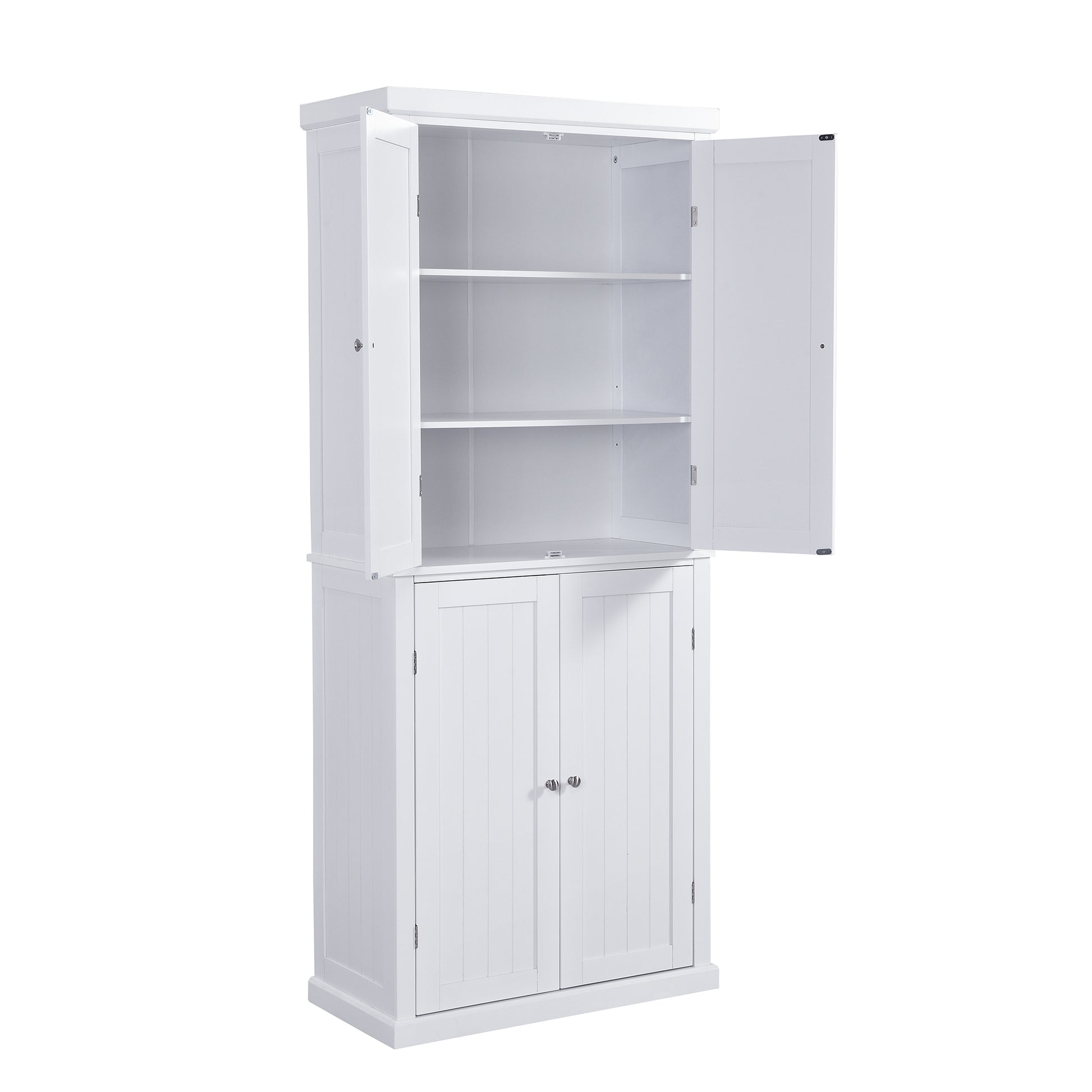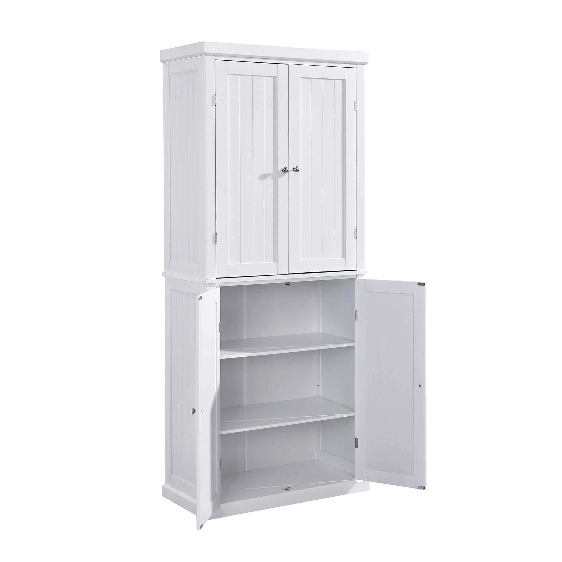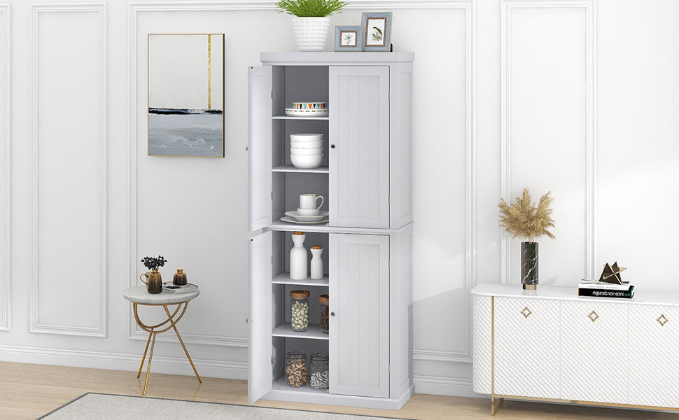 TOPMAX Freestanding Tall Kitchen Pantry, 72.4" Minimalist Kitchen Storage Cabinet Organizer with 4 Doors and Adjustable Shelves, White