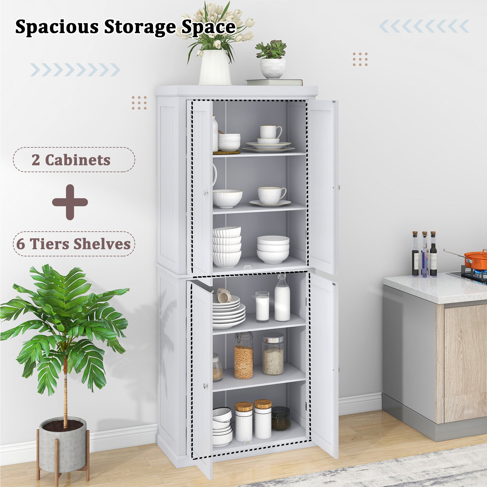 - [Ample Storage Space] Always feel lack of space? Don't worry.This tall kitchen pantry will provide you with extra storage space. Come with 6-tier shelves (3 tiers in each part), the kithen organizer will hold lots including kitchen dishes, pots, jars as well as other small appliances with its 13.8inch depth.