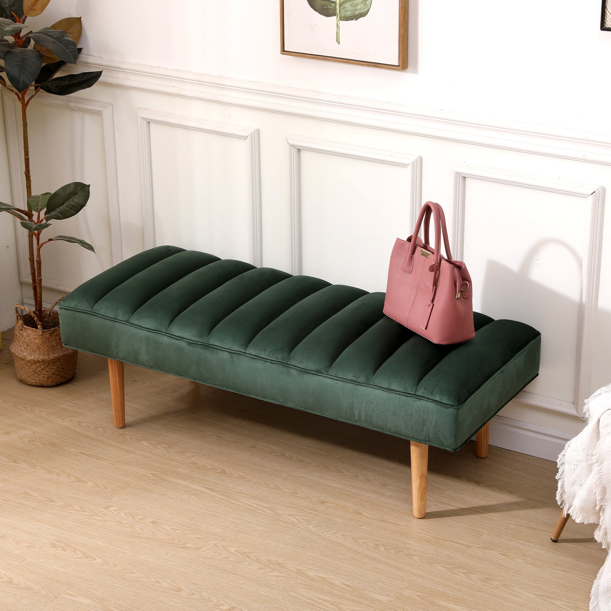 Accent Channel Tufted Ottoman Green Velvet End of Bed Bench for Bedroom, Living Room, Entryway (Green)