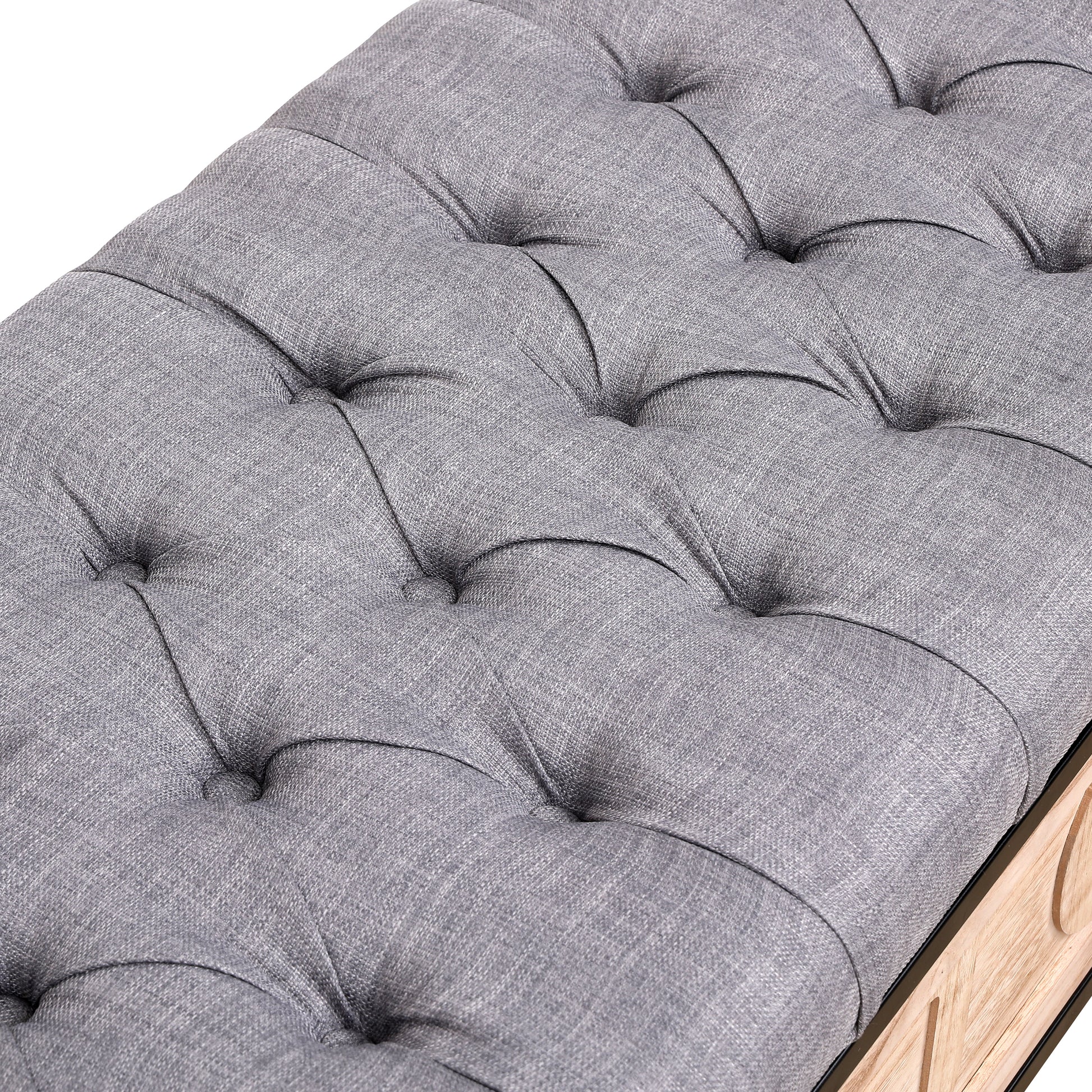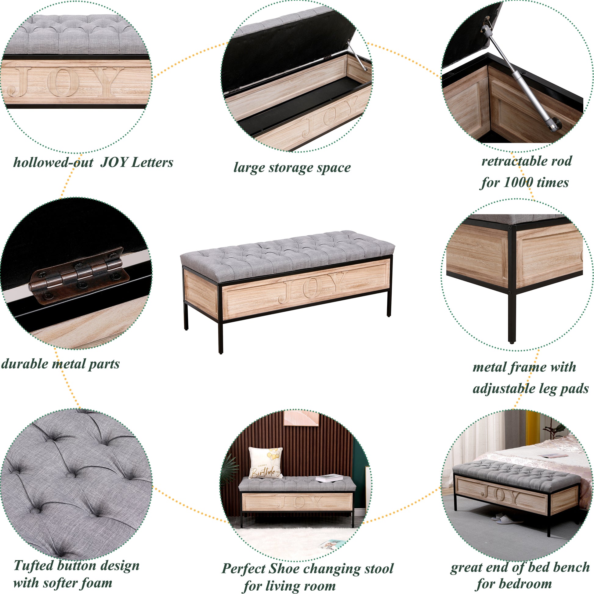 48'' Storage Bench Linen Upholstered End of Bed Storage Benches with Button Tufted Wooden JOY Ottoman for Bedroom, Living Room (Gray)