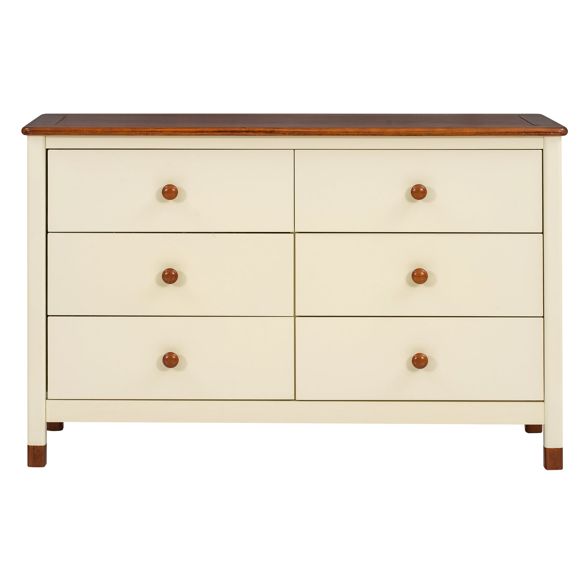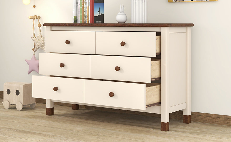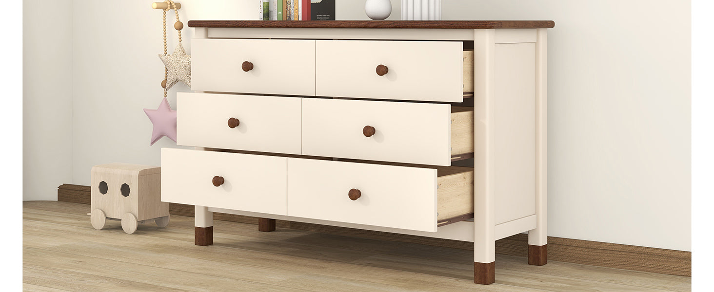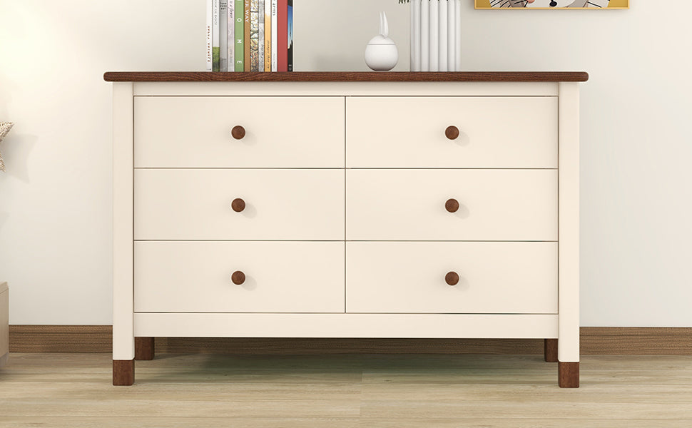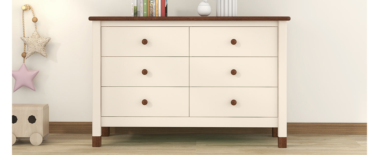 Wooden Storage Dresser with 6 Drawers,Storage Cabinet for kids Bedroom,Cream+Walnut