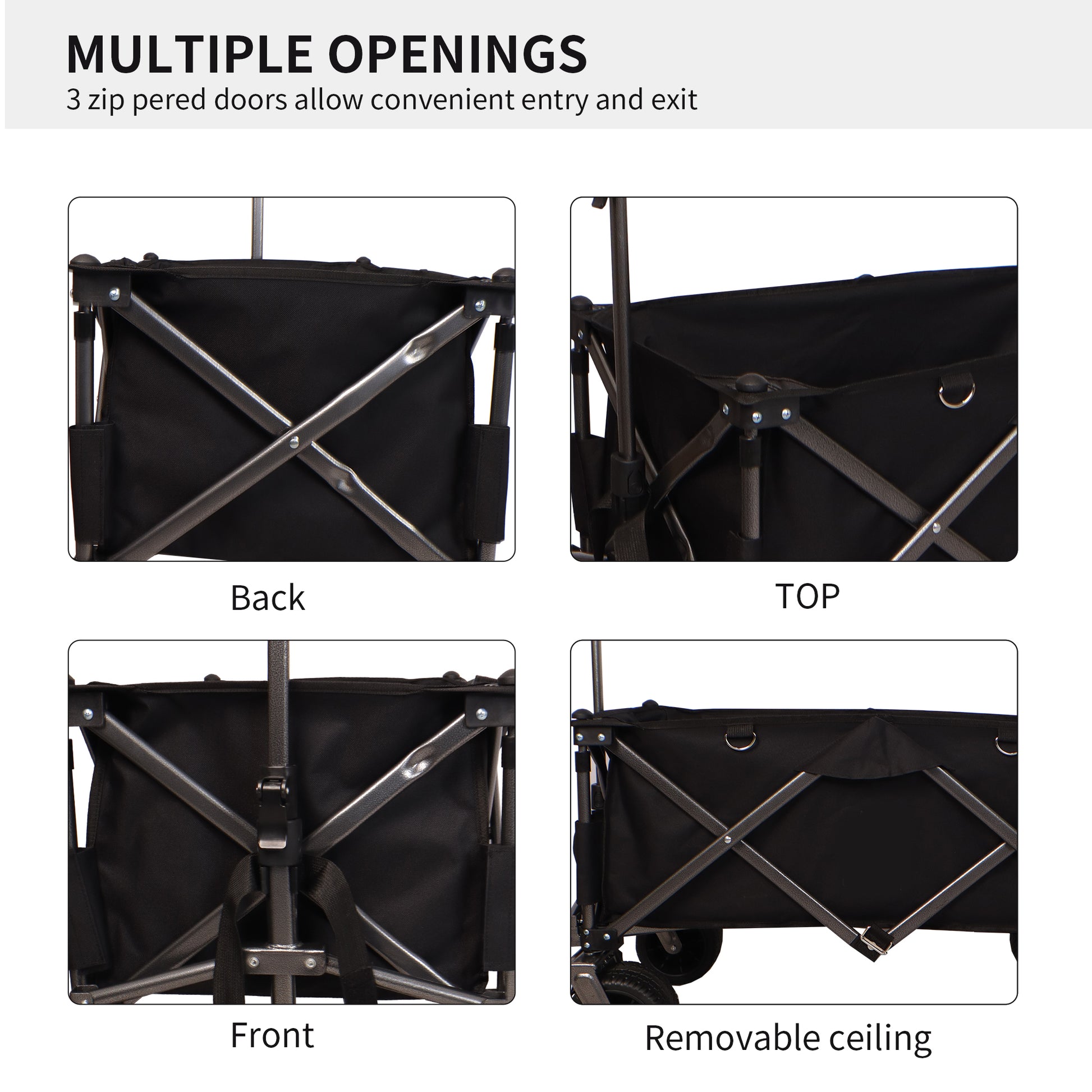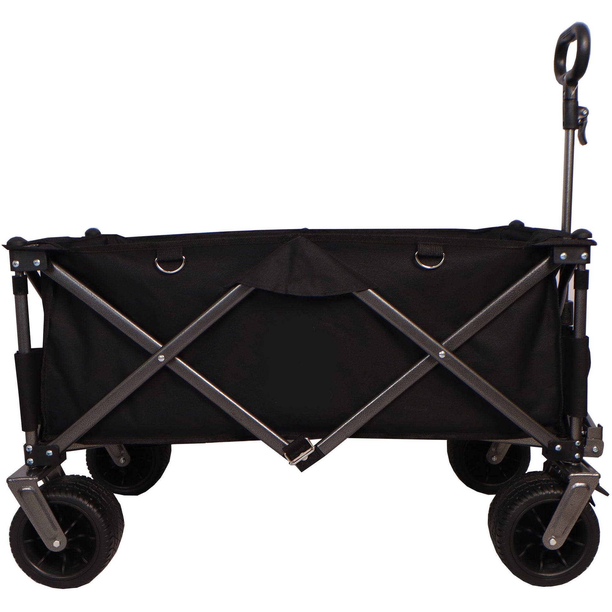 Unleash the Power of a Heavy-Duty: Crafted with 600D double-layered fabric, this folding wagon is a force to be reckoned with. Waterproof, tear-resistant, and effortlessly cleanable, it's built to withstand any challenge. The heavy-duty alloy steel frame, fortified by a double X structure, can effortlessly handle up to 225 lbs of weight