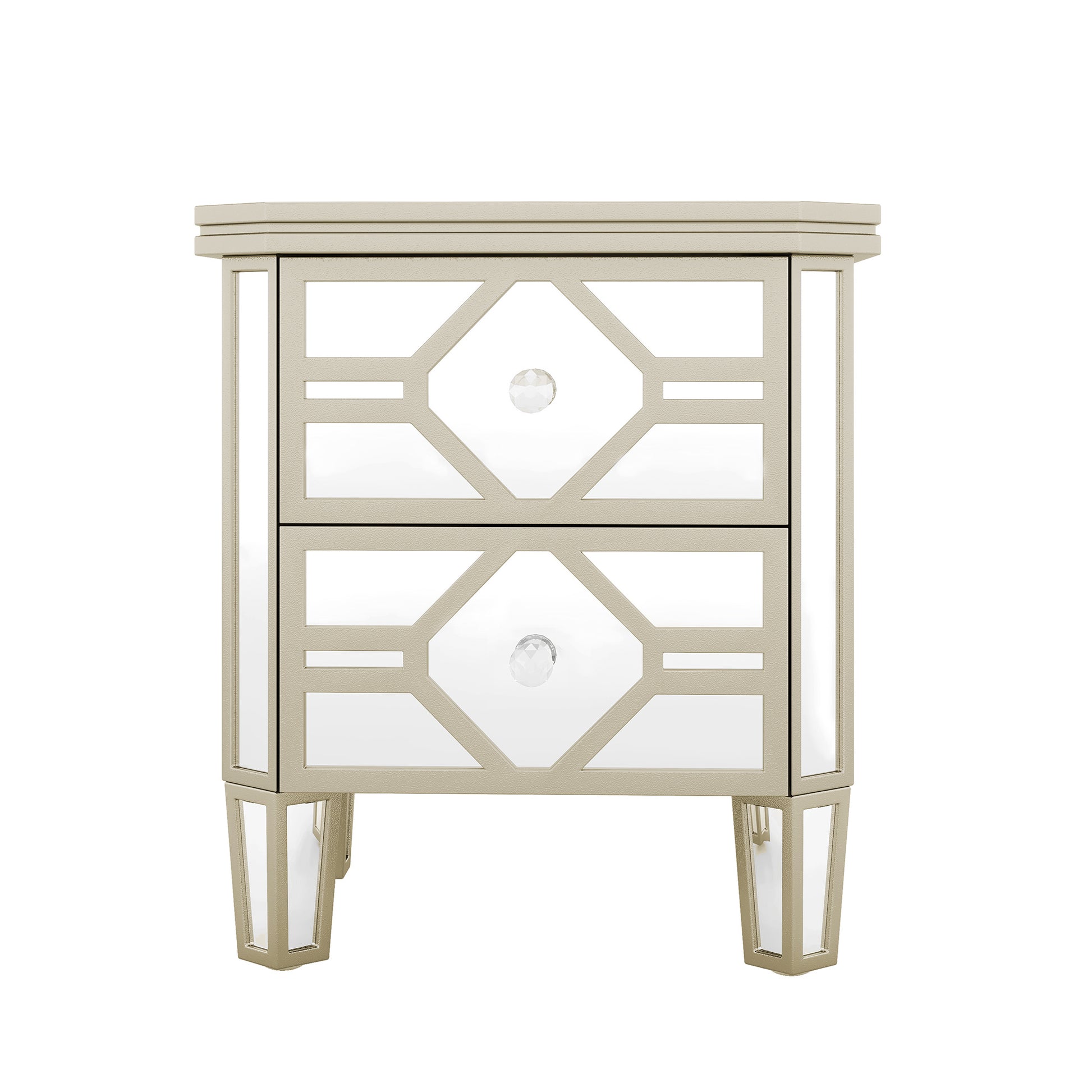 Bringing an elegant crisp look right up to date, the stunning 2 drawer side table will help to transform your living room. Perfect for a guest room, hallway or entryway, the outstanding side table features a stylish golden paint finished with a mirrored boarder and surface which would complement a variety of color schemes. This is a refined and effortlessly stylish piece which would fit seamlessly into both traditional and modern homes. 2 spacious drawers enable you to tidy away all of your accessories.