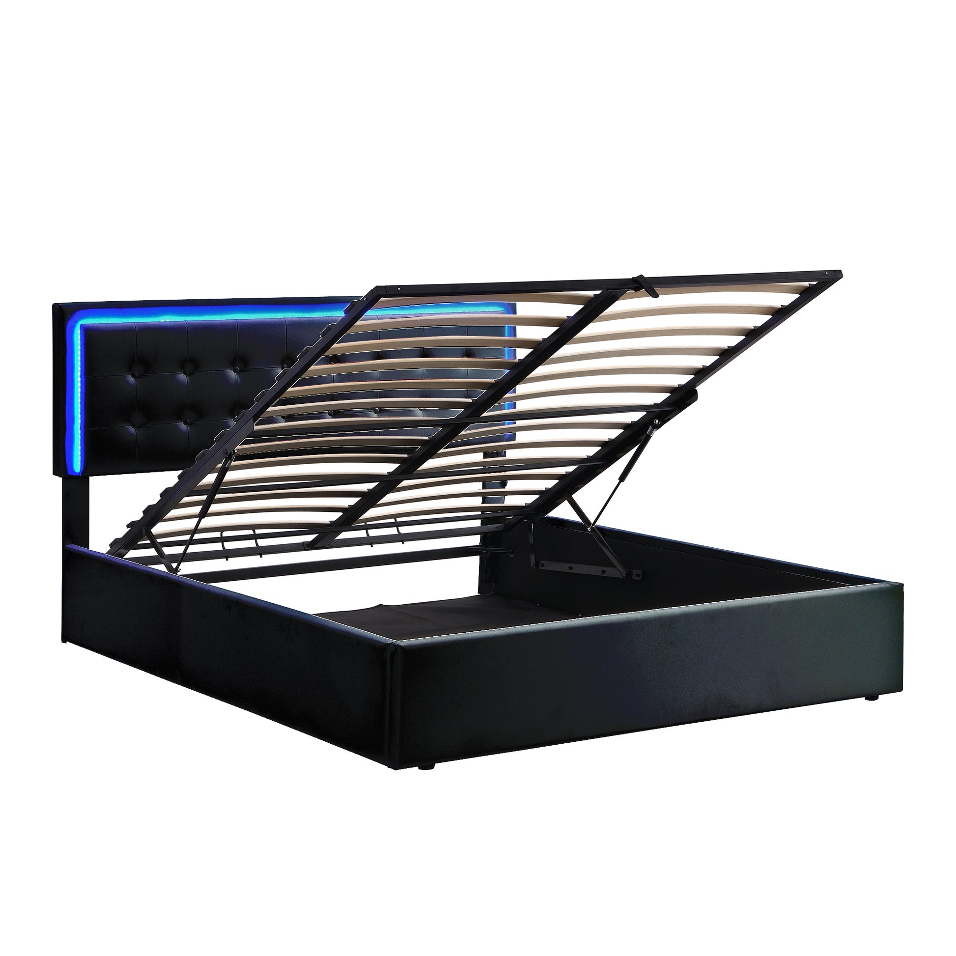Queen Size Tufted Upholstered Platform Bed with Hydraulic Storage System,PU Storage Bed with LED Lights,Black
