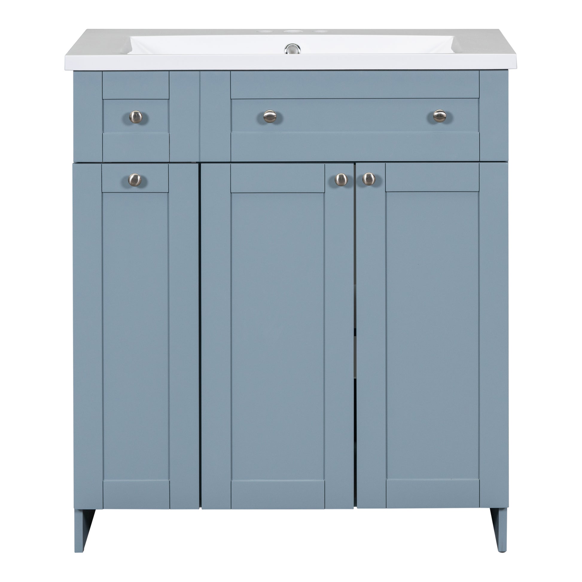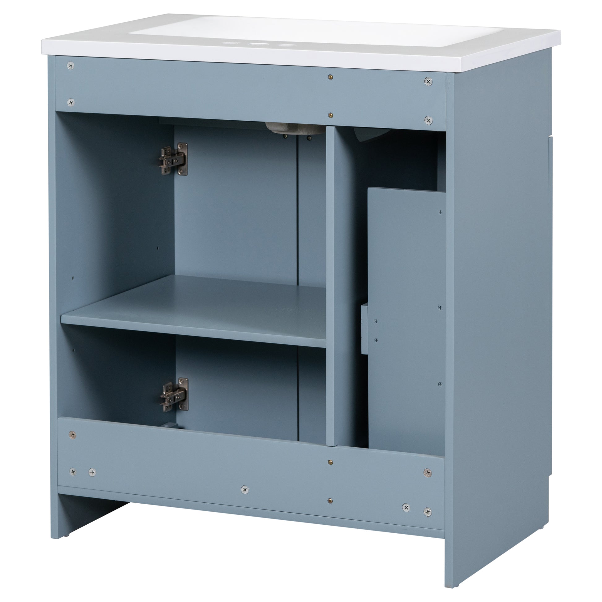 Modern 30-Inch Bathroom Vanity Cabinet with Easy-to-Clean Resin Integrated Sink in Blue