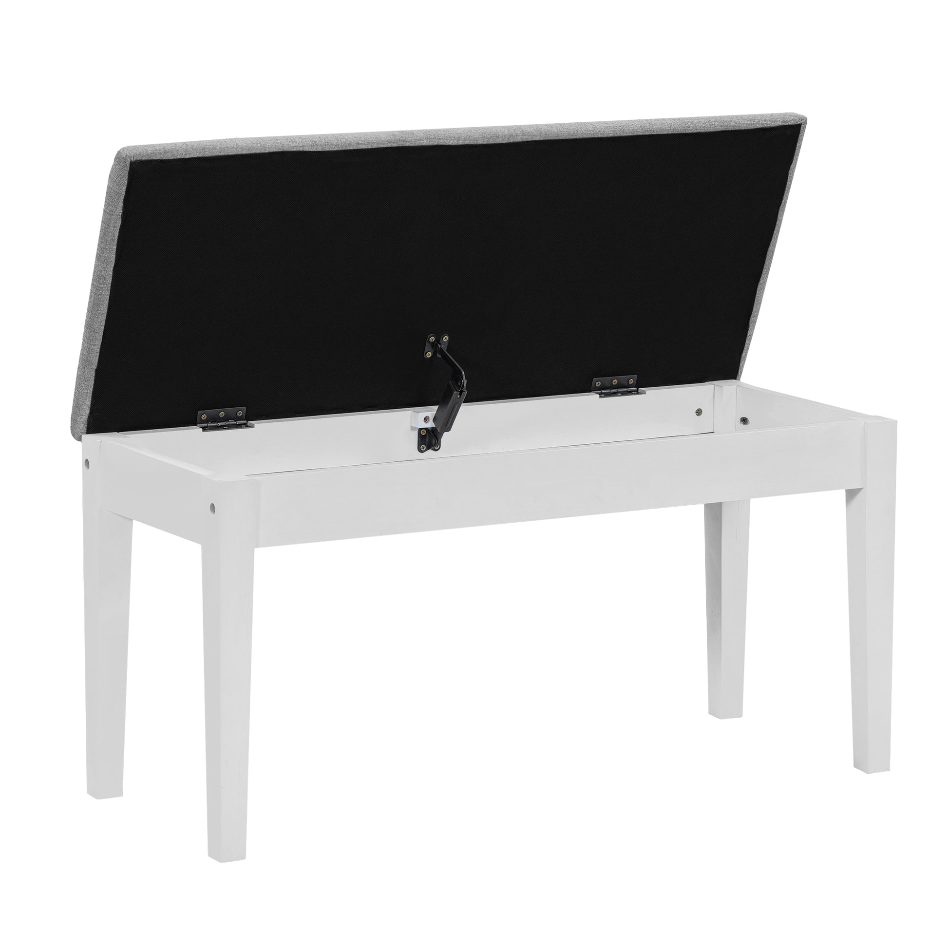 Highlights | Solid Wood // Flip Up Storage Bins // Storage Drawer // Silver Rivet Decoration // 4 Upholstered Dining Chairs // Storable Padded Bench // 2 Colors Available |