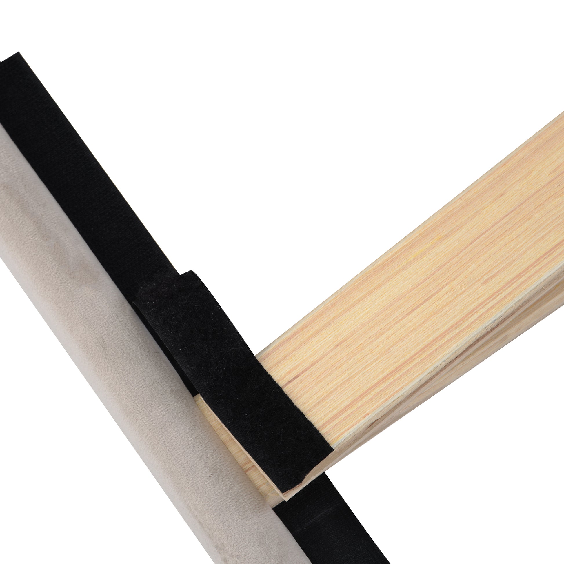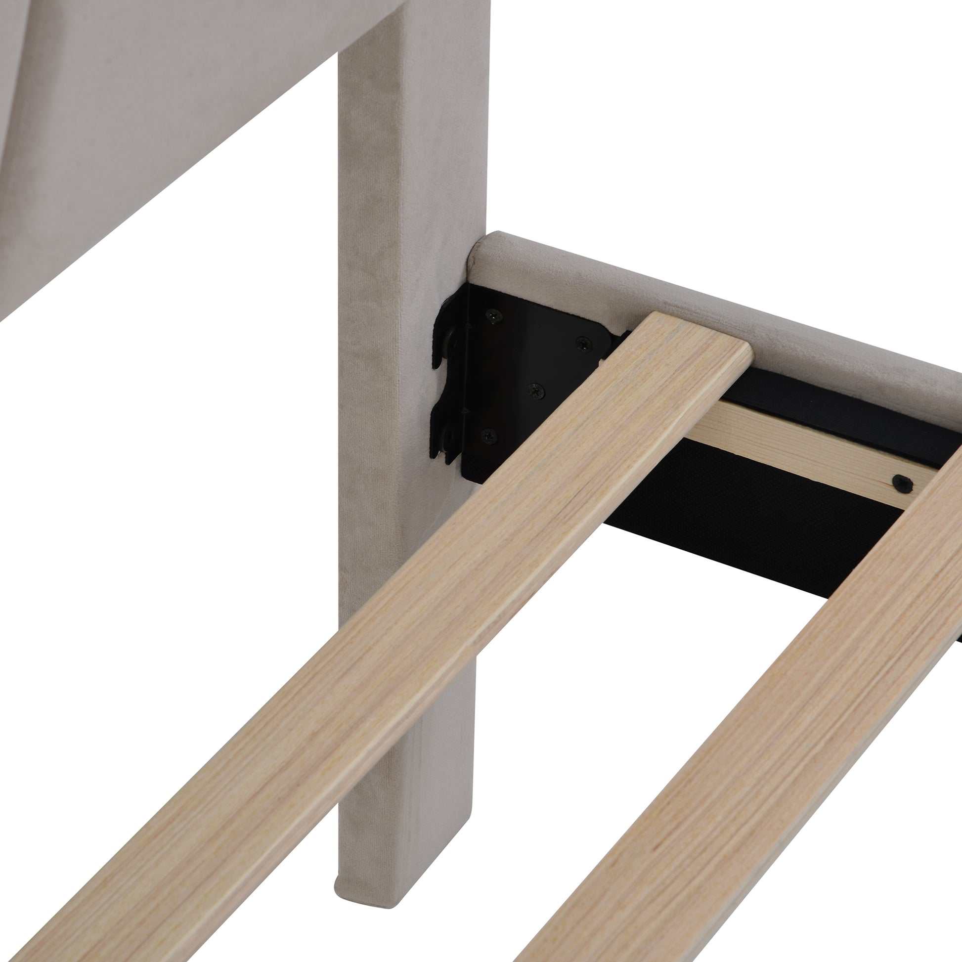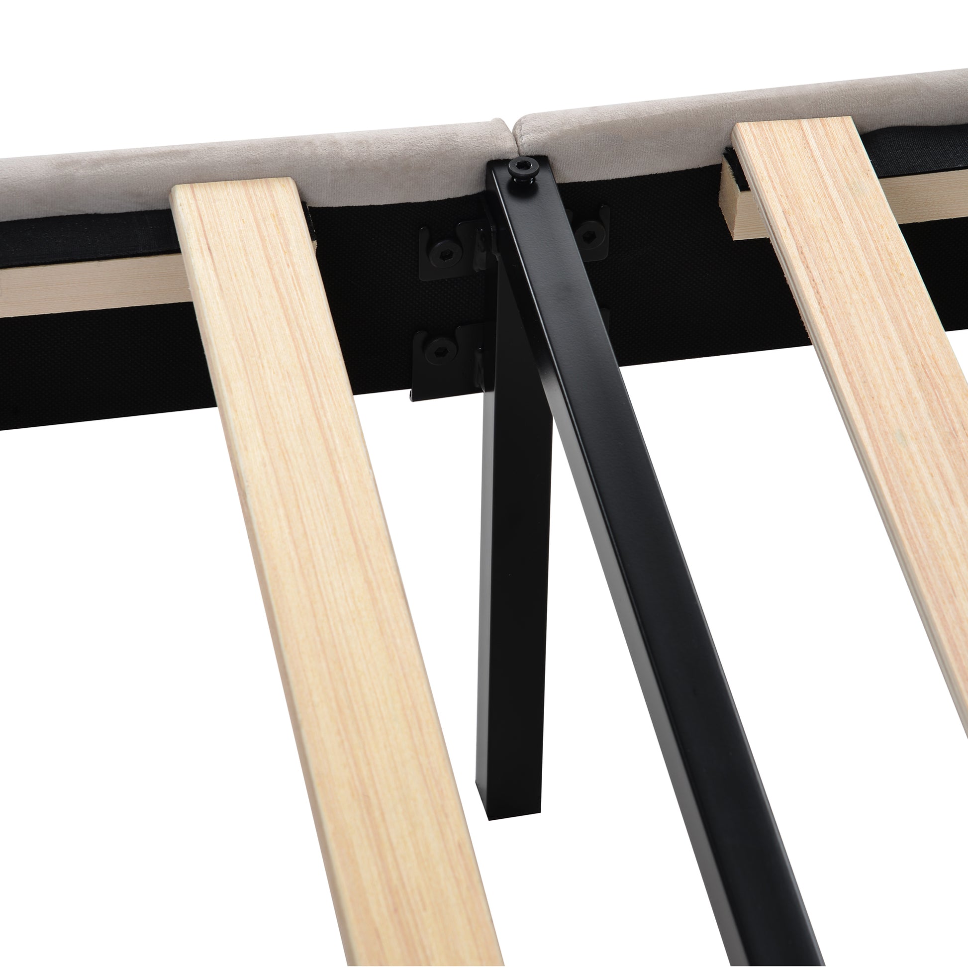 - [No Box Spring required] With 12 reinforced slats, the mattress (not included) will be well supported and your body weight will be evenly distributed for a great sleeping experience. Enjoy the convenience and unparalleled ease of use that this queen size wood platform bed provides. Headboard is included as a comfy velvet fabric backrest that brings you and your partner a cozy feeling.