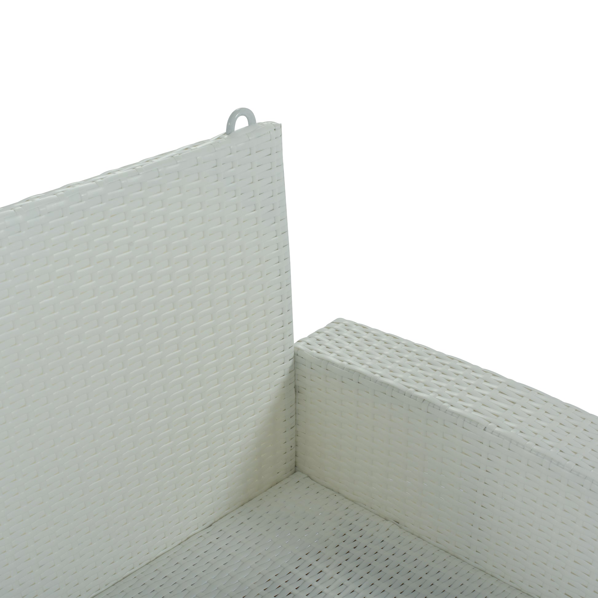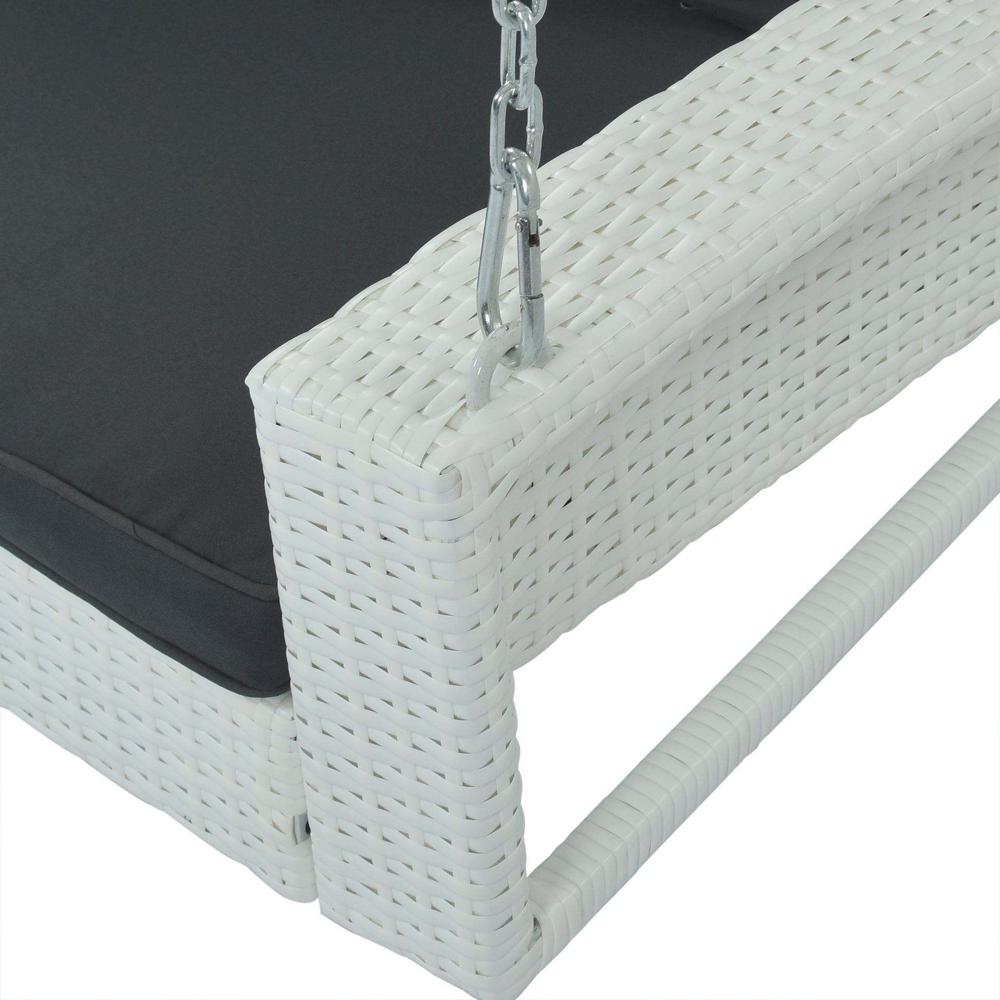 GO 2-Person Wicker Hanging Porch Swing with Chains, Cushion, Pillow, Rattan Swing Bench for Garden, Backyard, Pond. (White Wicker, Gray Cushion)