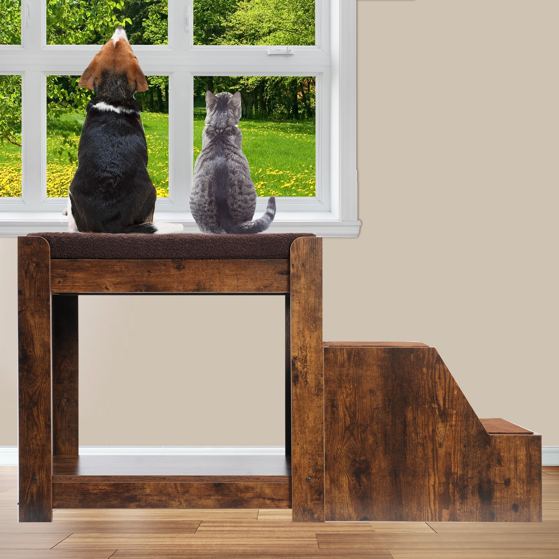 - 5,BEAUTIFUL & MODERN DESIGN: Furniture style design gives this pet window perch a native feel that blends in any room in the house. Stunning wood perfect matches most decors, works great next to beds, couches, chairs, and more.