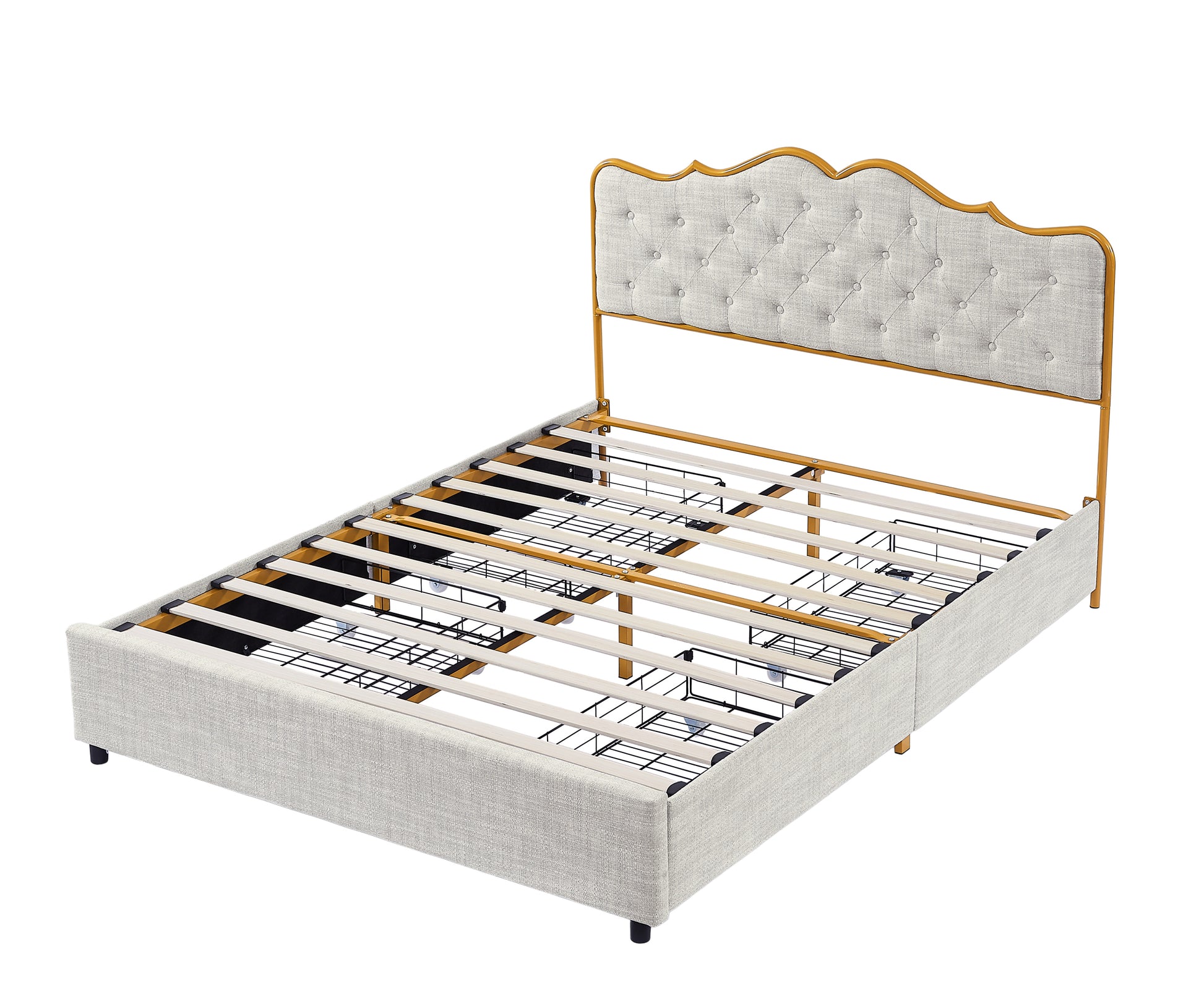 Classic steamed bread shaped backrest, metal frame, solid wood ribs, with four storage drawers, sponge soft bag, comfortable and elegant atmosphere, light gray, Full- size, F sleeping bed