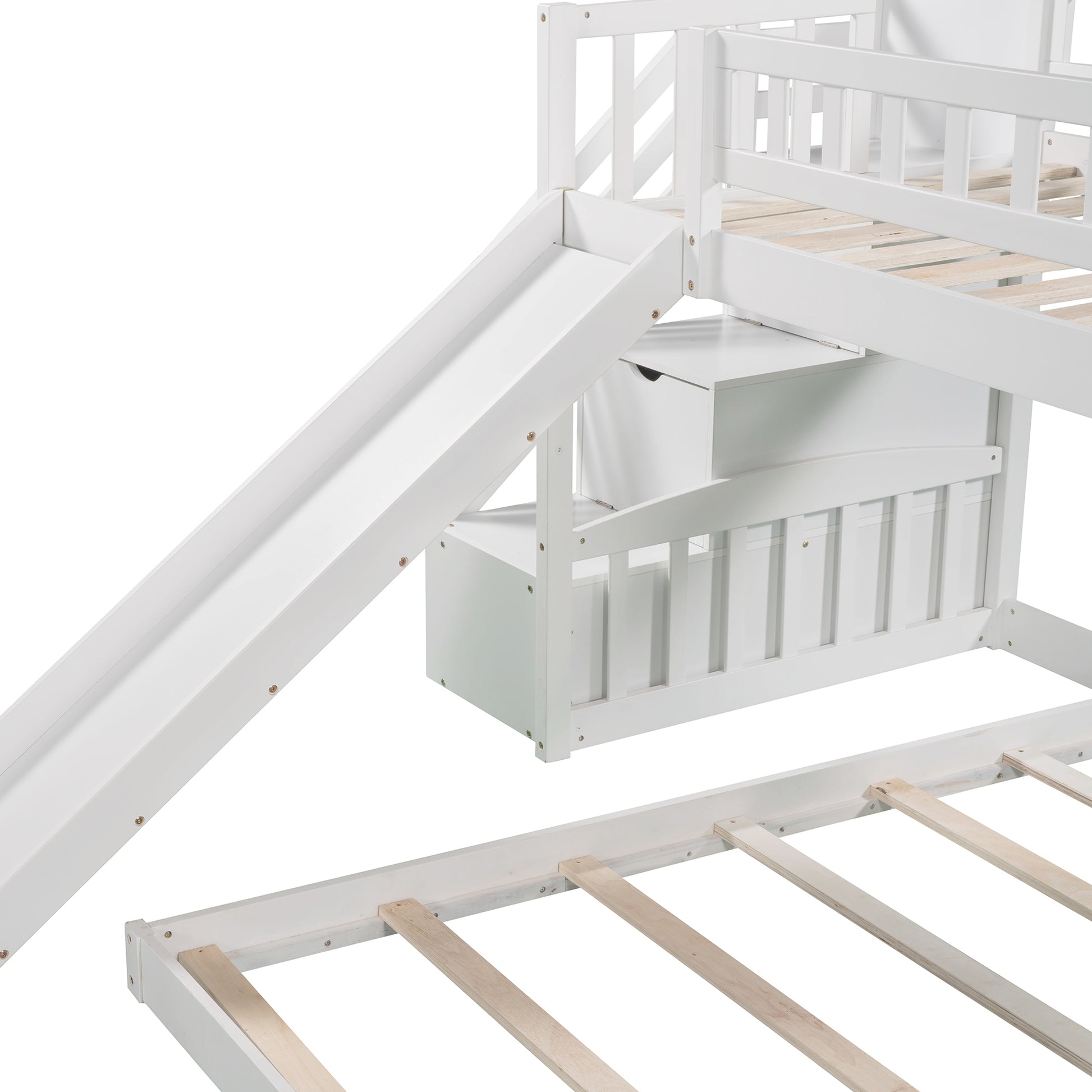 Stairway Twin over Twin Bunk Bed with Two Drawers and Slide, White(OLD SKU :LP000156AAK)