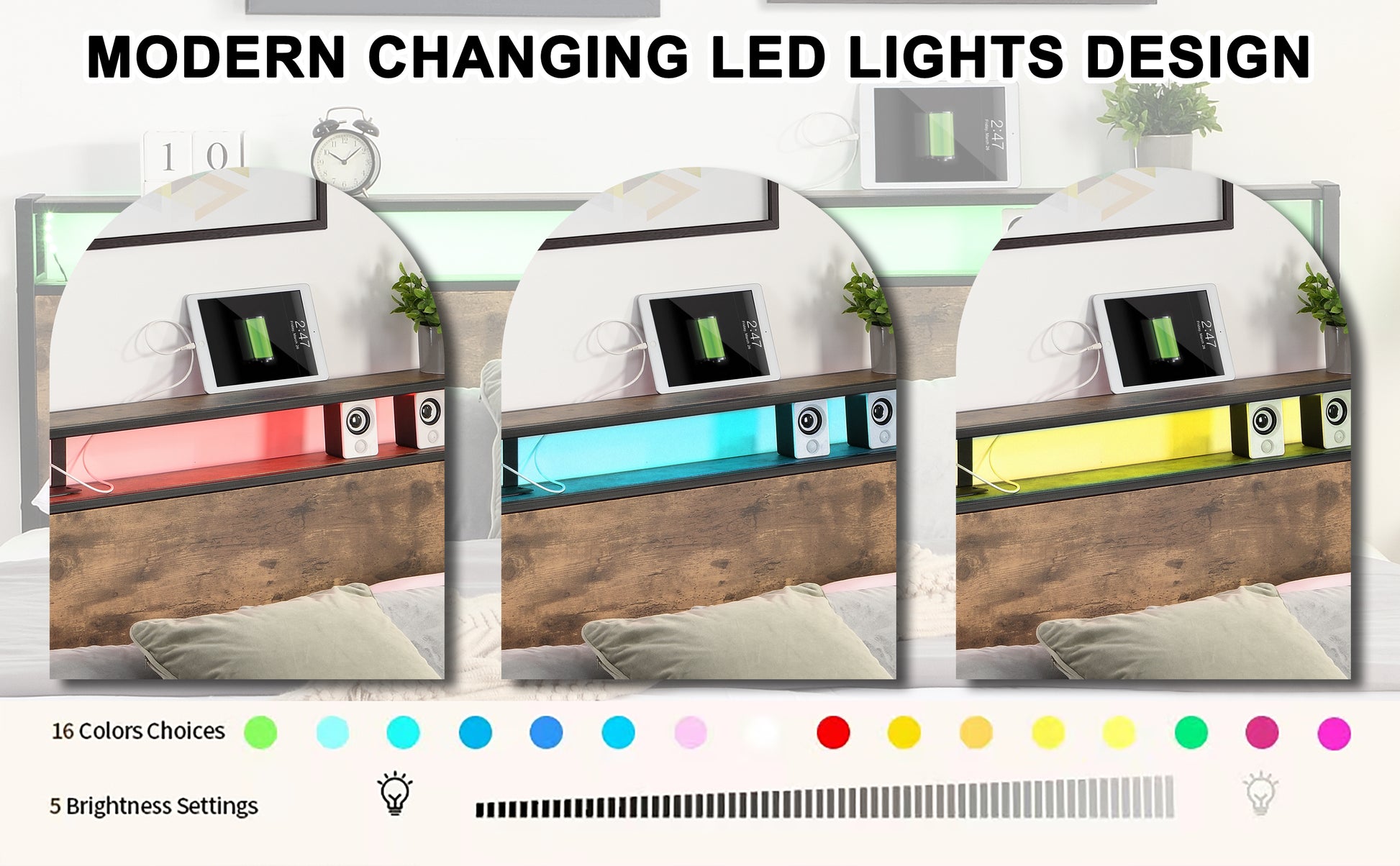 - Smart LED Bed Frame Bed frame king size with multifunctional LED lights strips, beautiful 16 RGB LED Light colors (There are over 60000 colors to choose from),Mobile App +Remote Control multiple control modes. You can freely set the brightness, color, mode and timing functions to create various scenes and make your life more intelligent.