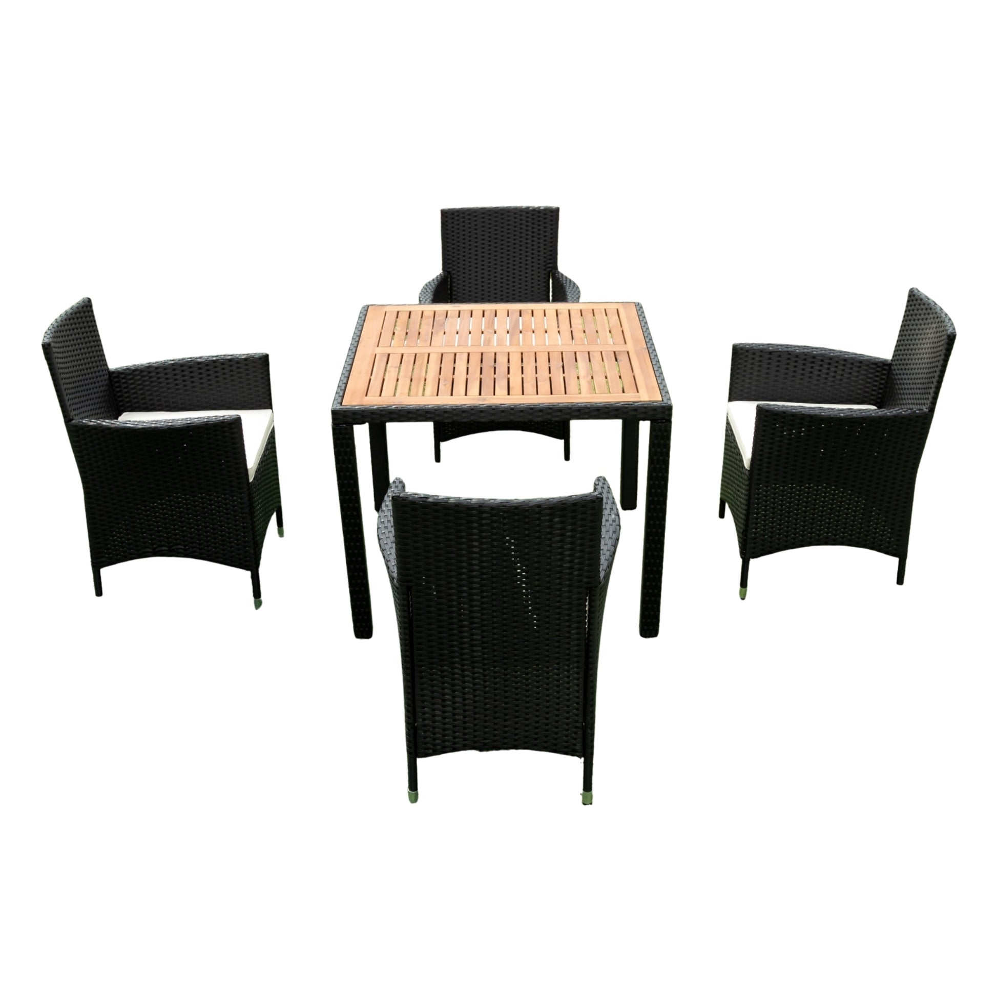 EELIFEE 5 piece Outdoor Patio Wicker Dining Set Patio Wicker Furniture Dining Set w/Acacia Wood Top Black Wicker + Creme Cushion