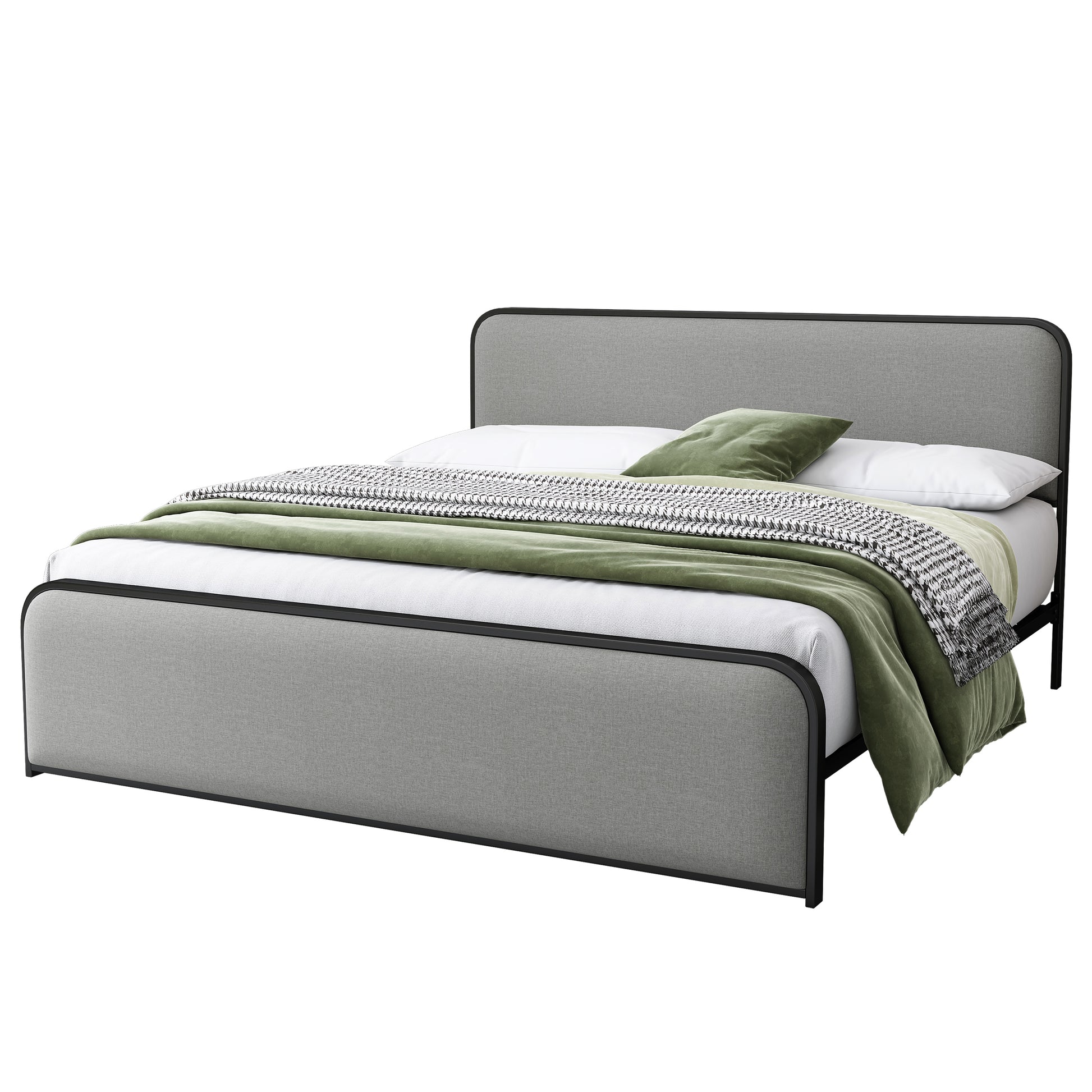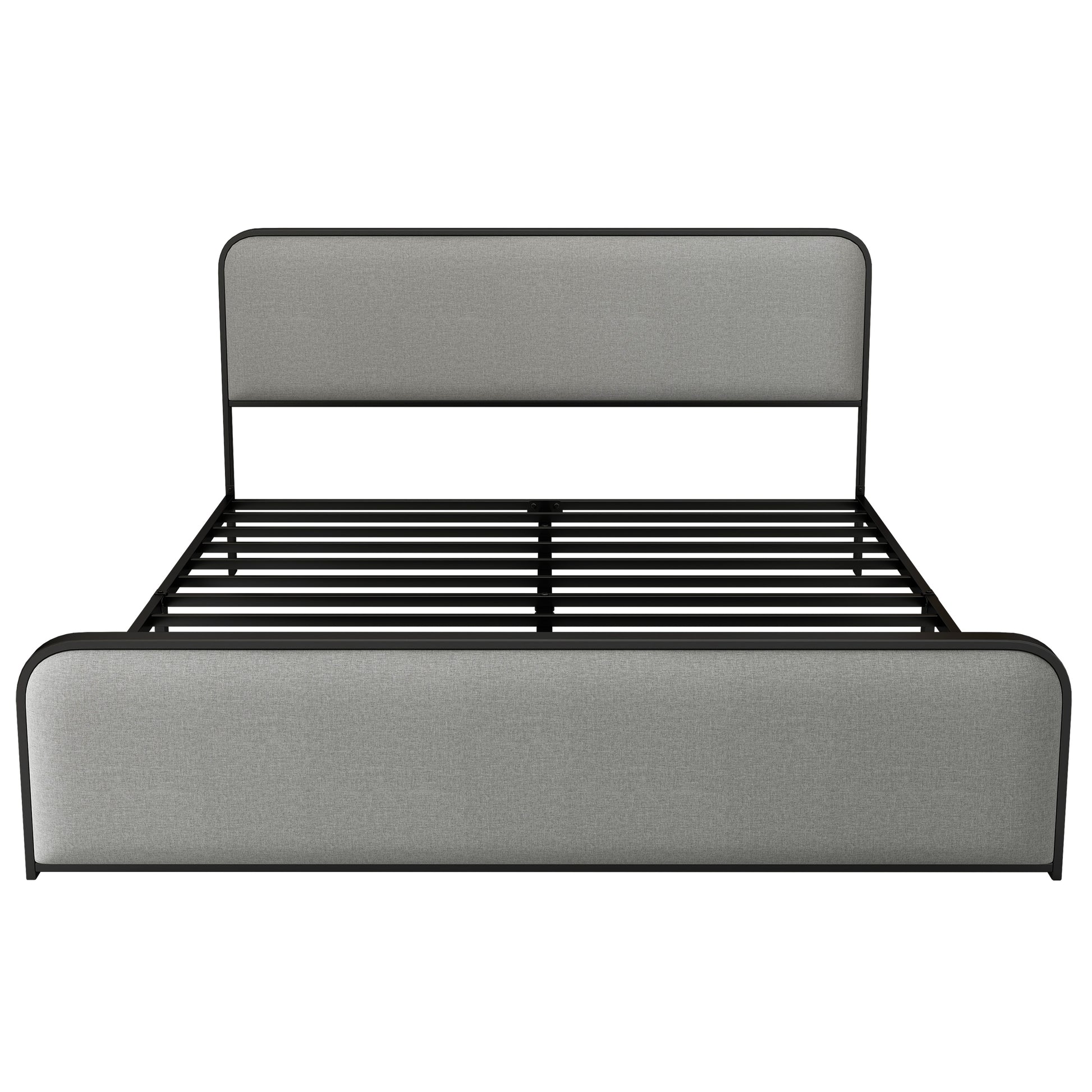 Modern Metal Bed Frame with Curved Upholstered Headboard and Footboard Bed with Under Bed Storage, Heavy Duty Metal Slats, King Size, Grey