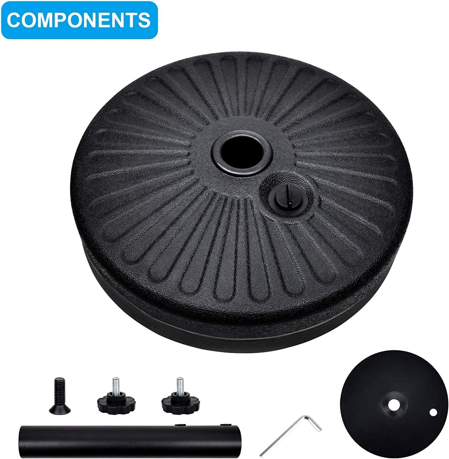 - Water or sand filling: The base can be filled with water or sand, has a maximum weight of 50 pounds, and can be easily transported when emptied. Base does not include water and sand. Do not fill with water at or below 32°F to prevent freezing and cracking