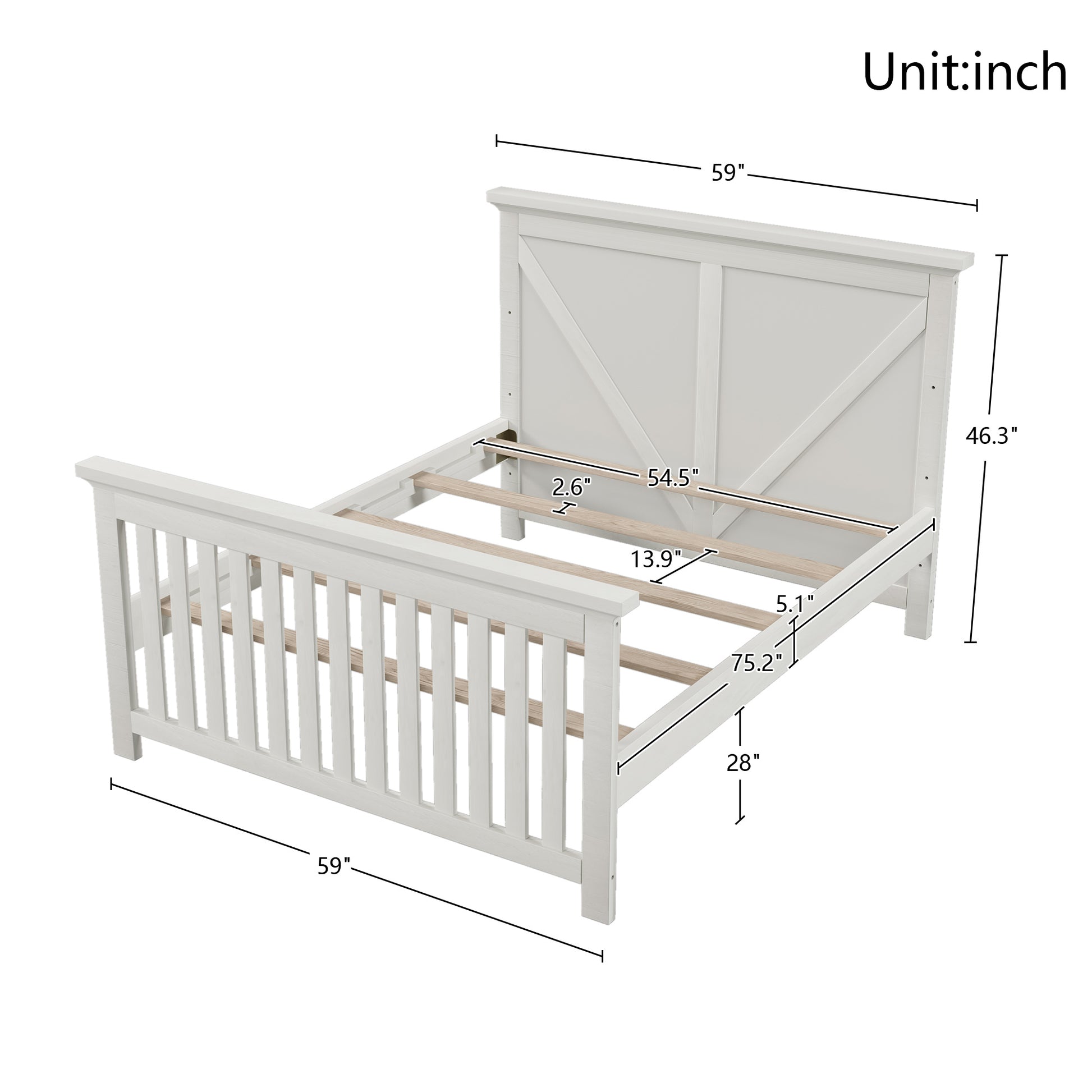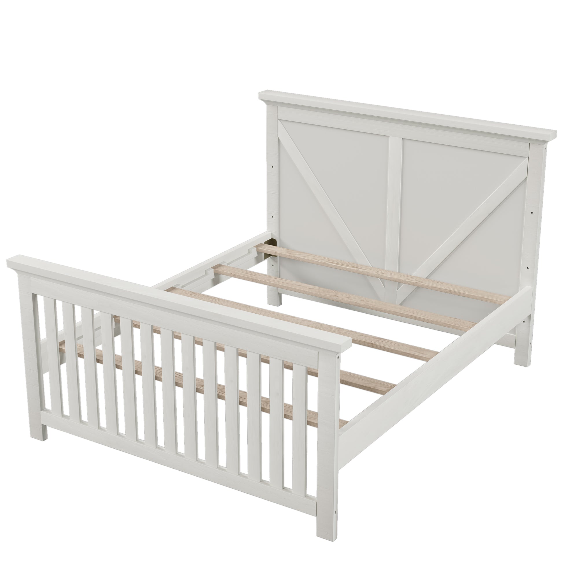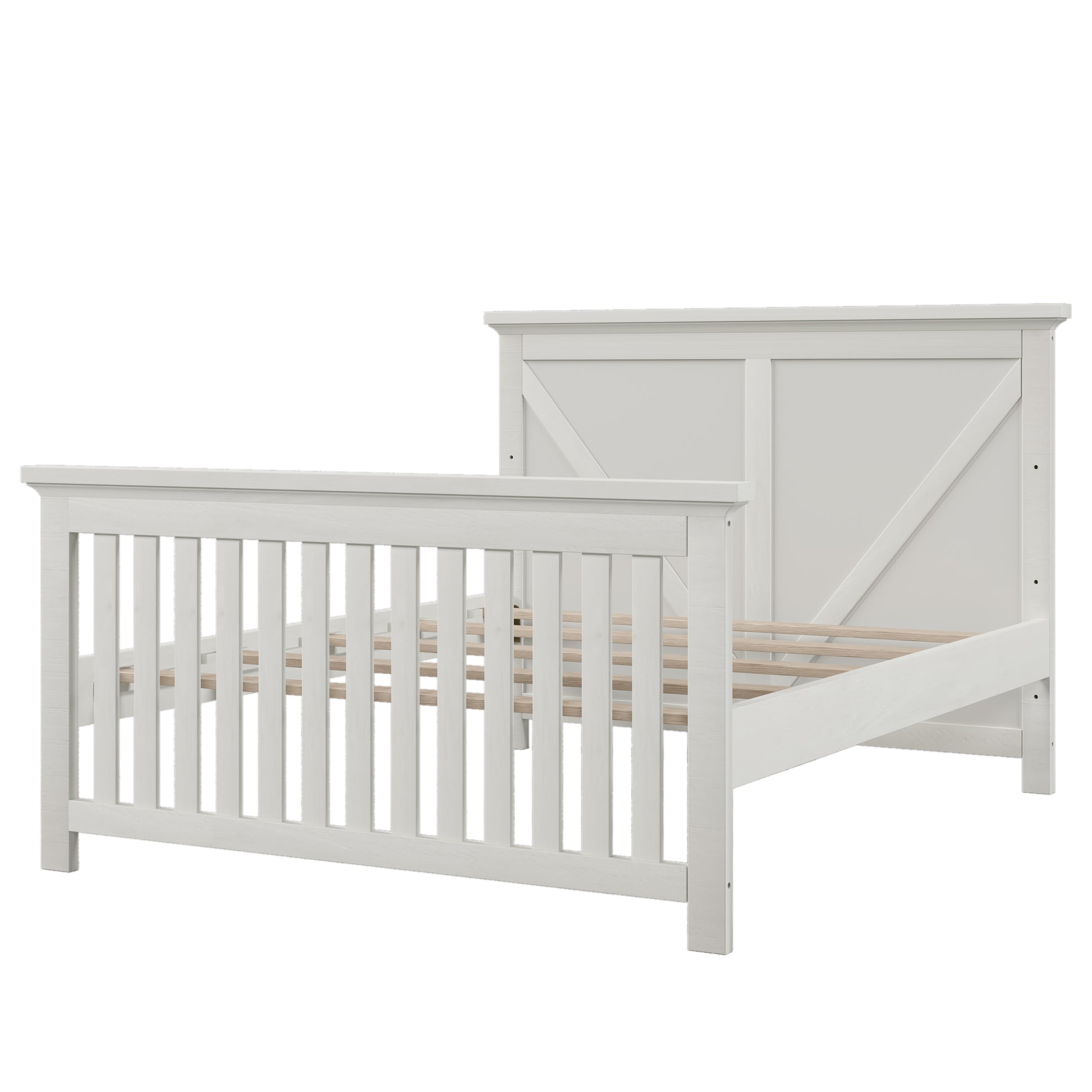 Rustic Farmhouse Style Whitewash 4-in-1 Convertible Full Bed Rails, White