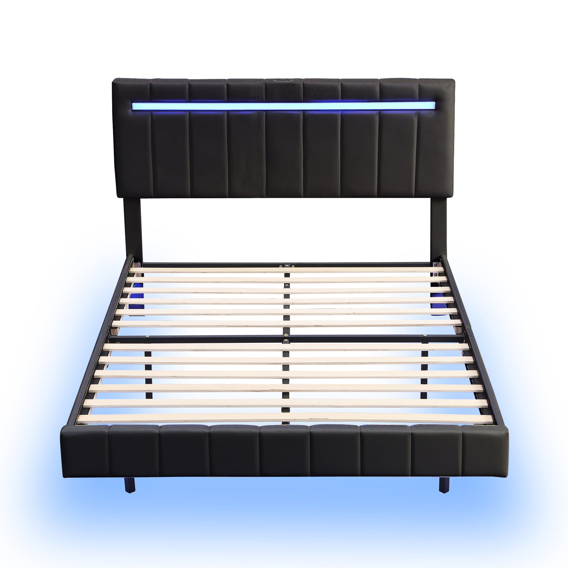 - [LED Bed Frame with USB Power Strips]The headboard has 2 USB ports, making it very convenient for you to charge your phone, tablet, headphones and other electronic, The LED lights can be controlled by remote control or mobile app with a variety of colors and light modes to choose from. Music Sync mode makes your LED lights flash to the rhythm for an immersive home concert experience.