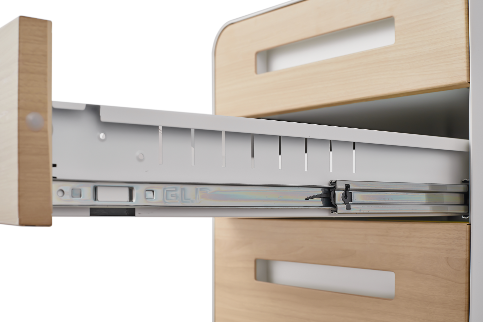 Each drawer weighs 135 pounds and is fully withdrawn from the cabinet