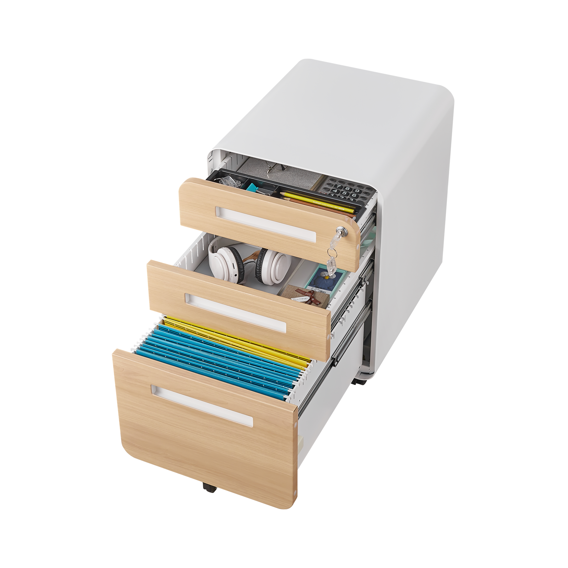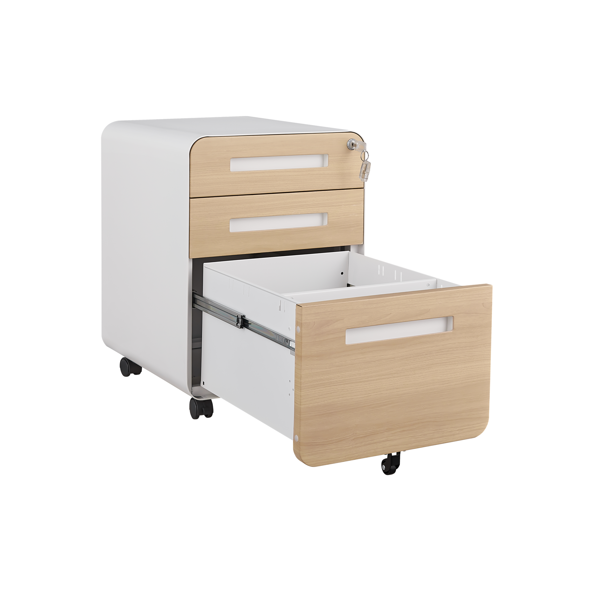 - 【Lockable File Cabinet]】Ships fully assembled except for the casters. 1 lock secures all three drawers, 2 keys in case of missing.