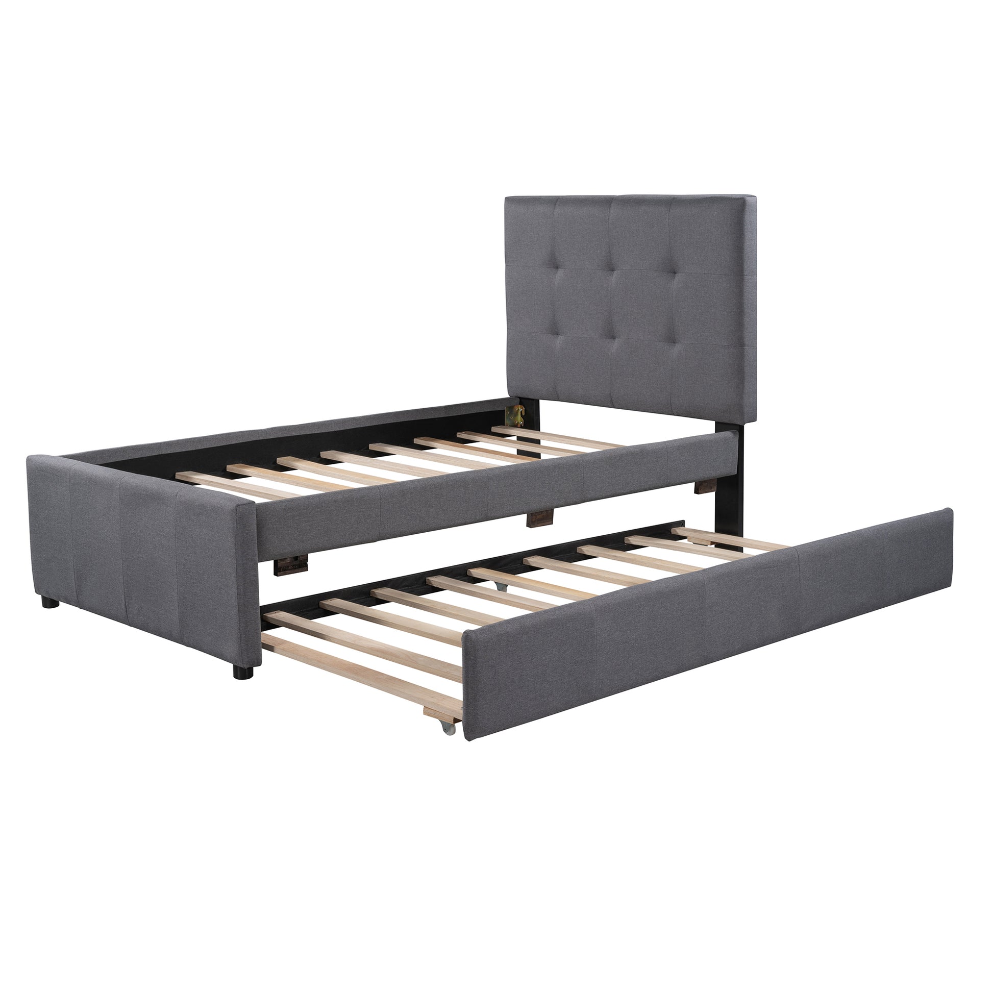 Linen Upholstered Platform Bed With Headboard and Trundle, Twin(Old SKU: SM000504AAE)