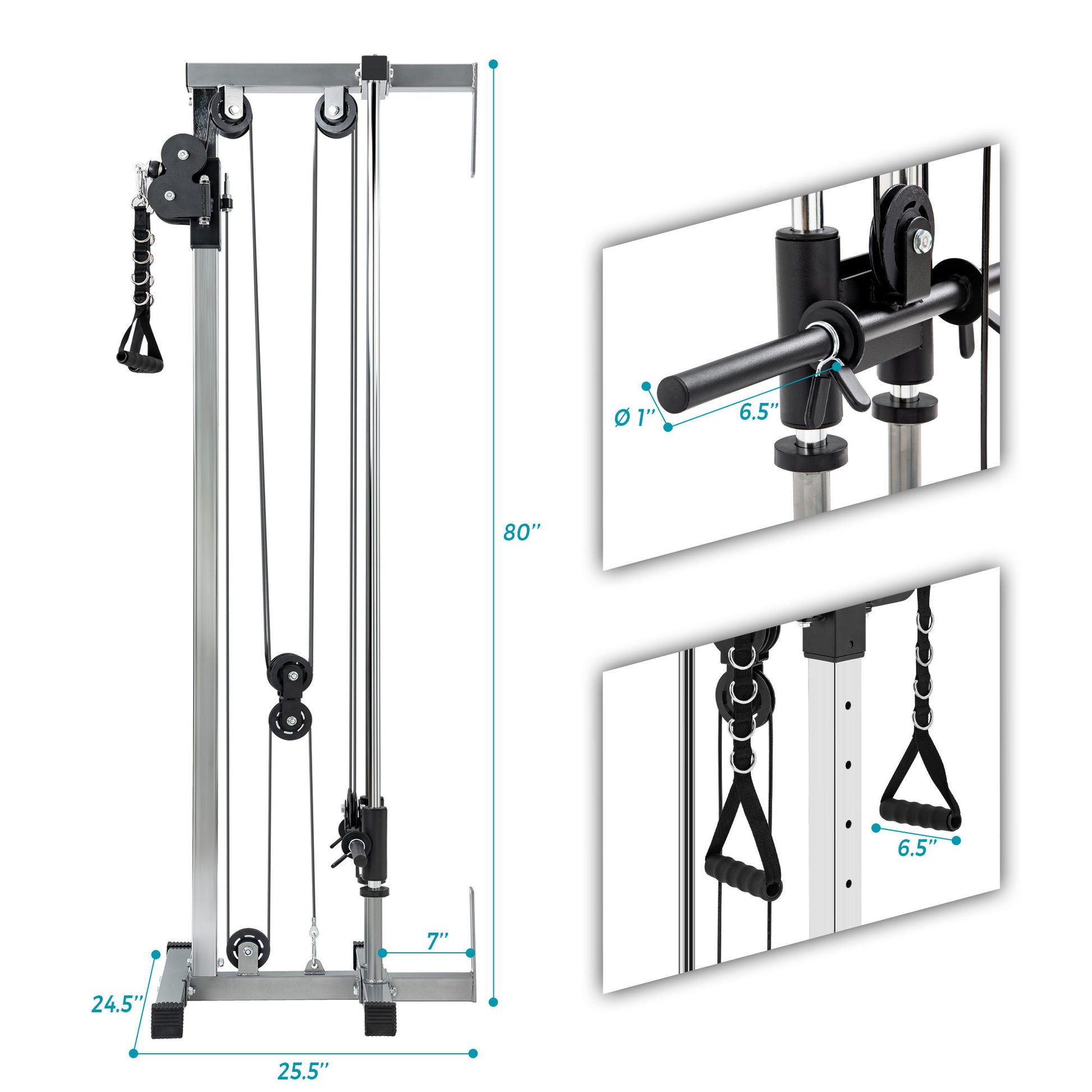 - Adjustable foam rollers to fit your height and lock you in position for high pulley work.
