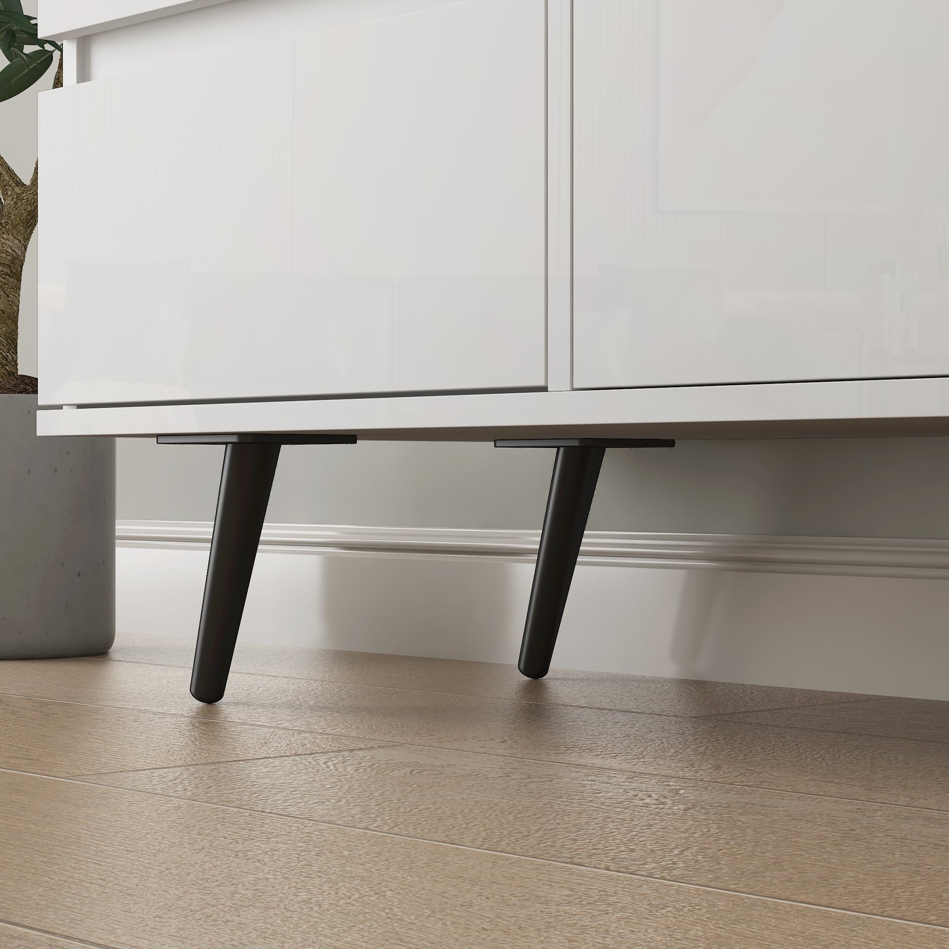 Living Room Sideboard Storage Cabinet White High Gloss with LED Light, Modern Kitchen Unit Cupboard Buffet Wooden Storage Display Cabinet