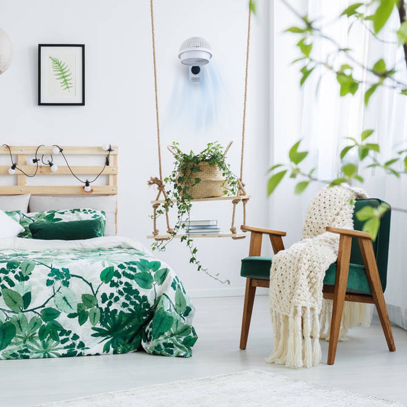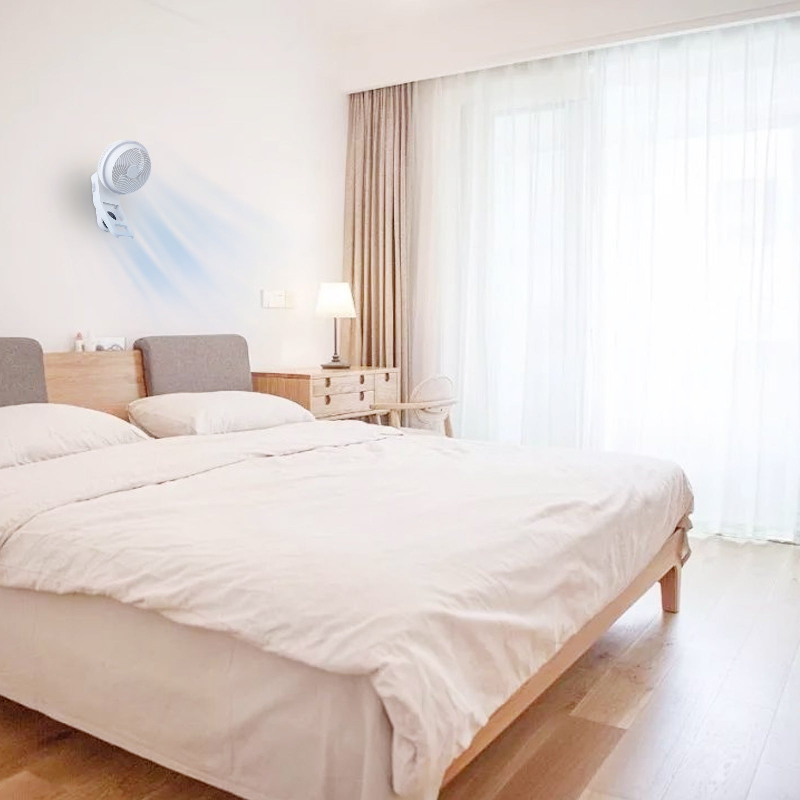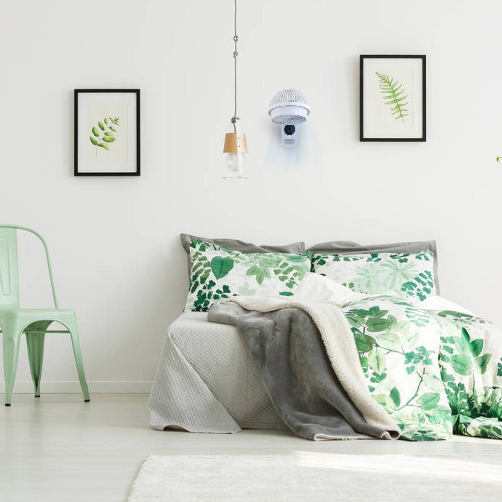 - A REAL SPACE SAVER – Unlike pedestal, tower and box fans, this durable fan can hang on the wall year round optimizing limited table, desk, countertop and floor space. Not to mention making household storage unnecessary without sacrificing air circulation, comfort or style.