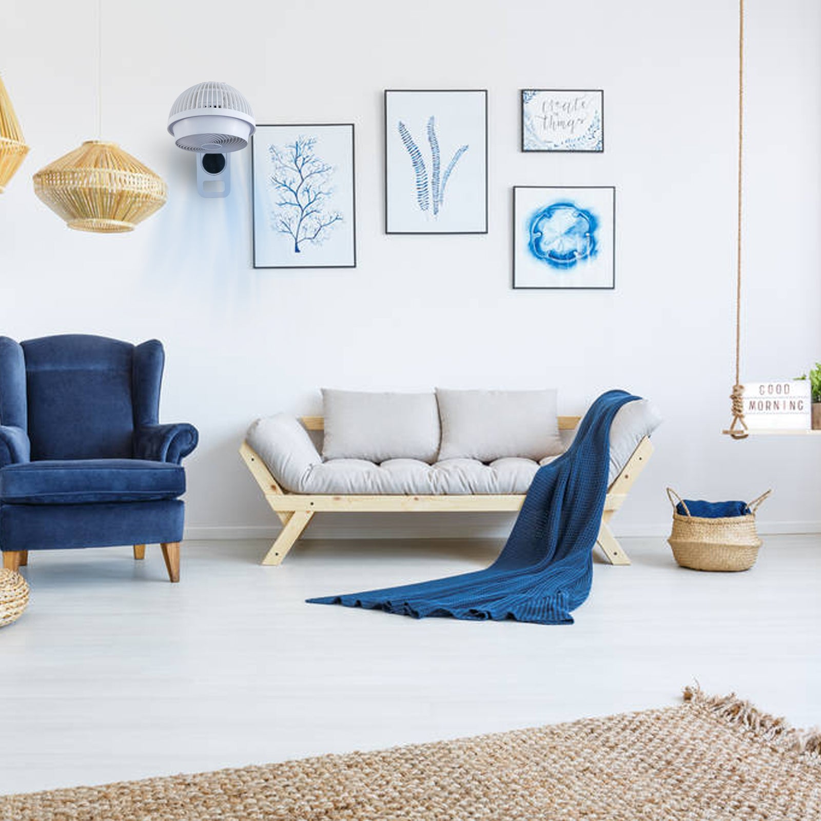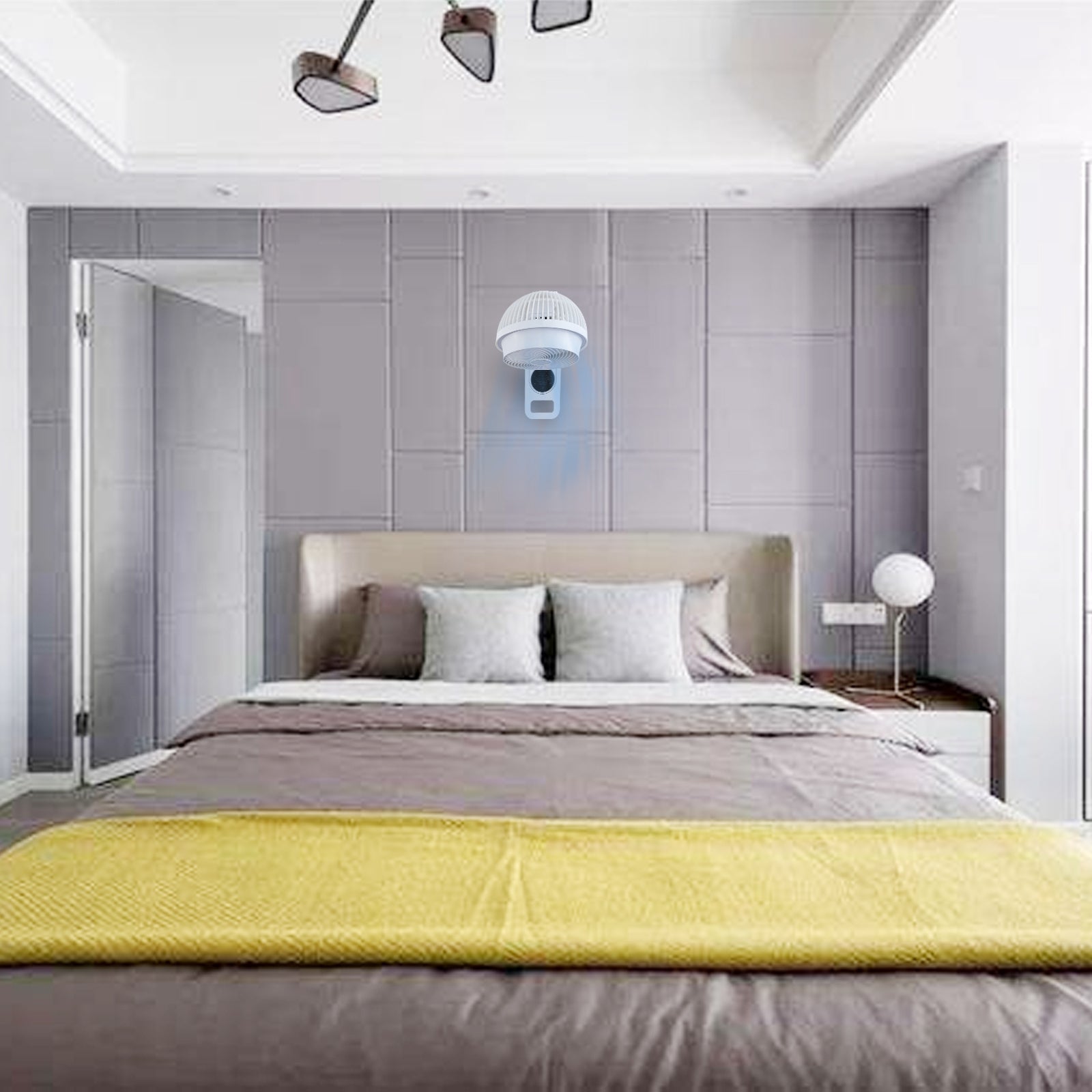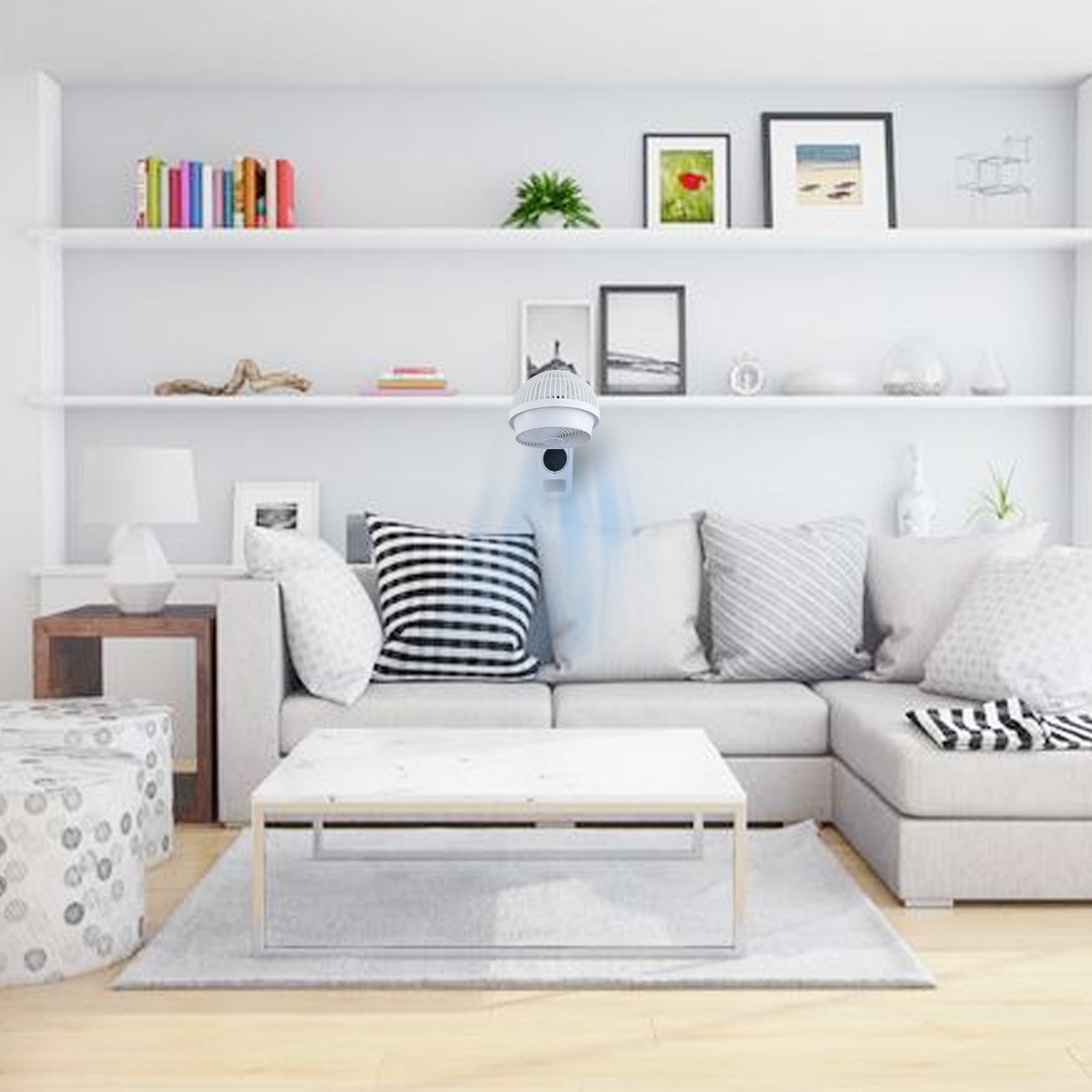 - A REAL SPACE SAVER – Unlike pedestal, tower and box fans, this durable fan can hang on the wall year round optimizing limited table, desk, countertop and floor space. Not to mention making household storage unnecessary without sacrificing air circulation, comfort or style.