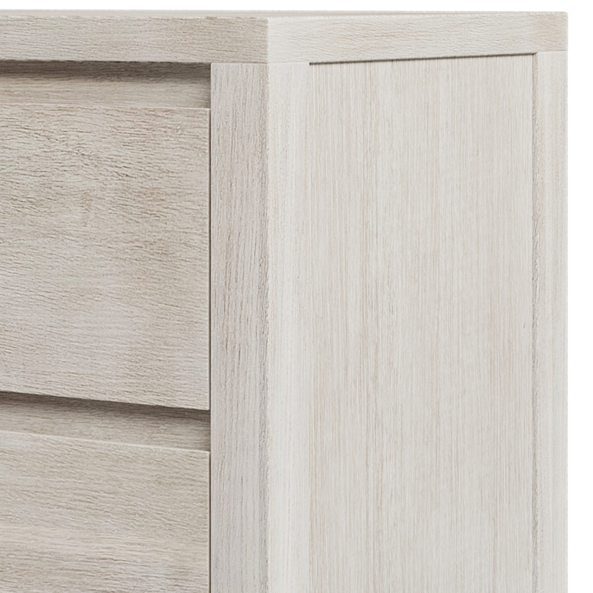 Appealing to your sophisticated sensibilities, the dresser masters the art of minimalism. Its transparent bisque finish accentuates the wood grain, balancing organic beauty with a contemporary colorway. A clean-lined profile and handle-free drawers help to maintain the piece's air of effortless elegance.