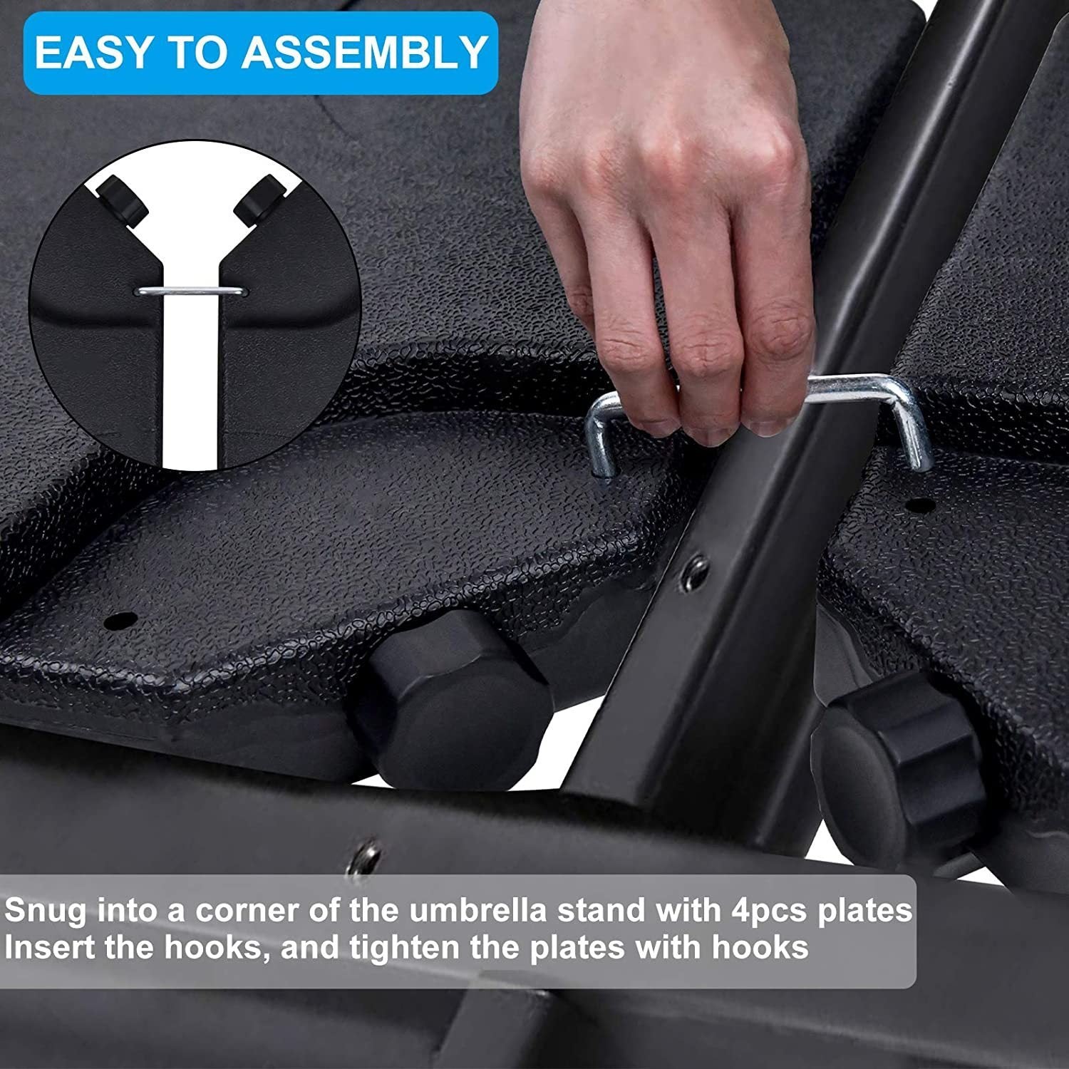 - Sturdy 4-plate design: The 4 square shaped weight plates are designed to fit in a cantilever umbrella cross base, made with interconnecting pins to lock your umbrella base in place and secure it for hours (Note: Crossbar base is not included)