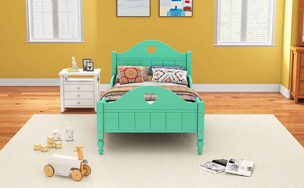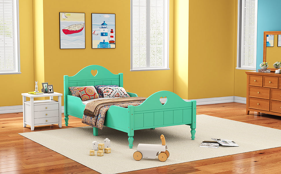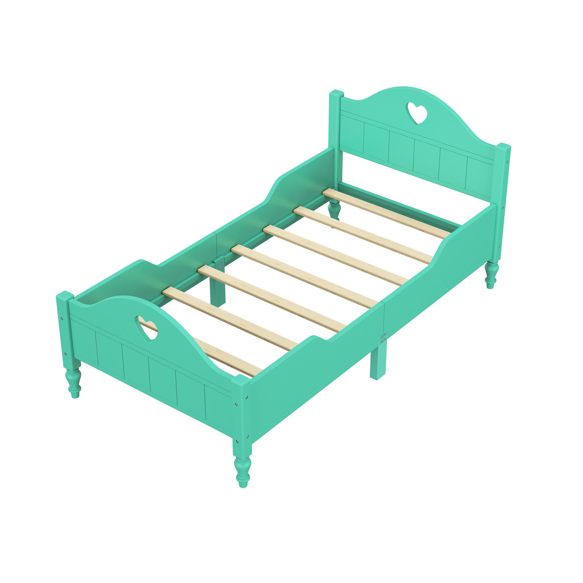 Macaron Twin Size Toddler Bed with Side Safety Rails and Headboard and Footboard,Seasoft Green