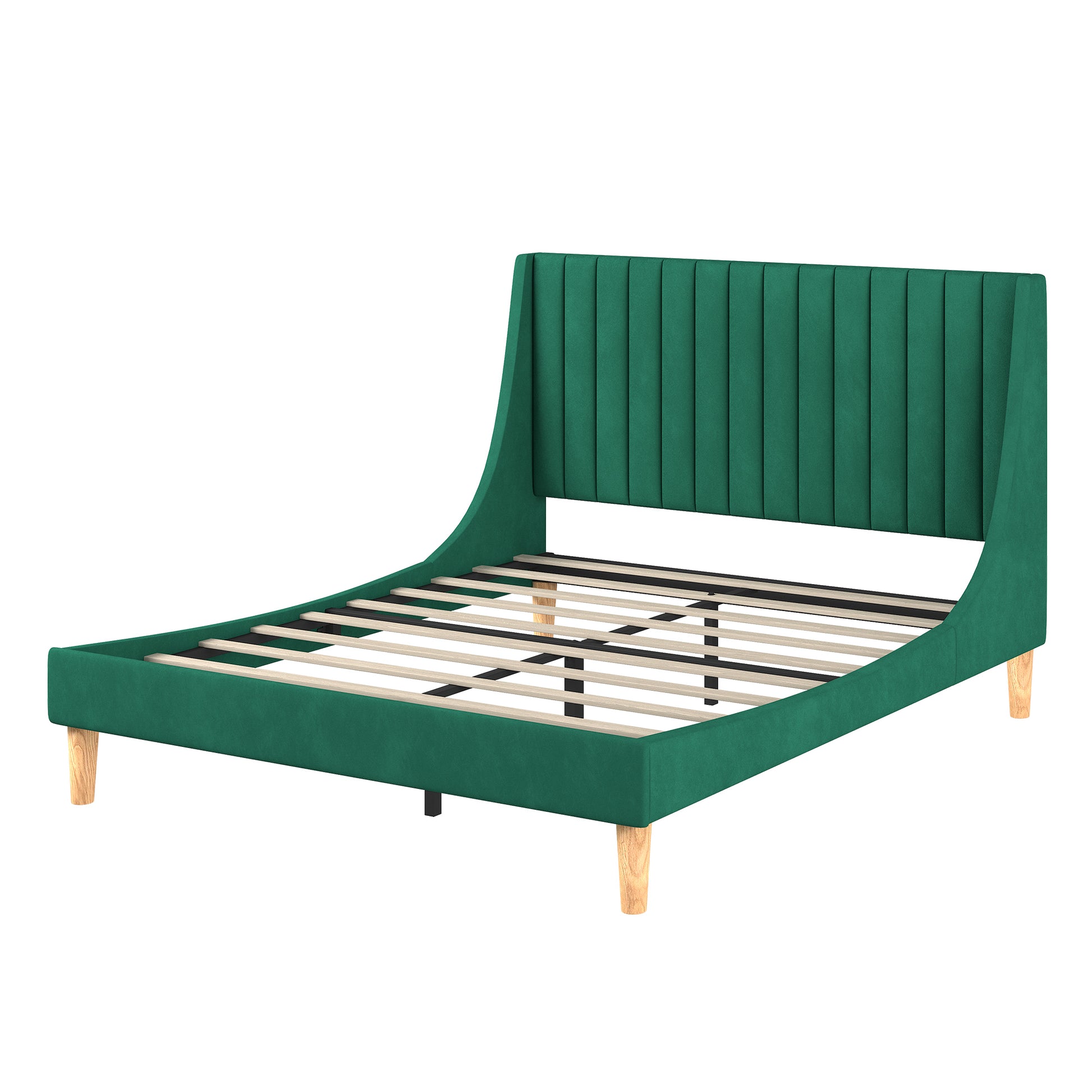 Queen Size Platform Bed with Upholstered Headboard and Slat Support, Heavy Duty Mattress Foundation, No Box Spring Required, Easy to Assemble,Green