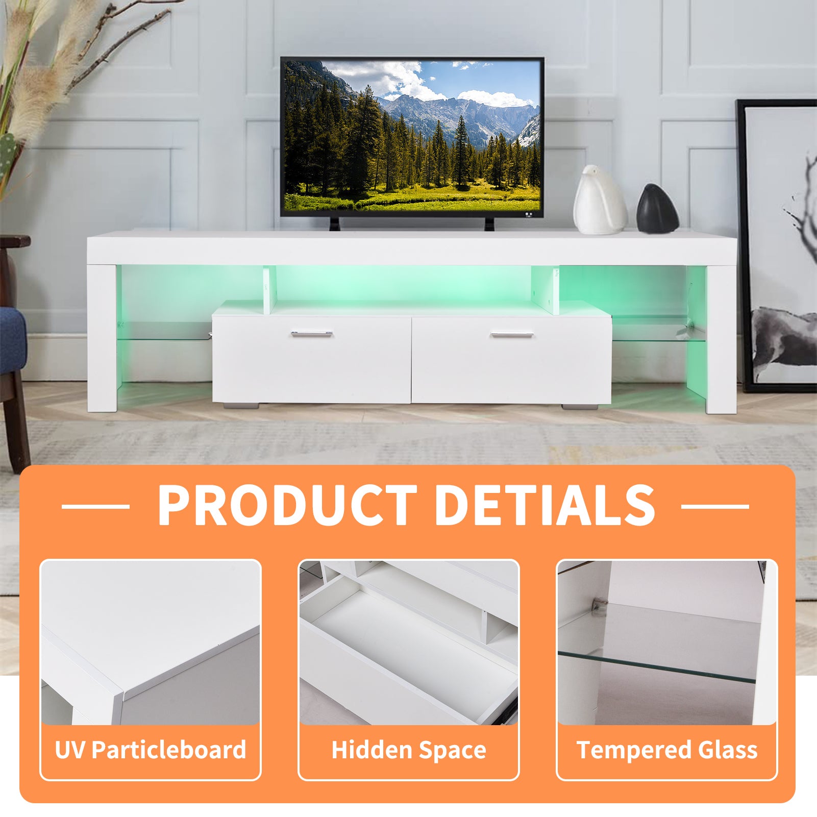 - [Modern Led Design] Modern simple entertainment TV cabinet is equipped with 16 colors and 4 color flashing modes, which can create different atmosphere scenes for you through remote control.