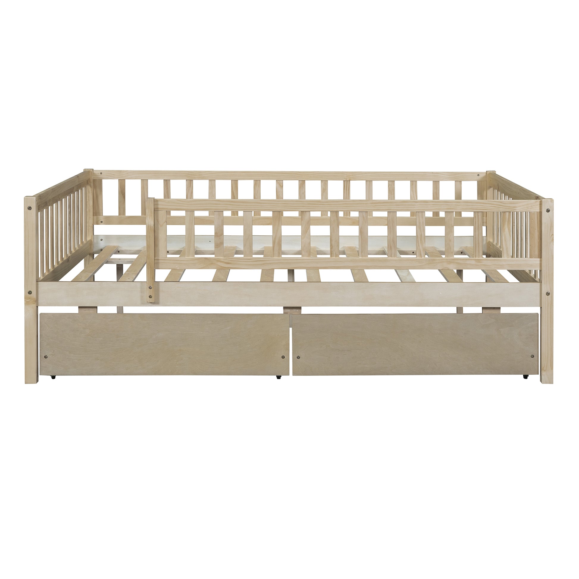 Full Size Daybed Wood Bed with Two Drawers, Natural