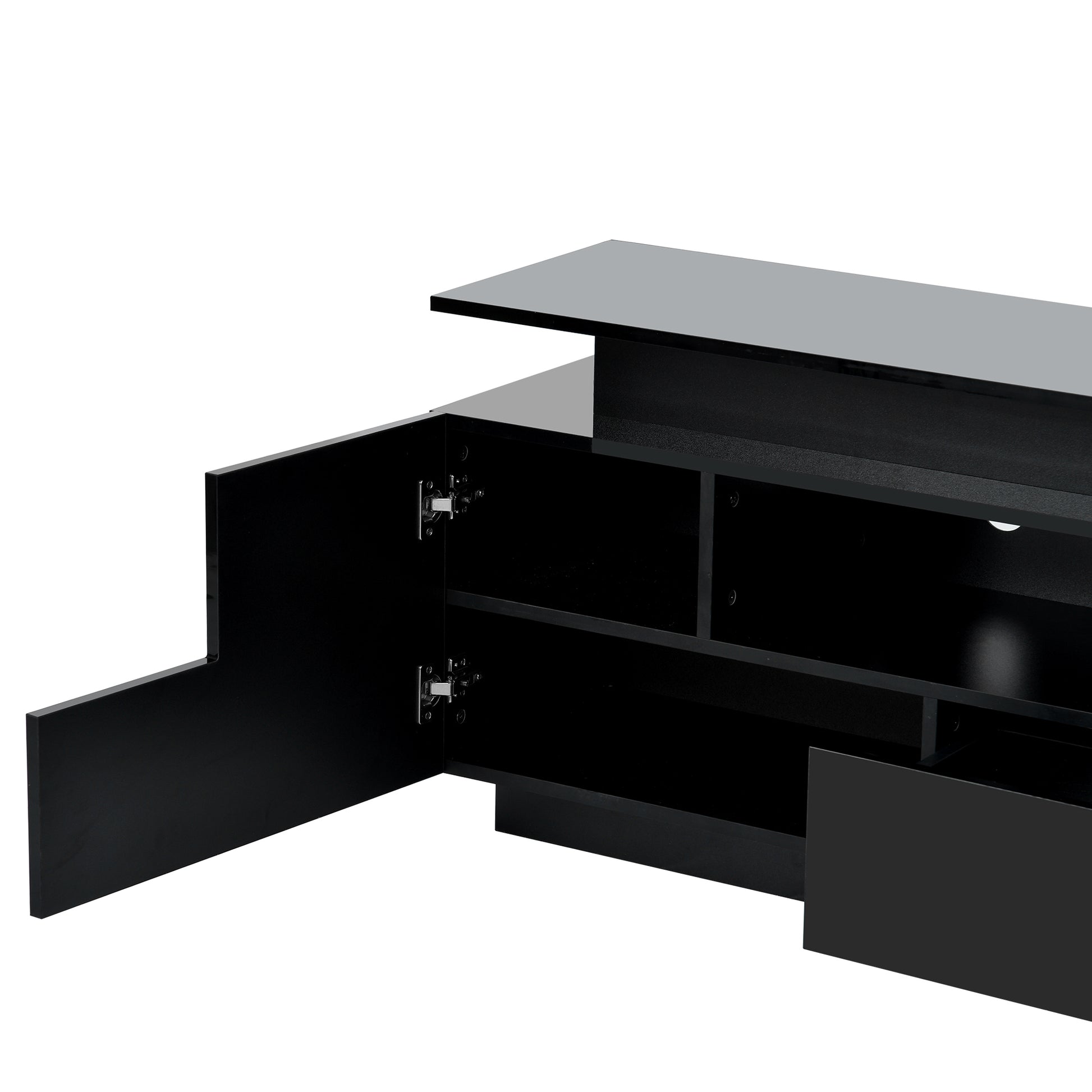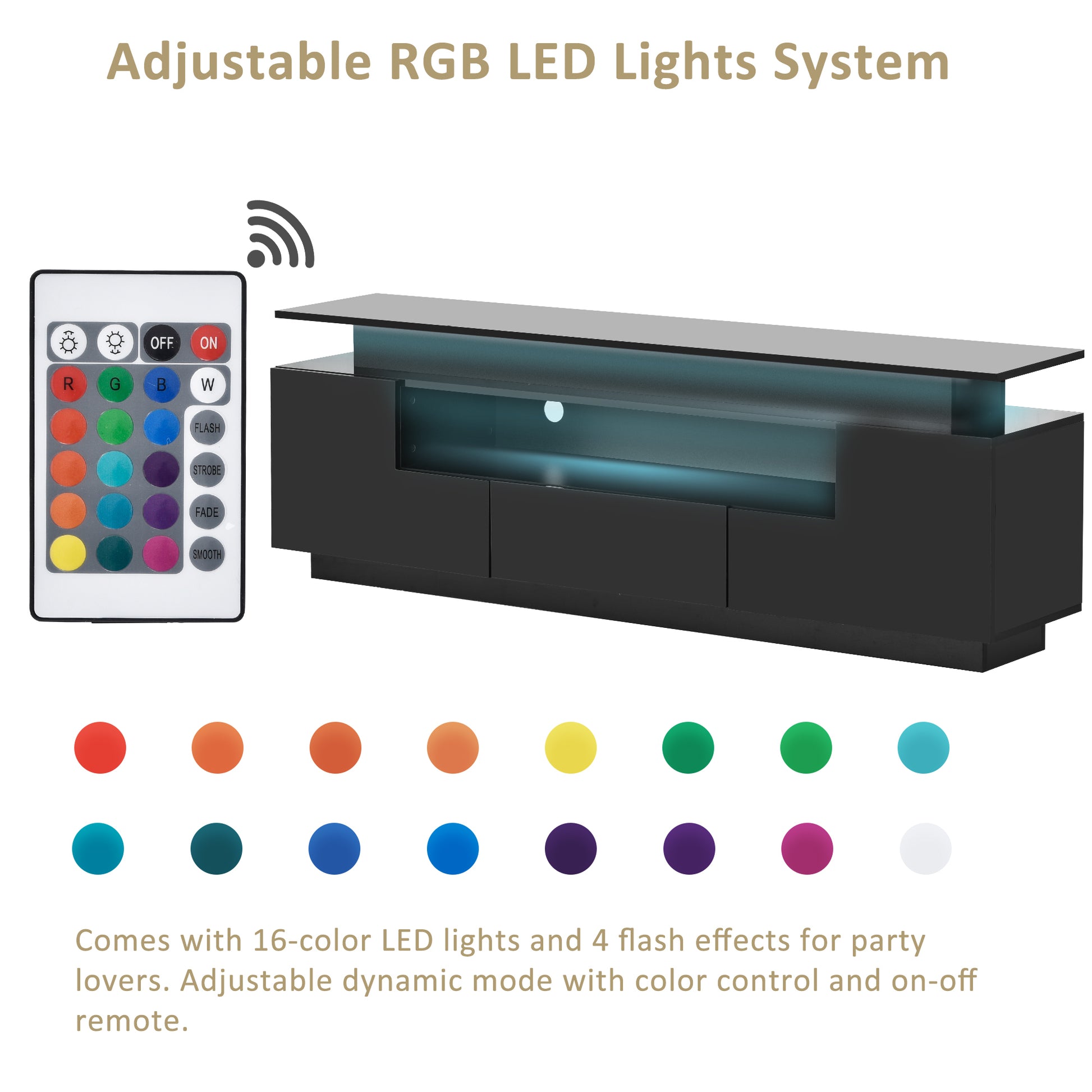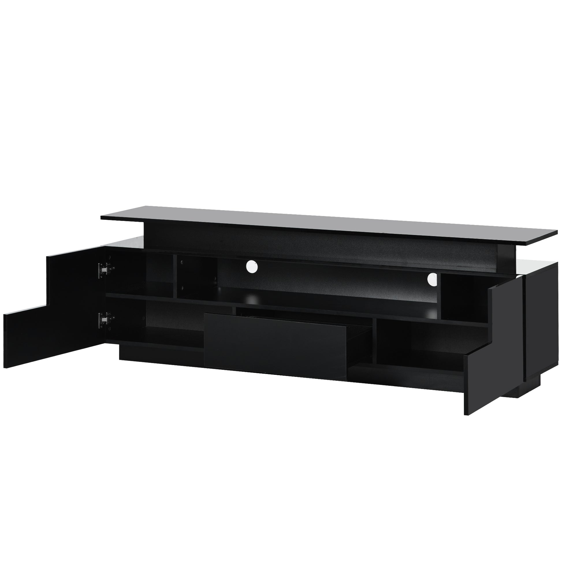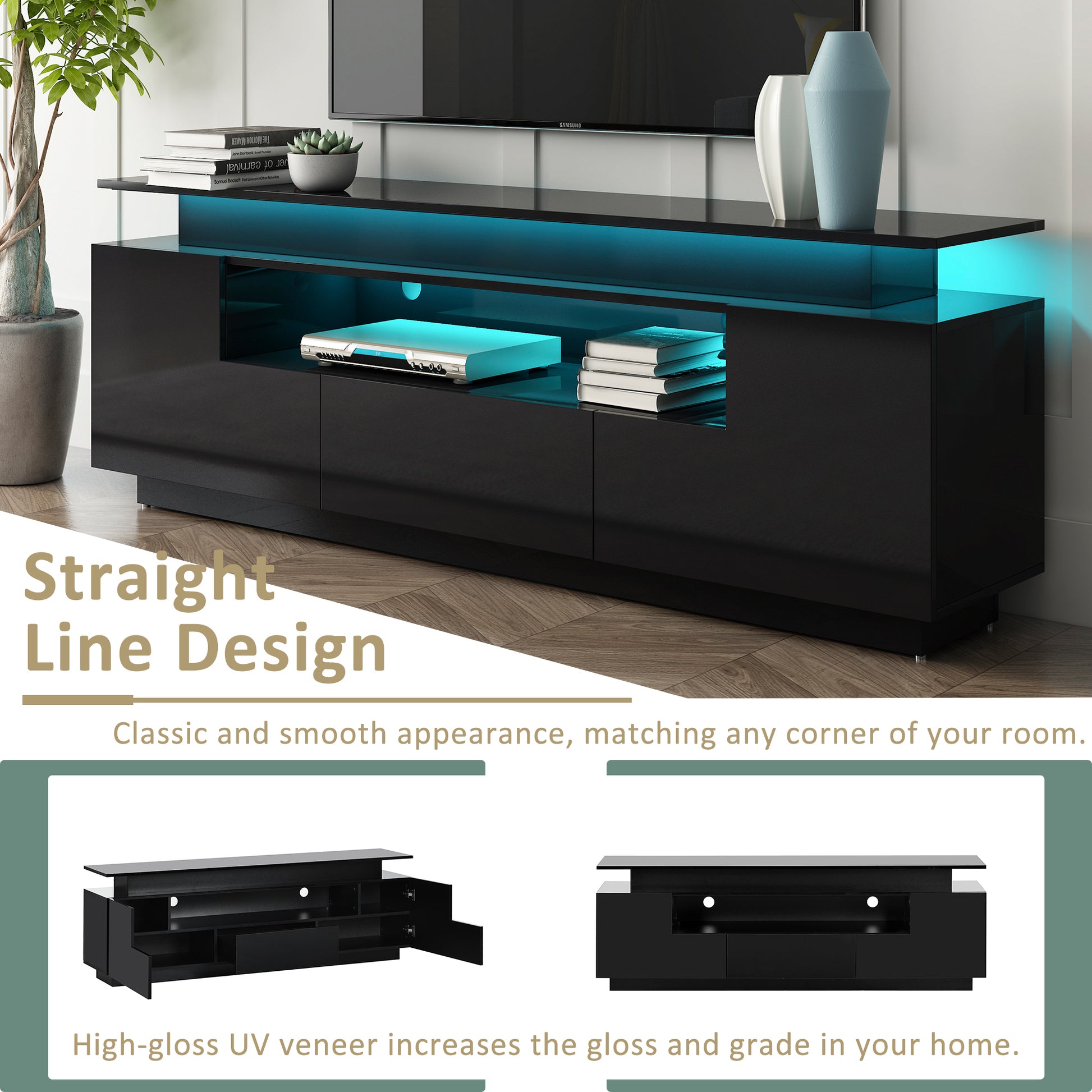 ON-TREND Modern, Stylish Functional TV stand with Color Changing LED Lights, Universal Entertainment Center, High Gloss TV Cabinet for 75+ inch TV, Black